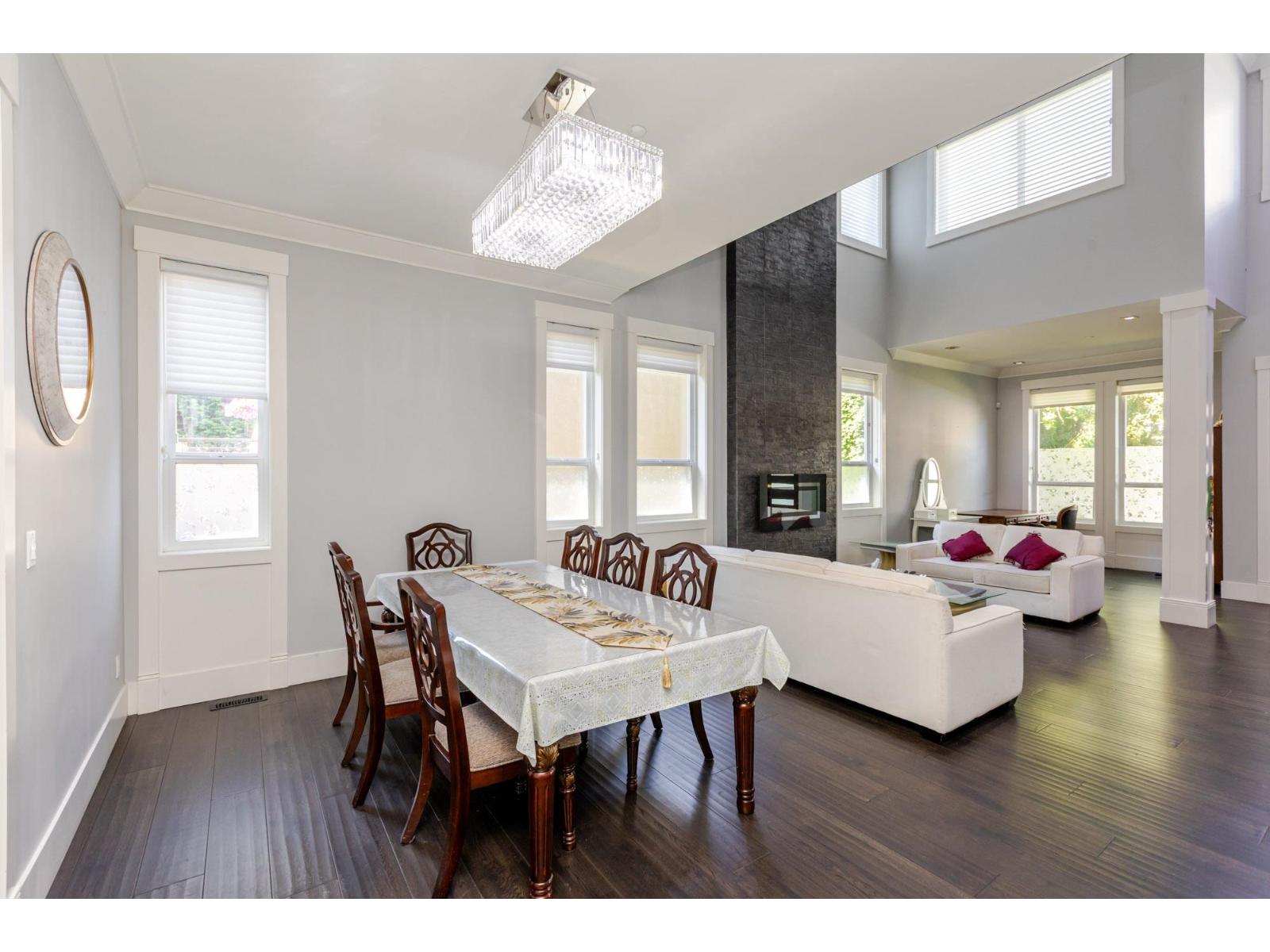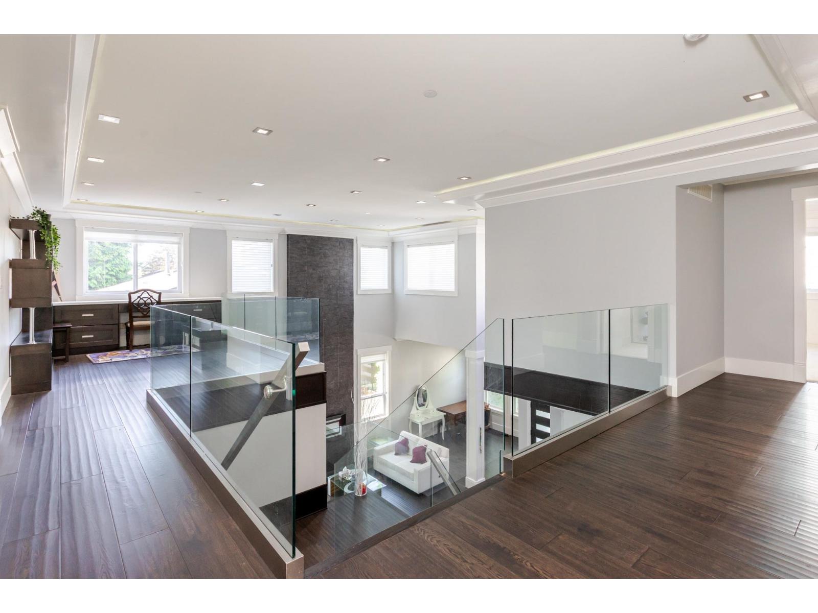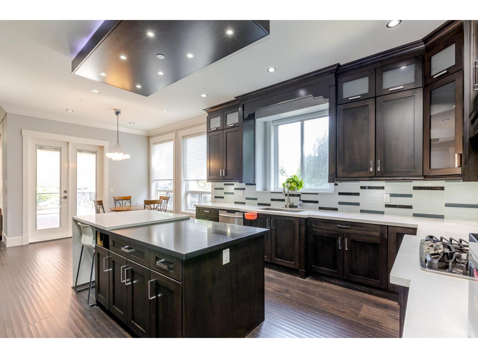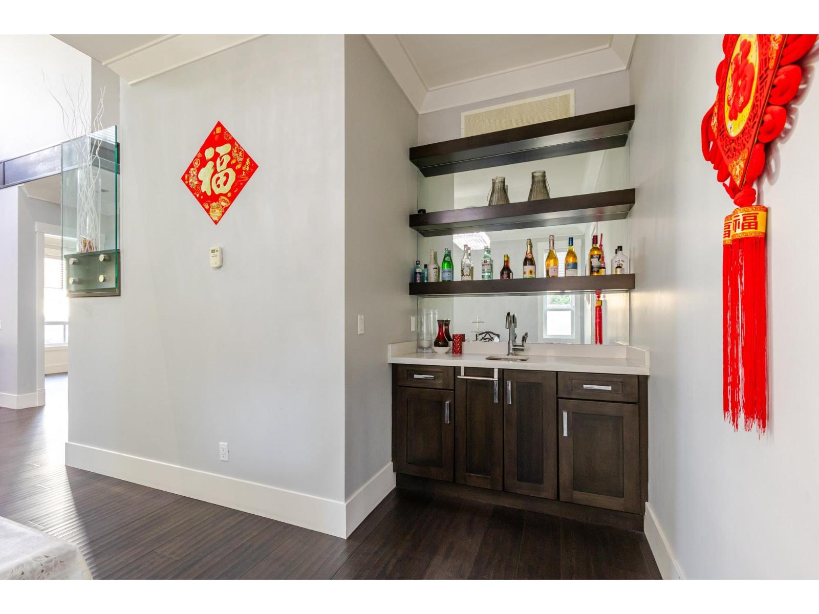 Contemporary West Coast style home with almost 6000 sqft on 7757 sqft rectangular sunny lot! total 8 bedrooms 9 bathrooms. Air conditioning! Hardwood floor on main. high ceilings. wok kitchen. One bedroom with ensuite on main. Family Room finished with elegant wood cabinets; Upstairs with 4 Bedrooms and all Ensuite and walk-in closets. Basement has 2 Bedroom Legal Suite with laundry + Another one bedroom Suite; Media room in basement with Wet Bar & Powder Room. Hide-a-Hose Vacuum, 2 Large Sun Decks. Minutes walk to all level schools and shopping, bus stops. Easy to access highway and US border. (id:64528)