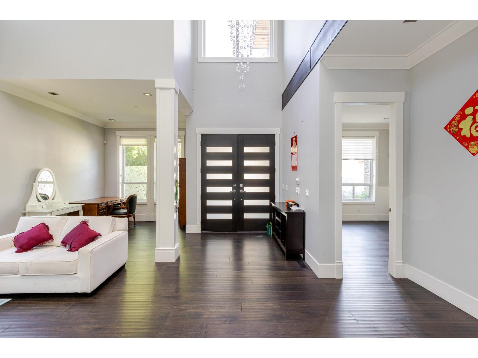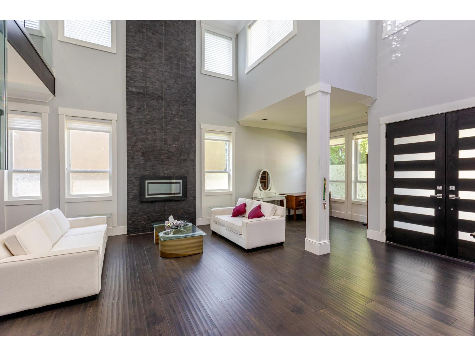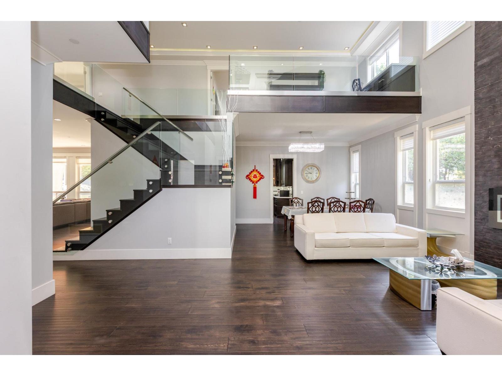 Contemporary West Coast style home with almost 6000 sqft on 7757 sqft rectangular sunny lot! total 8 bedrooms 9 bathrooms. Air conditioning! Hardwood floor on main. high ceilings. wok kitchen. One bedroom with ensuite on main. Family Room finished with elegant wood cabinets; Upstairs with 4 Bedrooms and all Ensuite and walk-in closets. Basement has 2 Bedroom Legal Suite with laundry + Another one bedroom Suite; Media room in basement with Wet Bar & Powder Room. Hide-a-Hose Vacuum, 2 Large Sun Decks. Minutes walk to all level schools and shopping, bus stops. Easy to access highway and US border. (id:64528)