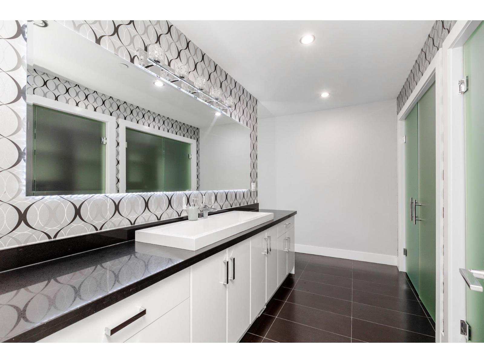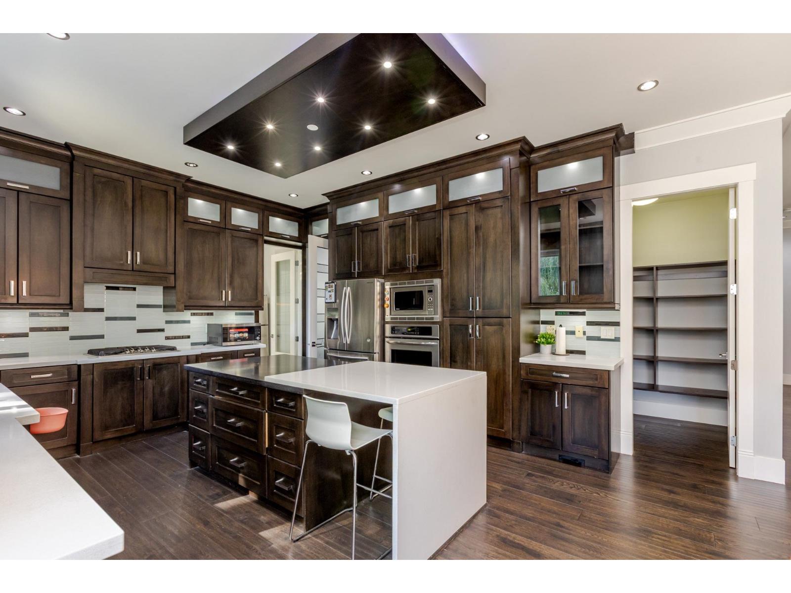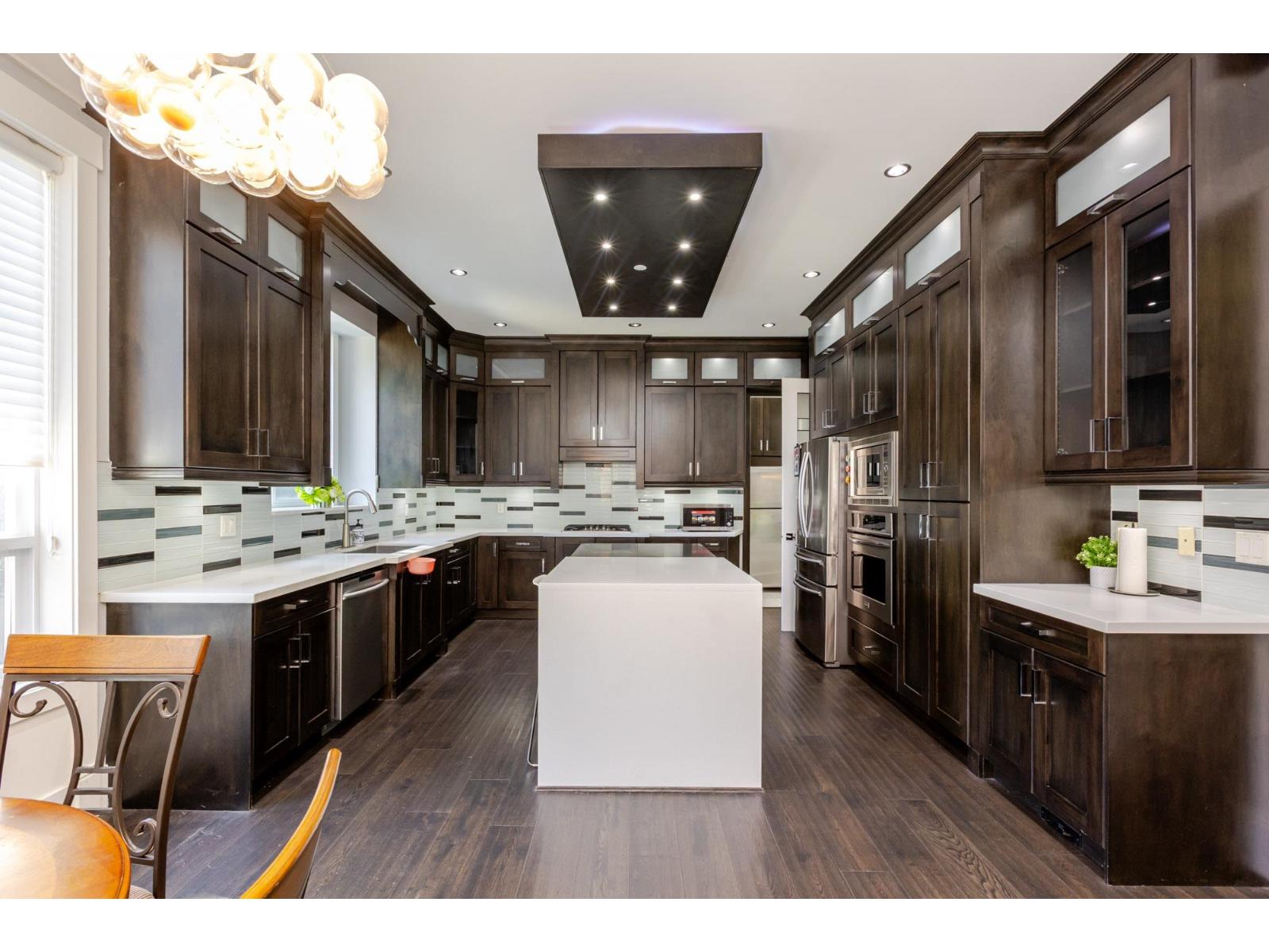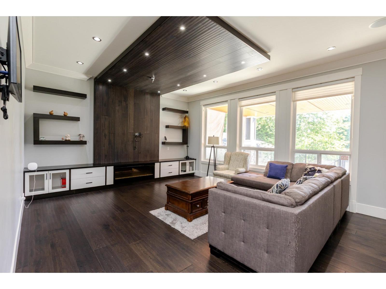 Contemporary West Coast style home with almost 6000 sqft on 7757 sqft rectangular sunny lot! total 8 bedrooms 9 bathrooms. Air conditioning! Hardwood floor on main. high ceilings. wok kitchen. One bedroom with ensuite on main. Family Room finished with elegant wood cabinets; Upstairs with 4 Bedrooms and all Ensuite and walk-in closets. Basement has 2 Bedroom Legal Suite with laundry + Another one bedroom Suite; Media room in basement with Wet Bar & Powder Room. Hide-a-Hose Vacuum, 2 Large Sun Decks. Minutes walk to all level schools and shopping, bus stops. Easy to access highway and US border. (id:64528)