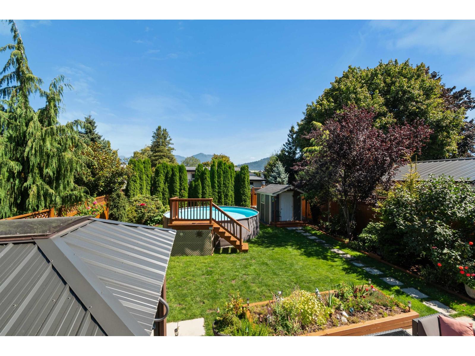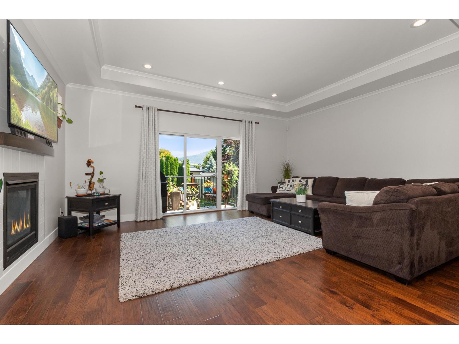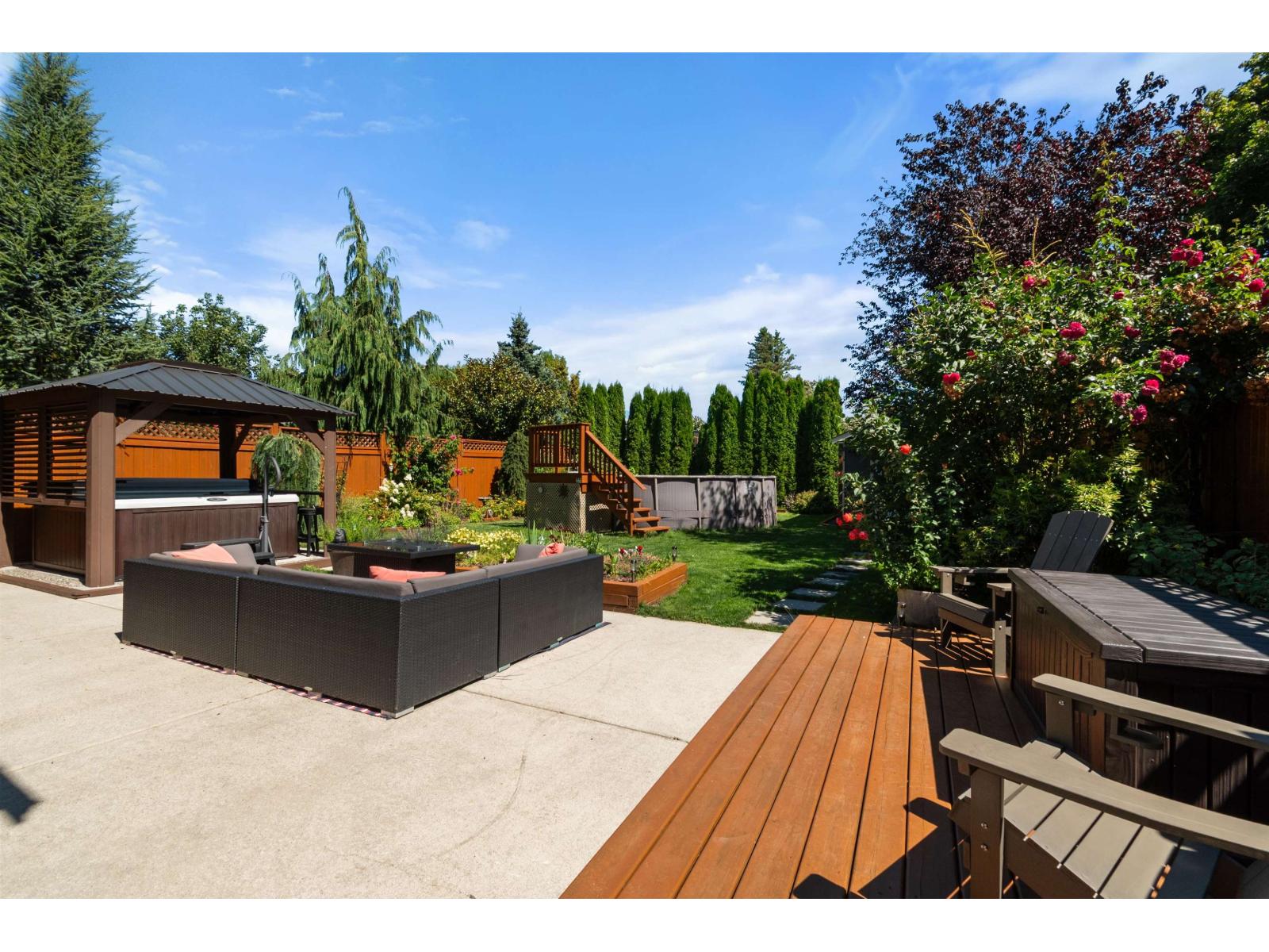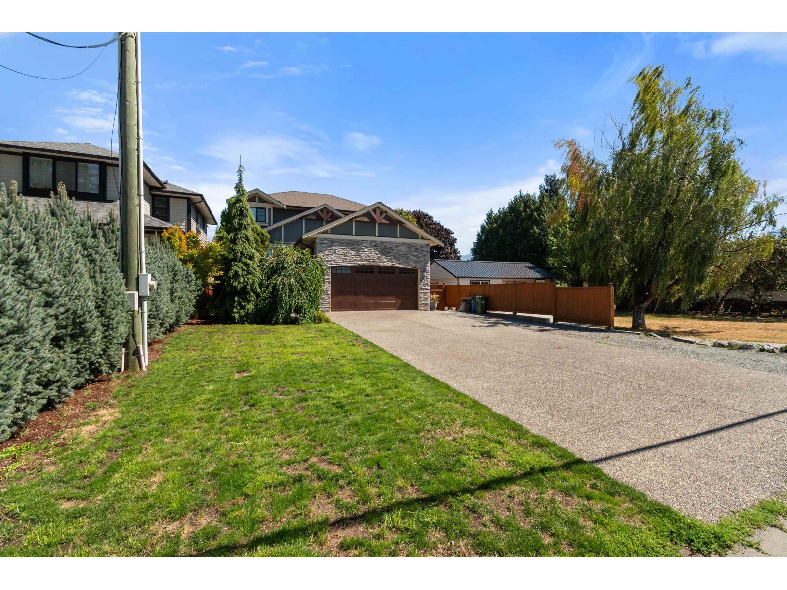 Located in a desirable area of Sardis, this 3,604sqft 2 storey w/basement home sits on a large lot and offers a total of 6 bedrooms and 4 bathrooms. This beautiful, like-new custom home has a legal 2-bedroom basement suite with separate access! The main floor boasts an open-concept design with a spacious great room, den, and a primary suite featuring a luxurious ensuite and walk-in closet. The stunning white kitchen includes stainless steel appliances (gas stove), stone countertops, tile backsplash, pantry, and rich dark flooring. Outside, enjoy a large, fenced yard with hot tub and take in the beautiful mountain views! Additional highlights include hot water on demand, air conditioning, laundry on both levels, double garage, RV parking & a garden shed. (id:64528)