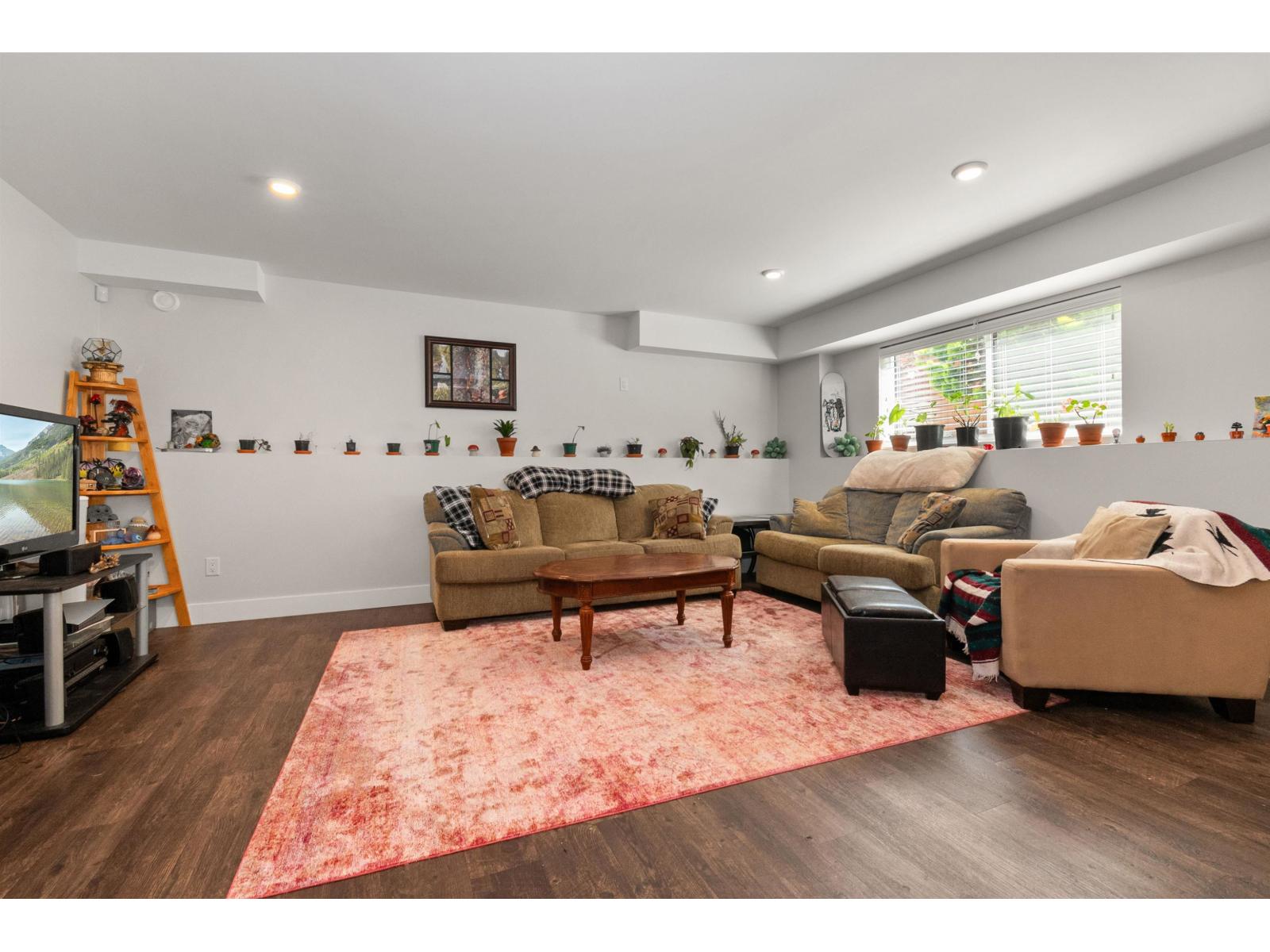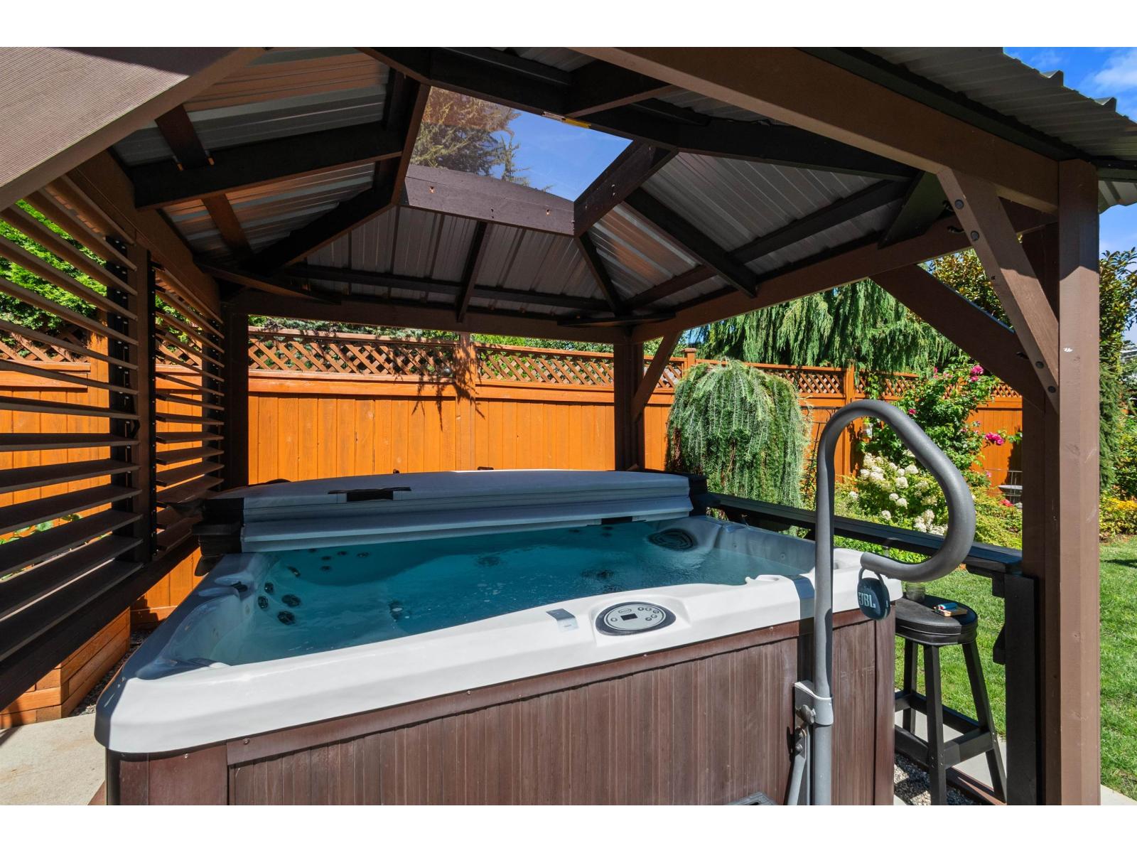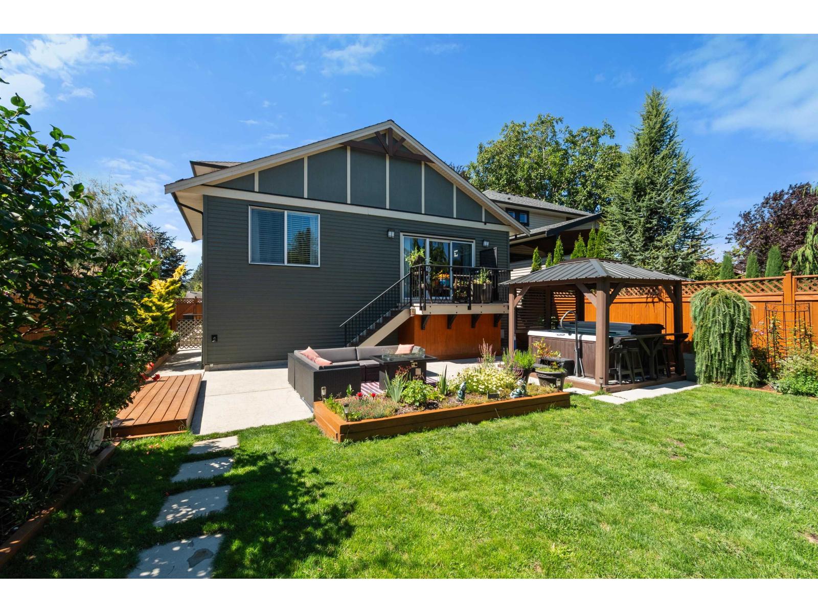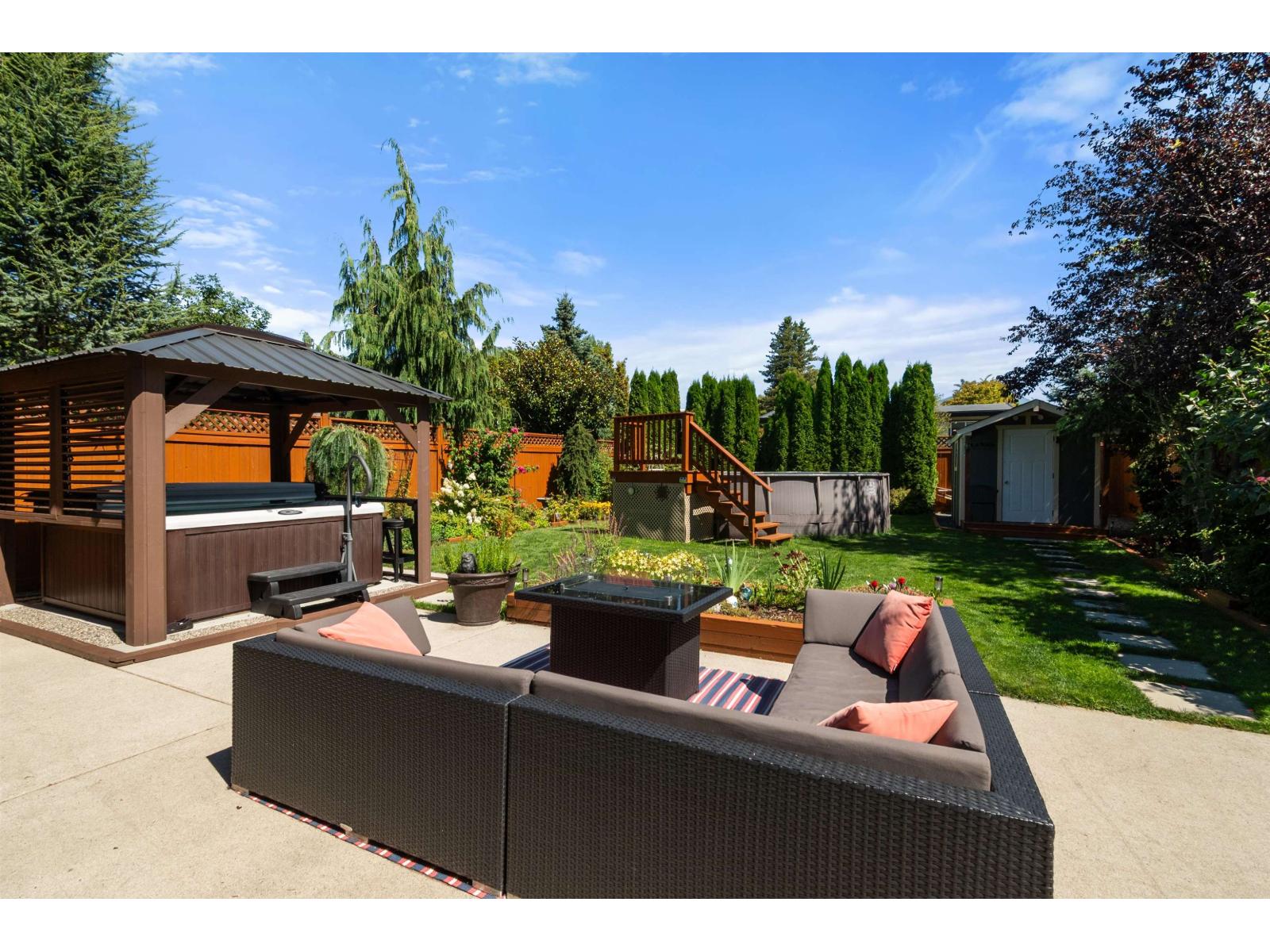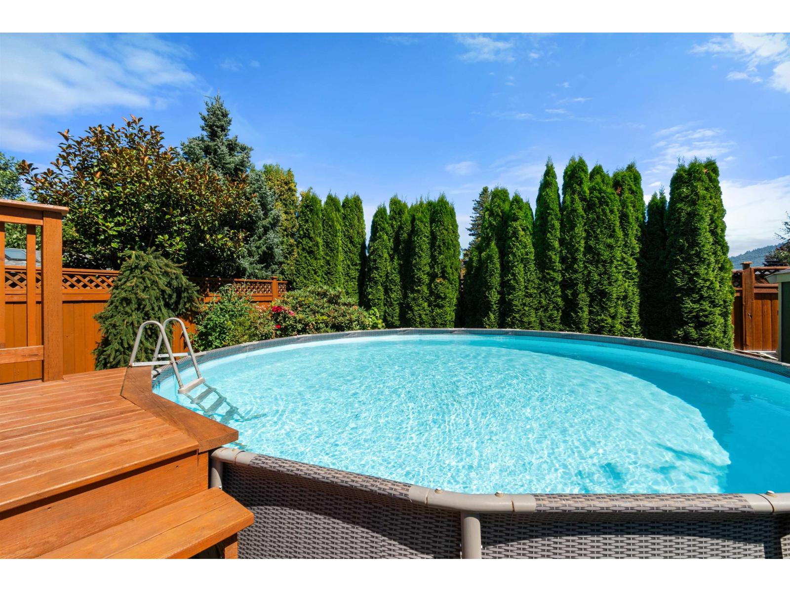 Located in a desirable area of Sardis, this 3,604sqft 2 storey w/basement home sits on a large lot and offers a total of 6 bedrooms and 4 bathrooms. This beautiful, like-new custom home has a legal 2-bedroom basement suite with separate access! The main floor boasts an open-concept design with a spacious great room, den, and a primary suite featuring a luxurious ensuite and walk-in closet. The stunning white kitchen includes stainless steel appliances (gas stove), stone countertops, tile backsplash, pantry, and rich dark flooring. Outside, enjoy a large, fenced yard with hot tub and take in the beautiful mountain views! Additional highlights include hot water on demand, air conditioning, laundry on both levels, double garage, RV parking & a garden shed. (id:64528)