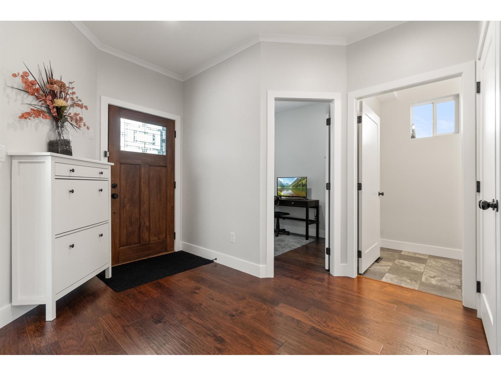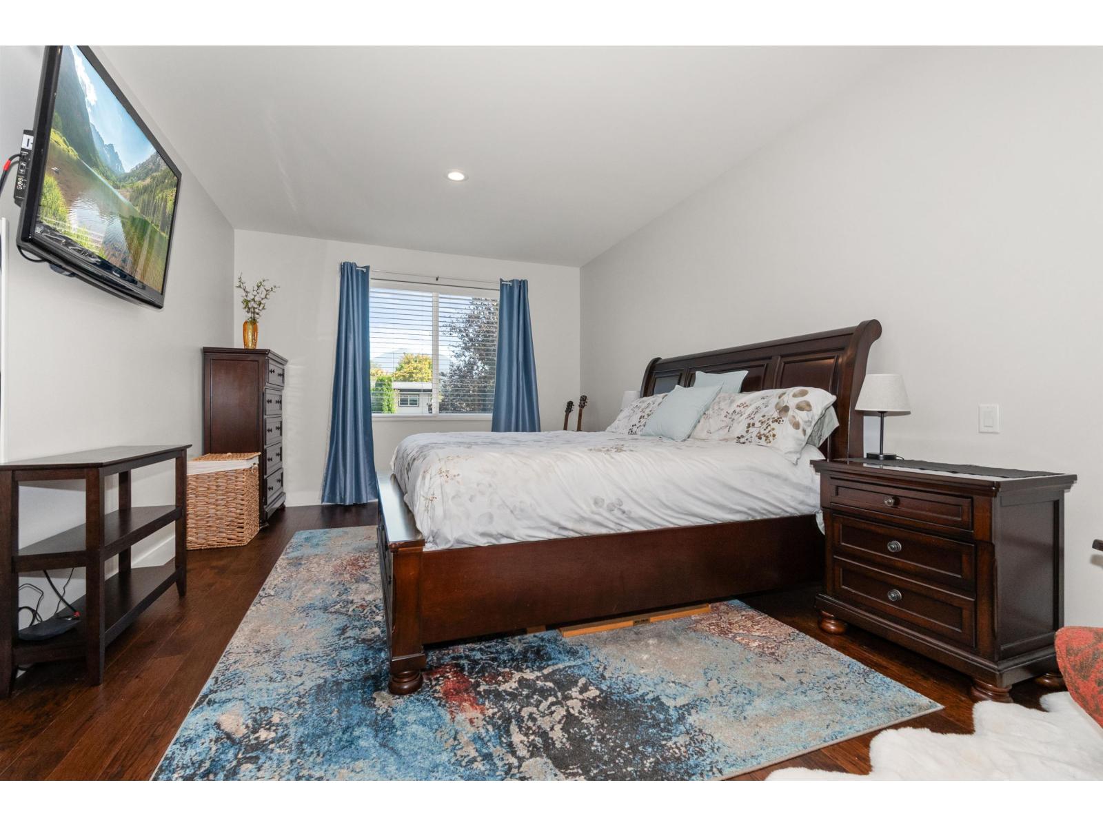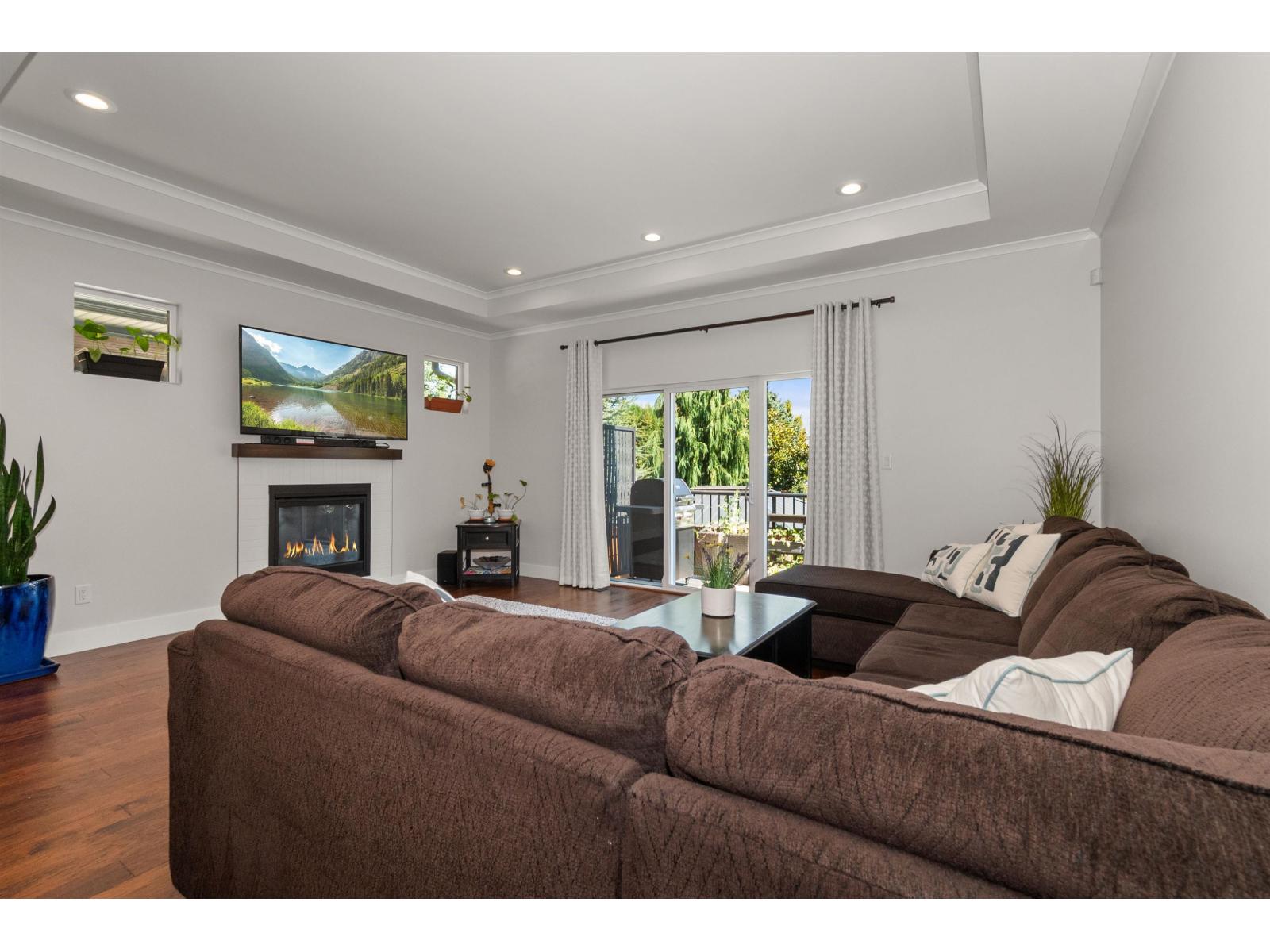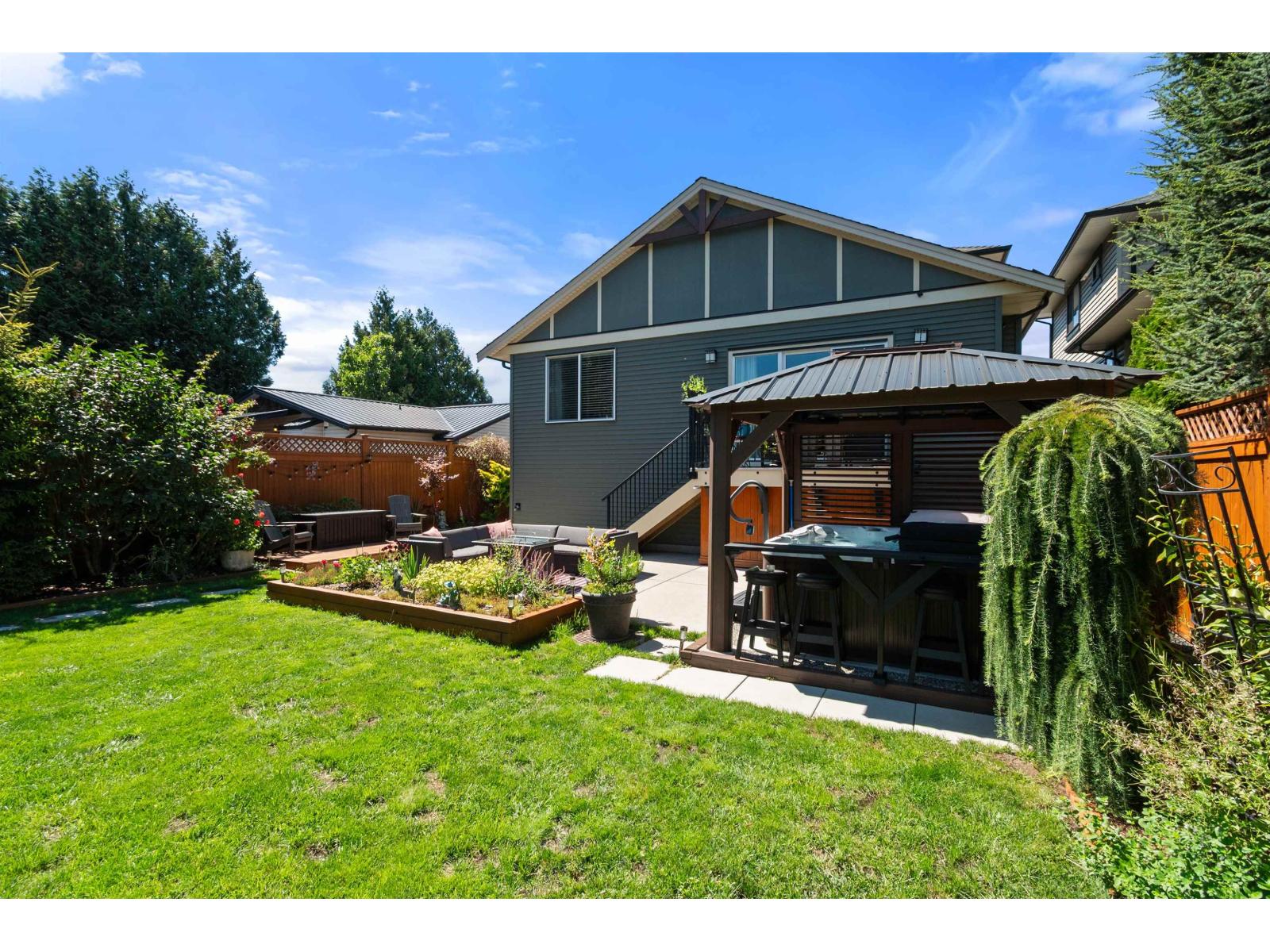 Located in a desirable area of Sardis, this 3,604sqft 2 storey w/basement home sits on a large lot and offers a total of 6 bedrooms and 4 bathrooms. This beautiful, like-new custom home has a legal 2-bedroom basement suite with separate access! The main floor boasts an open-concept design with a spacious great room, den, and a primary suite featuring a luxurious ensuite and walk-in closet. The stunning white kitchen includes stainless steel appliances (gas stove), stone countertops, tile backsplash, pantry, and rich dark flooring. Outside, enjoy a large, fenced yard with hot tub and take in the beautiful mountain views! Additional highlights include hot water on demand, air conditioning, laundry on both levels, double garage, RV parking & a garden shed. (id:64528)