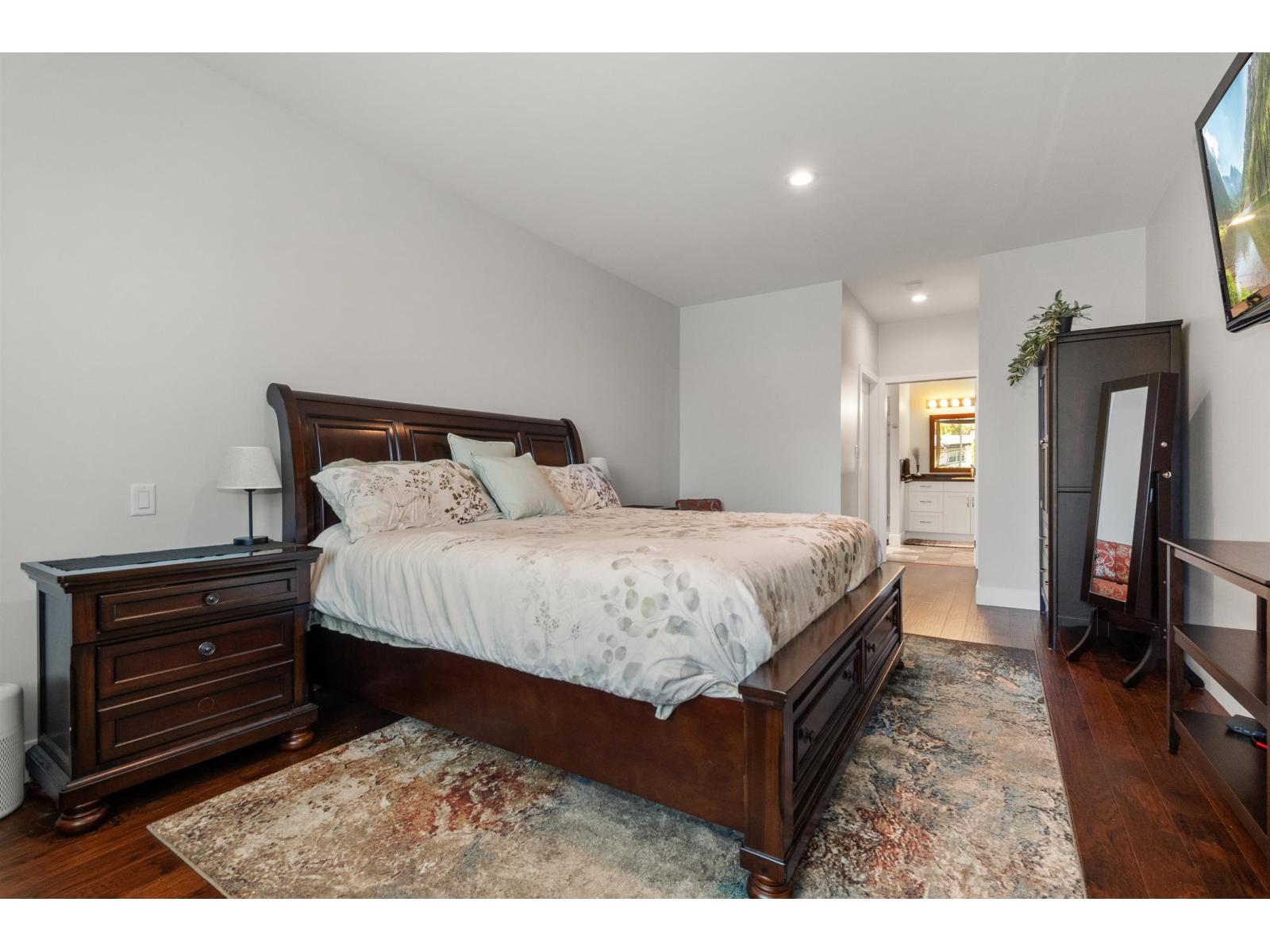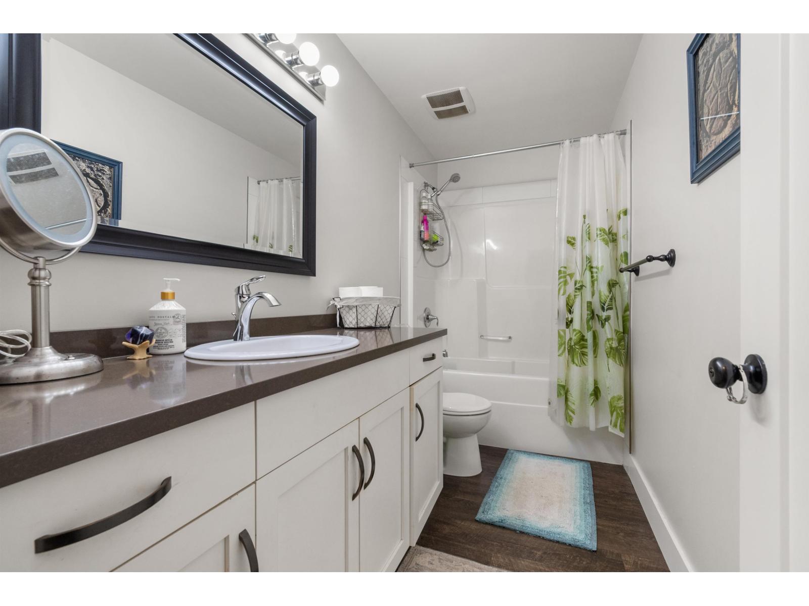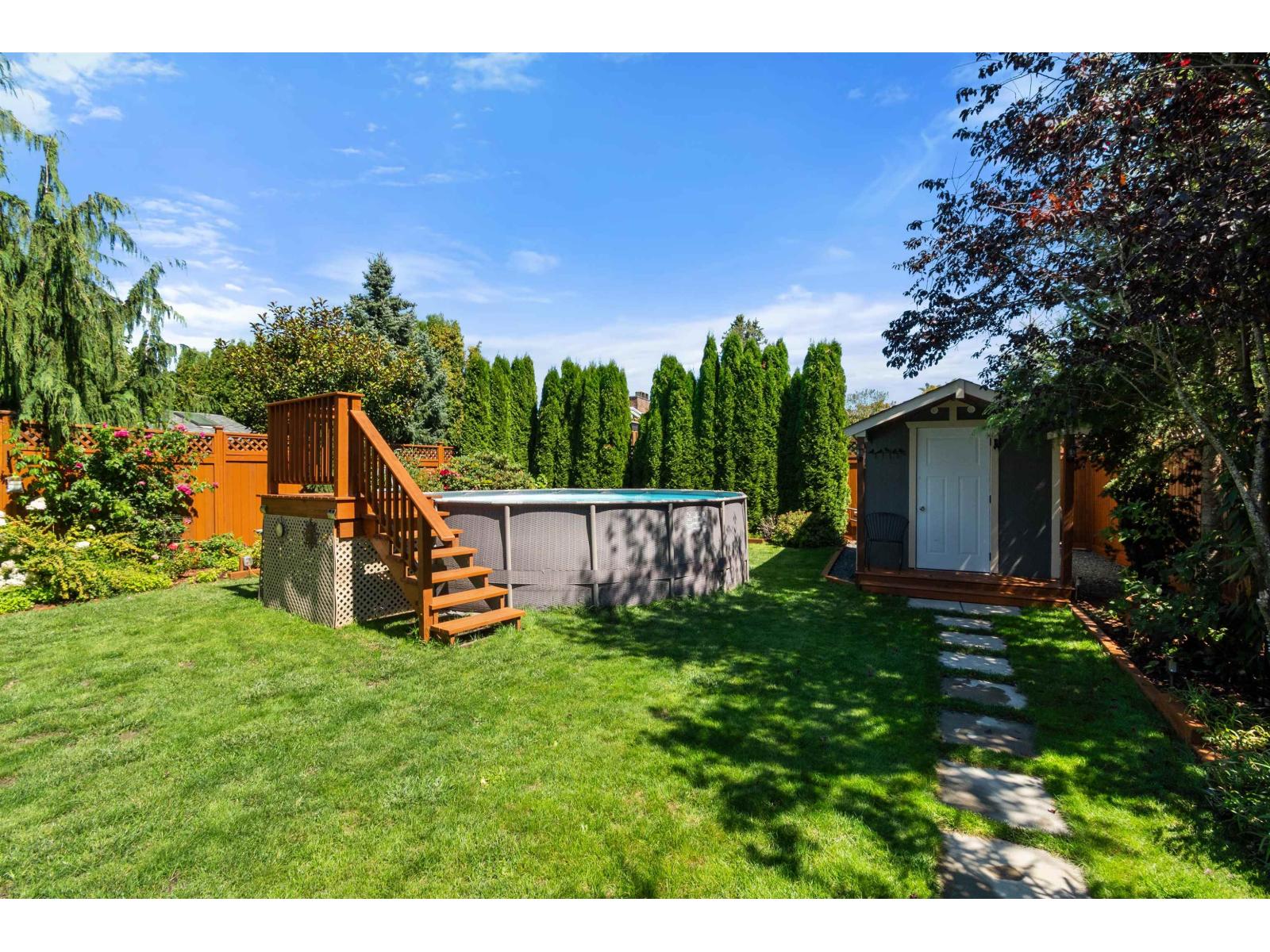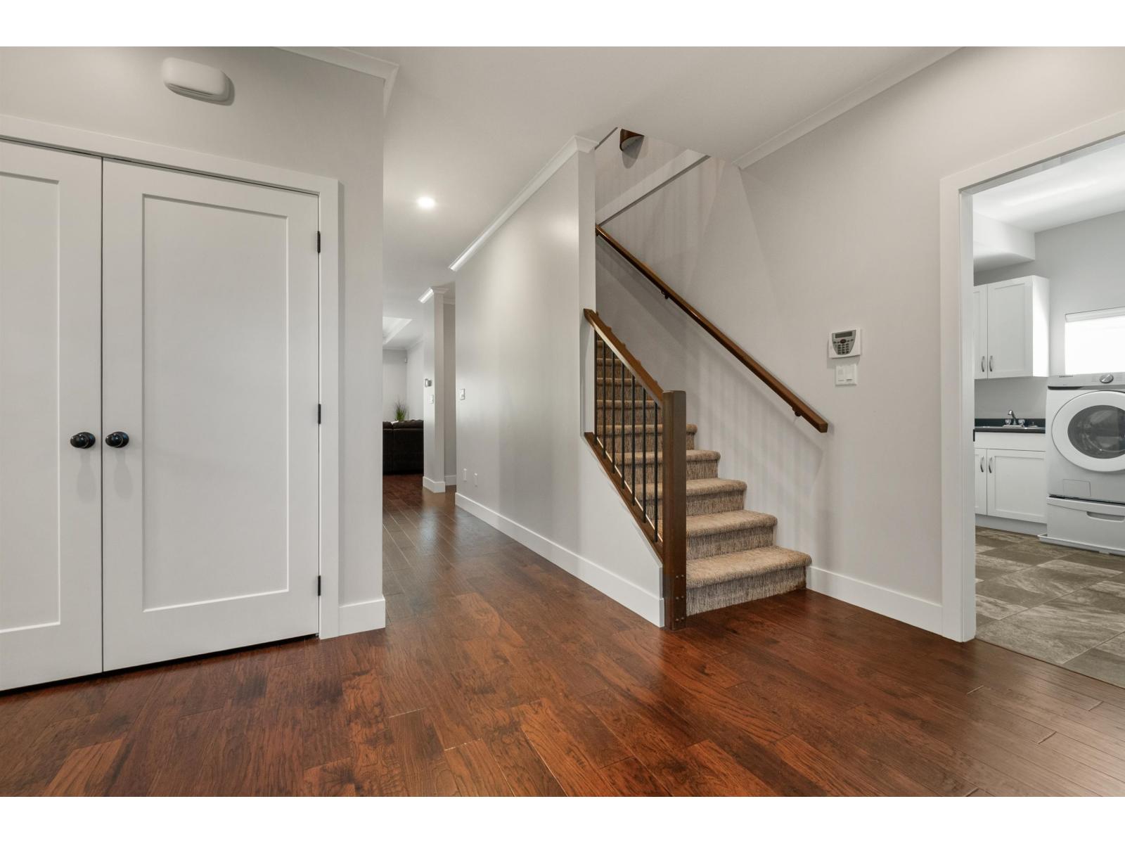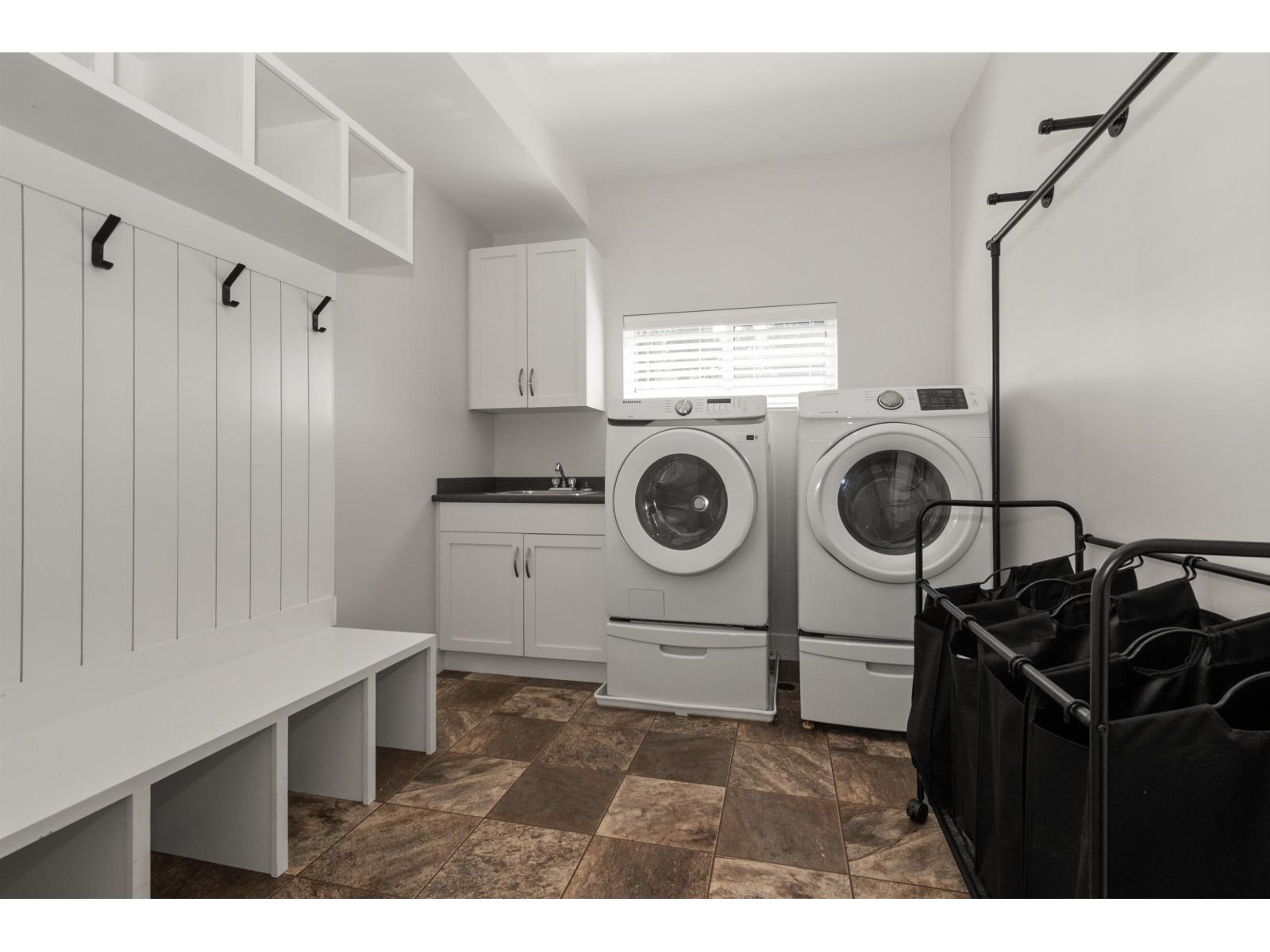 Located in a desirable area of Sardis, this 3,604sqft 2 storey w/basement home sits on a large lot and offers a total of 6 bedrooms and 4 bathrooms. This beautiful, like-new custom home has a legal 2-bedroom basement suite with separate access! The main floor boasts an open-concept design with a spacious great room, den, and a primary suite featuring a luxurious ensuite and walk-in closet. The stunning white kitchen includes stainless steel appliances (gas stove), stone countertops, tile backsplash, pantry, and rich dark flooring. Outside, enjoy a large, fenced yard with hot tub and take in the beautiful mountain views! Additional highlights include hot water on demand, air conditioning, laundry on both levels, double garage, RV parking & a garden shed. (id:64528)