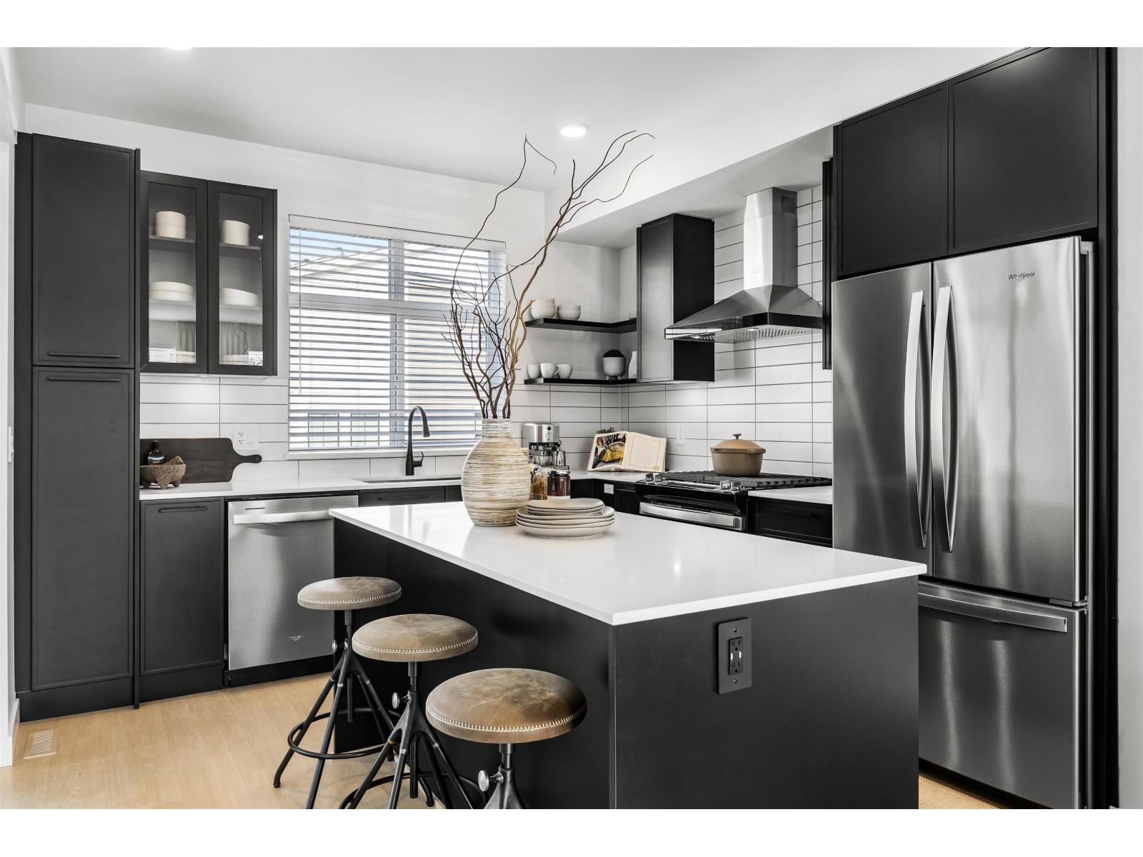 Welcome to RAIL DISTRICT, a master-planned community by Infinity Properties in the heart of Historic Downtown Abbotsford, where urban energy meets relaxed Valley living. This thoughtfully designed 3-bedroom + flex home features a walk in pantry, side by side laundry, versatile flex area ideal for a home office, gym, or studio. Enjoy natural gas forced-air heating, durable wide-plank laminate flooring, and a modern kitchen with custom shaker cabinetry and polished quartz countertops. PARKING FOR 4 CARS - double side-by-side garage plus full driveway. Air conditioning included for a limited time. Newly completed amenity building with gym, pool, entertainment lounge, workstations & more. Move in ready. Visit our Presentation Centre and Showhome Saturday - Wednesday, 12-5 pm. (id:64528)