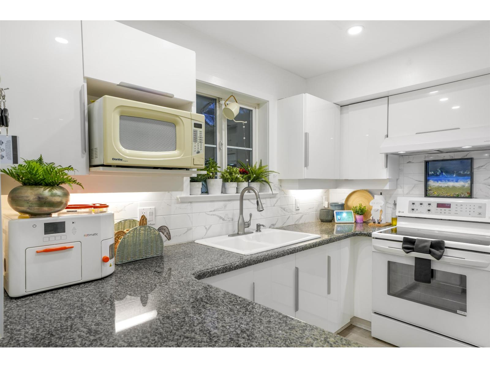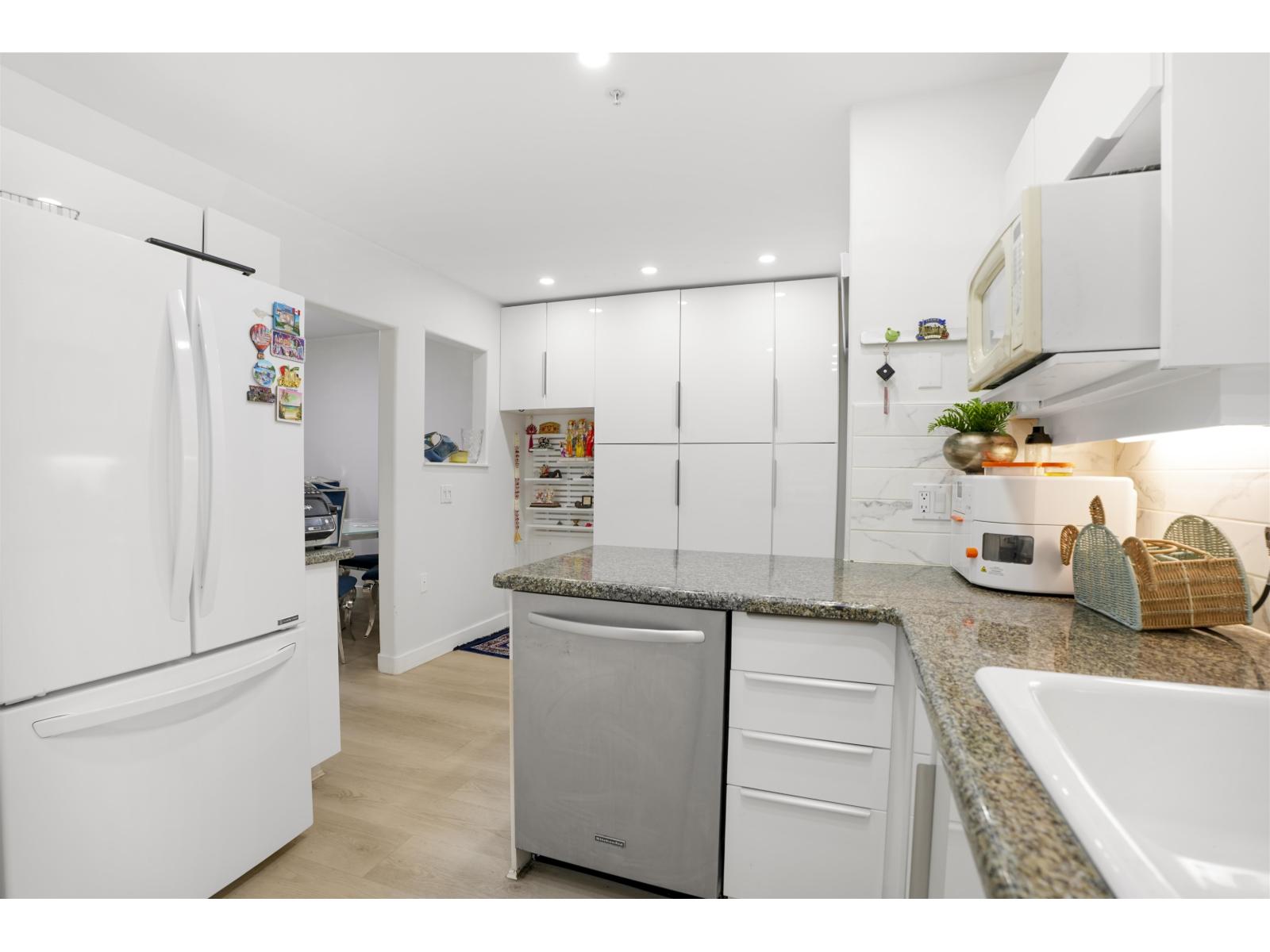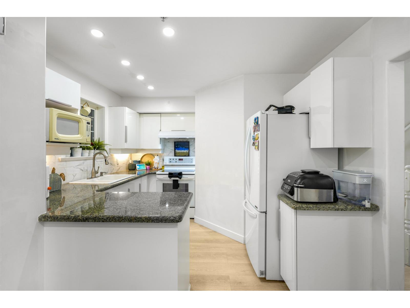 Space, flexibility, and walkable convenience define this beautifully updated 3-bedroom, 4-bathroom outside-unit townhouse. All bedrooms feature full ensuites, including a spacious top-floor loft with high ceilings and a private covered balcony-ideal as a primary retreat, home office, or guest suite. The basement flex/mudroom offers versatile use as a recreation room, gym, or storage. Recent updates include vinyl plank flooring, refreshed kitchen cabinetry, updated lighting, radiant in-floor heating and a brand-new roof (Nov 2025). Includes 2 secure covered parking stalls plus ample guest parking. Walk to Semiahmoo Shopping Centre, hospital across the street, schools, transit, parks, and White Rock Beach. Open House Feb 21st, 1-3 PM. (id:64528)