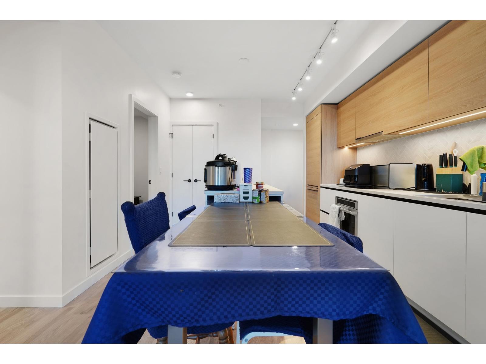 Showing by appointment only, Bright Jr. 2-bed home at University District by BlueSky Properties, a Bosa family company, offering an efficient layout with well-separated bedrooms and an open living space designed for everyday comfort. Contemporary interiors feature sleek finishes, integrated appliances, and thoughtful storage solutions. This 2023 concrete high-rise provides exceptional resort-style amenities, including an outdoor pool, full fitness centre, yoga and study lounges, entertainment spaces, kids' playroom, and concierge service. Located in the heart of Surrey City Centre-steps to SkyTrain, SFU, KPU, shopping, dining, parks, and civic facilities. A strong choice for both end users and investors seeking long-term value in a rapidly growing urban hub. (id:64528)
