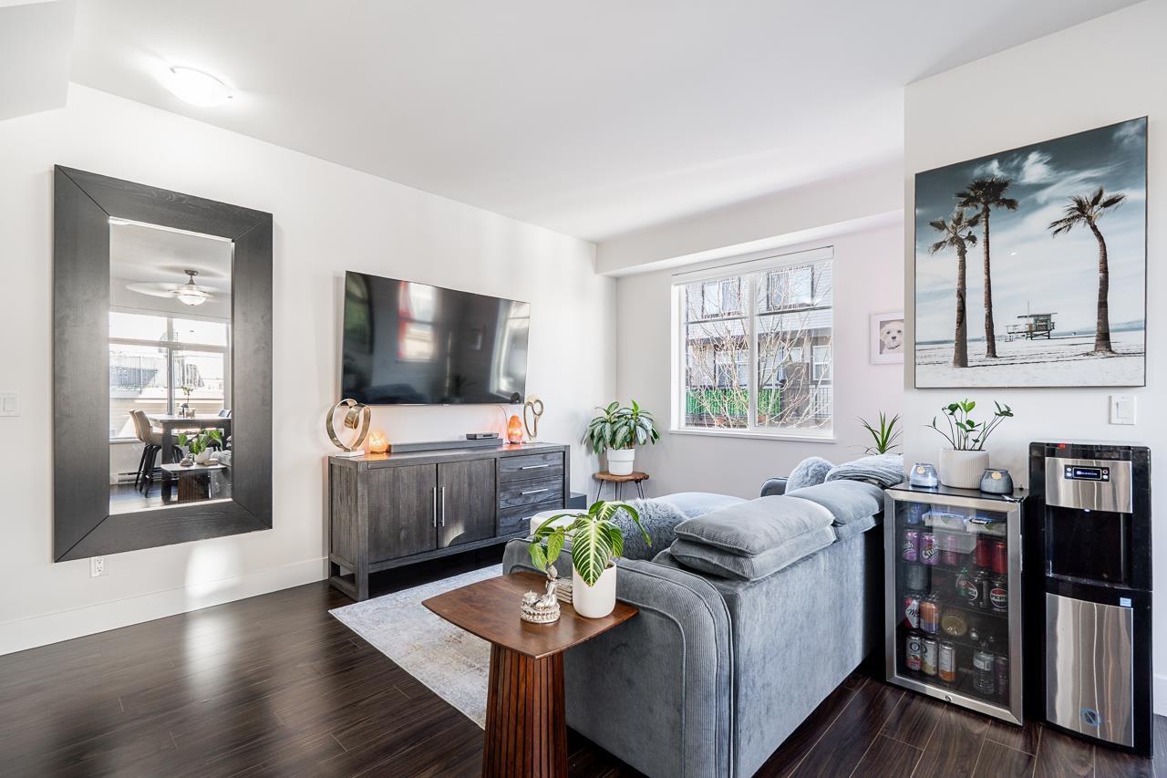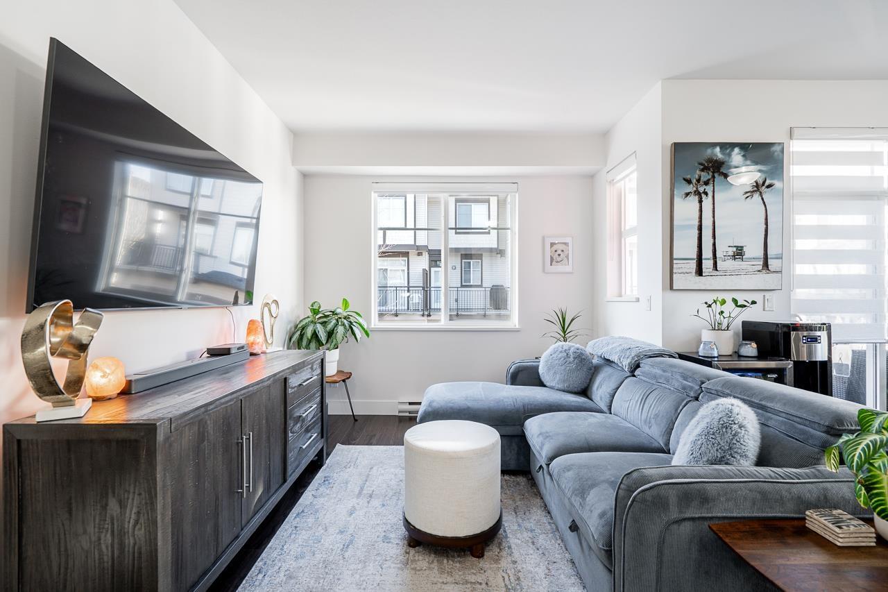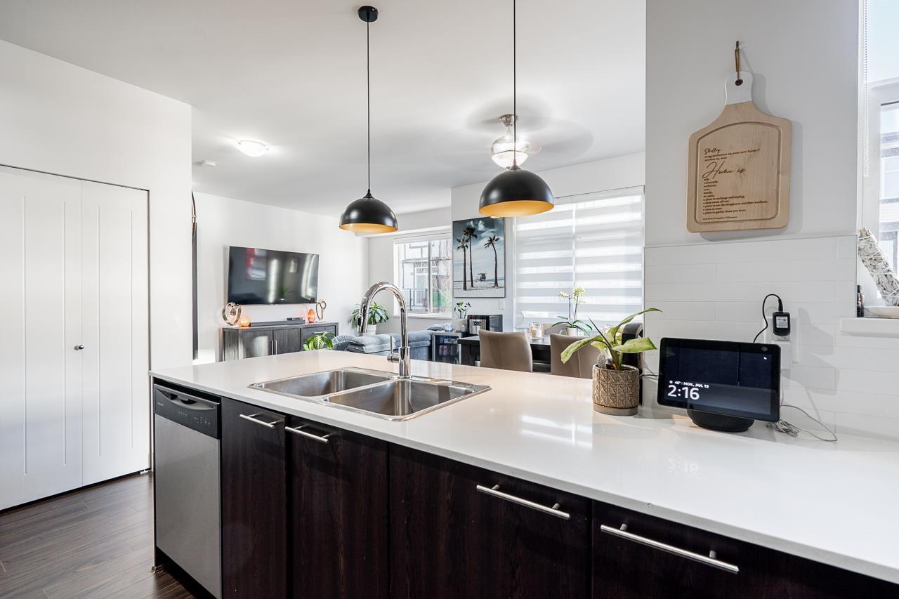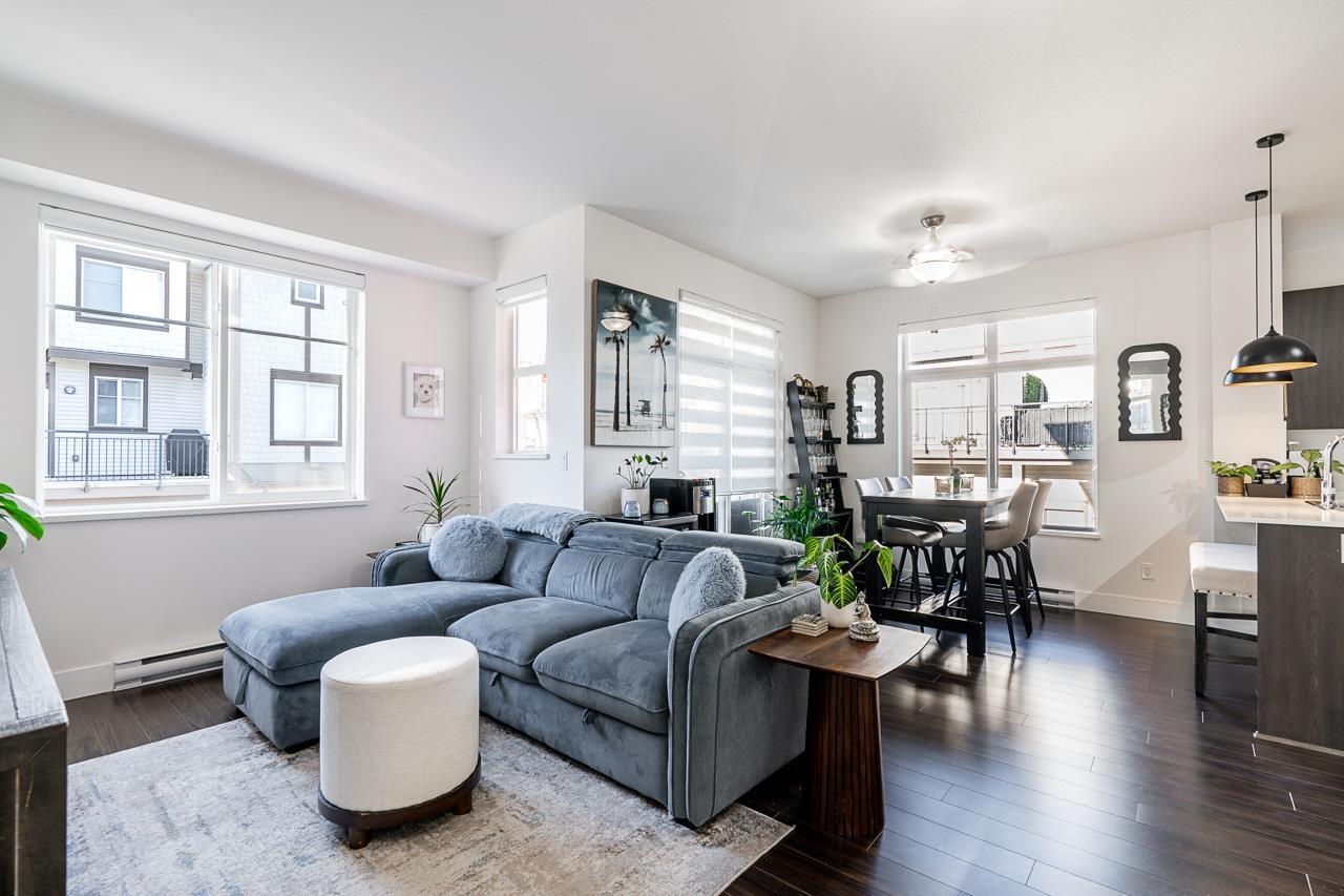 Welcome to The Grove! Rare corner-unit townhome with a double side-by-side garage featuring 2 bedrooms and 2 bathrooms. Bright and spacious layout with extra windows creates a more open, square footprint than typical units. Modern kitchen with quartz countertops, stainless steel appliances, and ample cabinet space. Enjoy your private balcony-perfect for BBQs and fresh air. Located next to Katzie Park, steps to the complex pool, and a short walk to Katzie Elementary. Outstanding amenities include a 9,100+ sq ft clubhouse, pool, fitness centre, movie theatre, lounges, hockey rink, and party room. A rare find in a prime location-don't miss it! (id:64528)