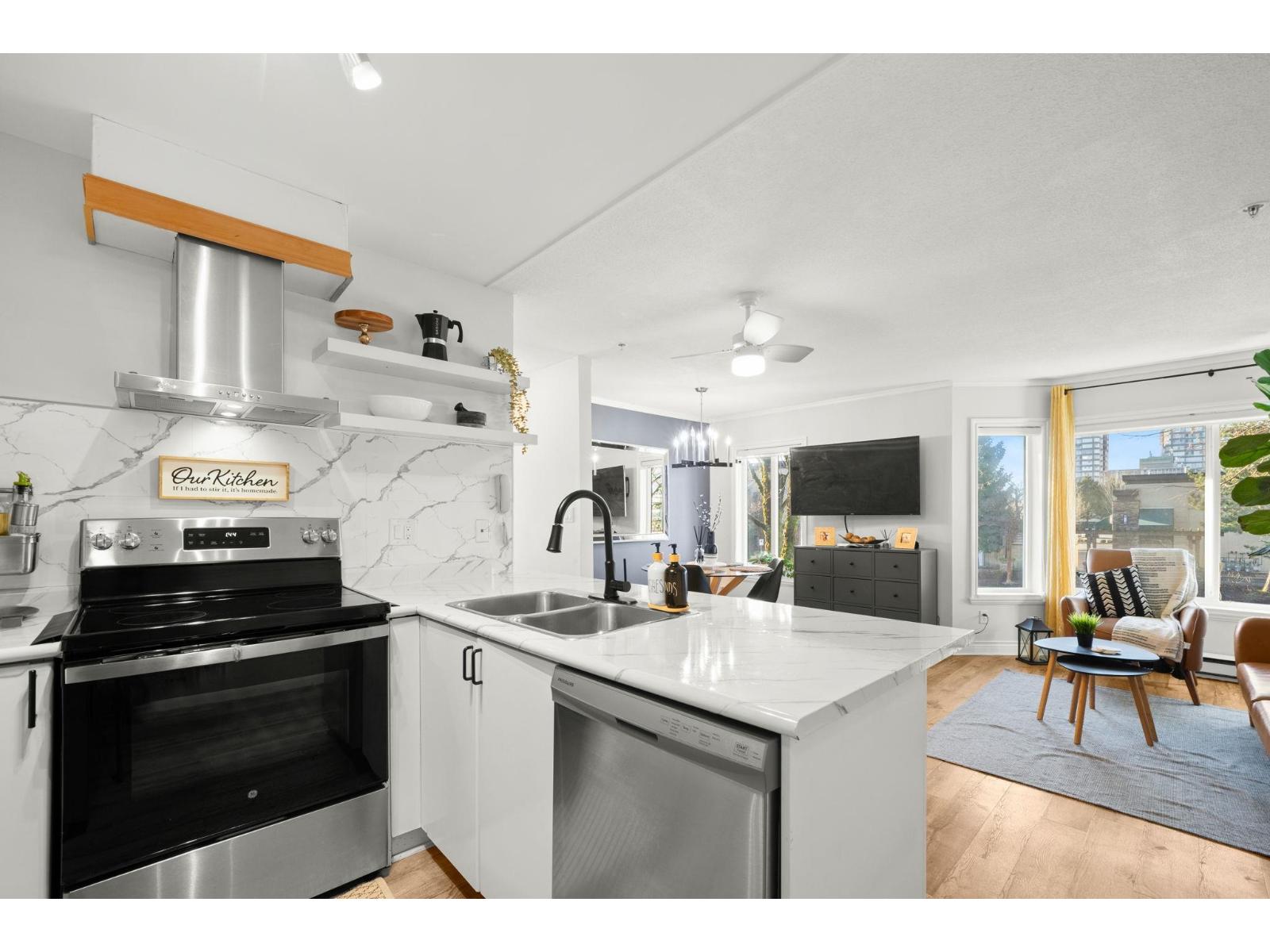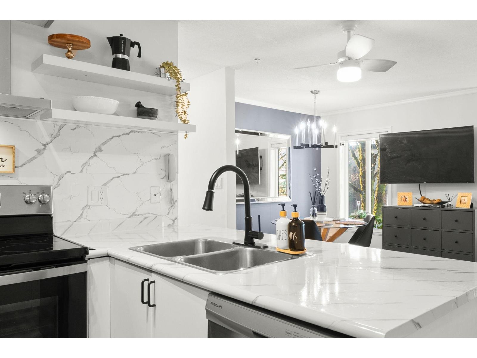 Welcome to the centrally located & well-maintained La Costa Green community! This tastefully updated, bright end/corner unit offers excellent convenience with Superstore, Fruiticana, Tim Hortons & The Keg all within walking distance. Bonus: bus stop 1 block away with direct access to Scott Rd SkyTrain in 5-10 minutes. Features include a spacious living room, a generous dining area with large windows, and an open-concept kitchen. Long foyer provides a convenient space to sit and remove shoes. Quiet corner location backing onto the courtyard with a good-sized patio off the 12' x 11' primary bedroom. Don't miss this well located, move in ready home (id:64528)