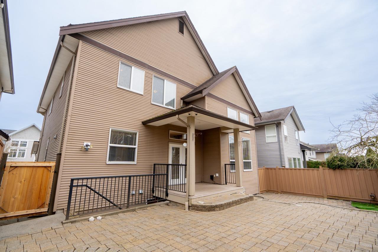 Exceptional 6 bed + den, 4 bath family home in sought after Willoughby Heights. Superior craftsmanship with elegant lighting, crown moulding, detailed millwork, vaulted ceilings, and celestial windows filling the home with natural light. Open concept design offers a spacious great room and chef's kitchen with large island, ideal for entertaining. Four bedrooms upstairs include a luxurious master with spa inspired ensuite and walk-in closet. Fully finished basement with separate entry features two bedrooms, bar area, and large rec room. Upgrades include EV charger, hardwired cameras and built-in security, ethernet wiring, 2025 Miele dishwasher, 2025 Frigidaire fridge, newer washer/dryer, gas hot water tank, and heat pump for year round comfort. Private low maintenance west facing backyard. (id:64528)