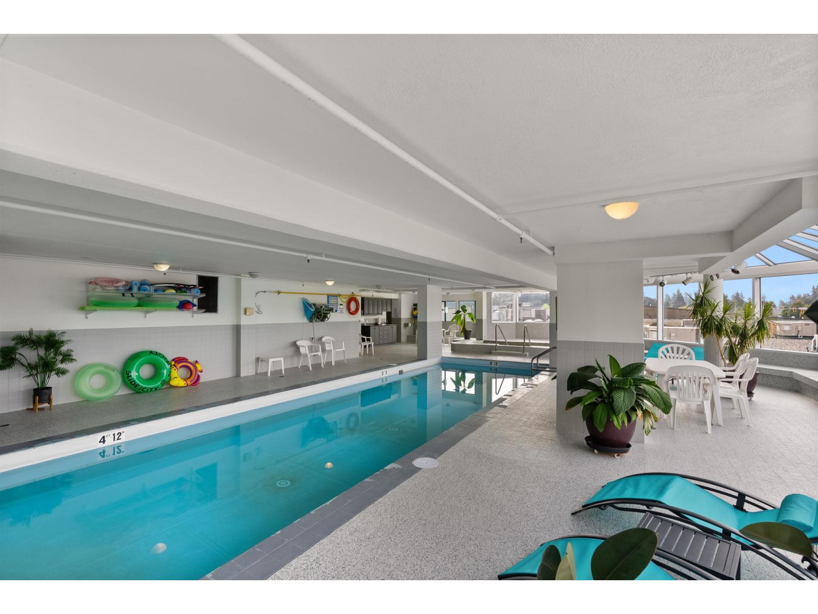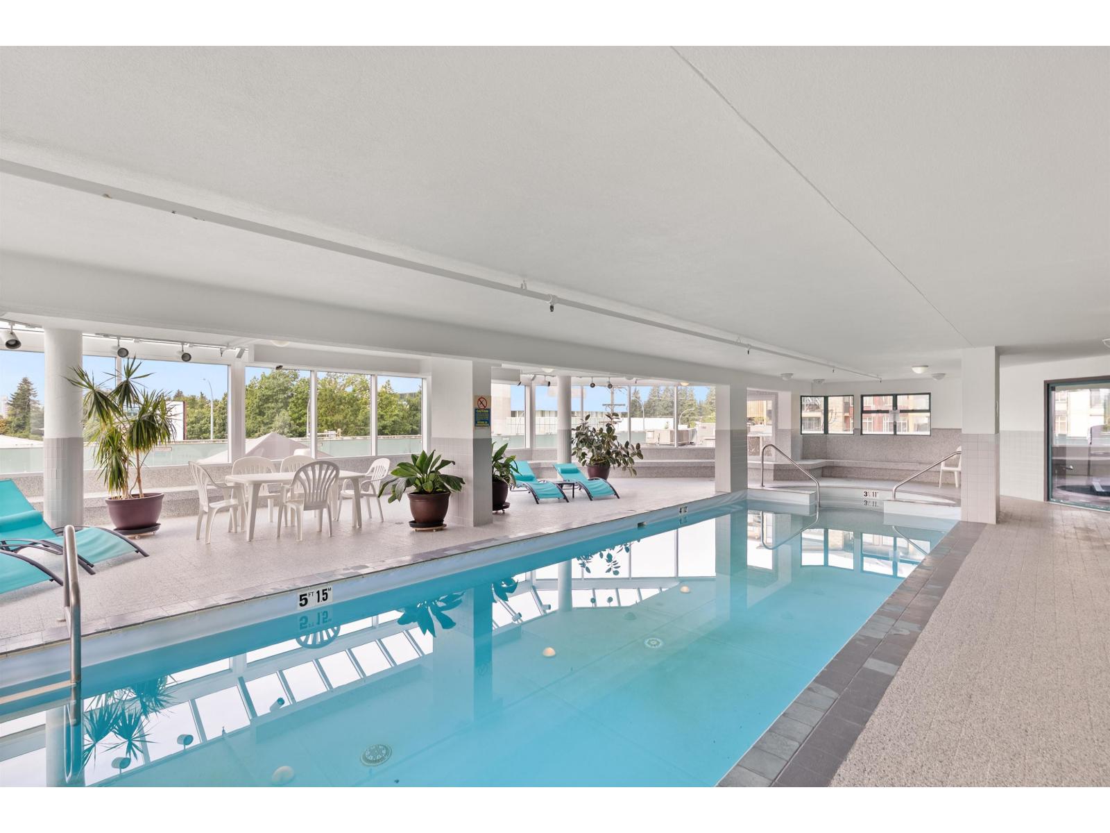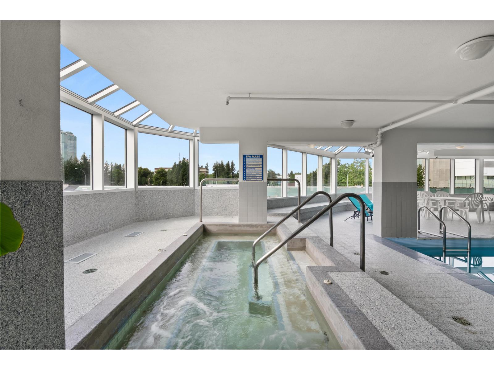 Welcome to Trethewey Tower on Simon, where uninhibited views of Mt. Baker and the North Shore Mountains set the stage. This Northeast corner unit offers two spacious bedrooms, two full bathrooms, and a fully enclosed solarium sundeck, Perfect for use all year round. Some updates are already in place-bring your ideas to make it your own! Enjoy resort-style amenities including an indoor pool, hot tub, sauna, tanning deck, fully equipped gym, craft and games rooms, library, lounge, workshop with tools, bike room, plus a storage locker. One covered parking space included. With more parking rentals potentially available. Quick possession available. The complex allows one cat, but no dogs are allowed. New built-in microwave. (id:64528)