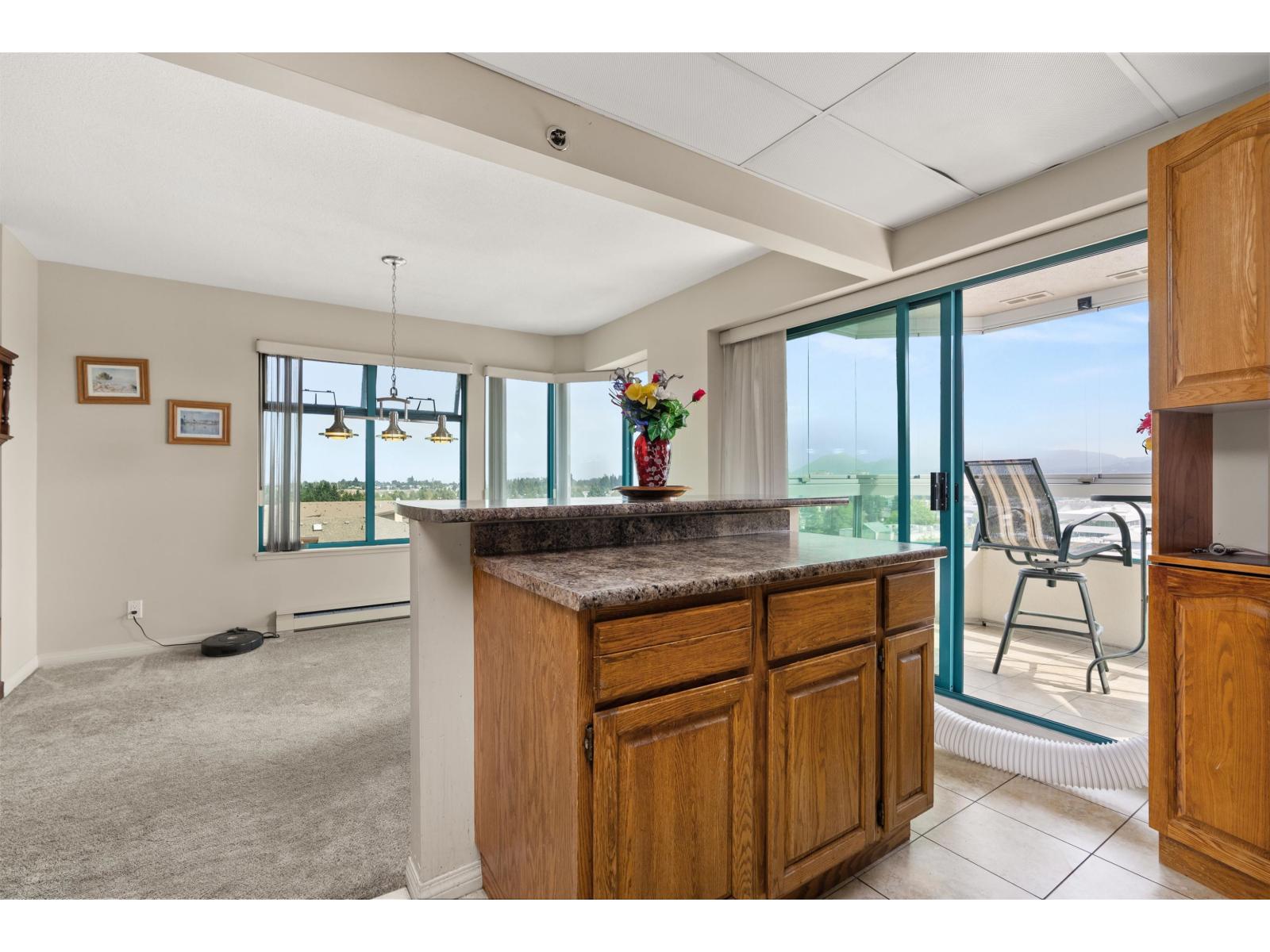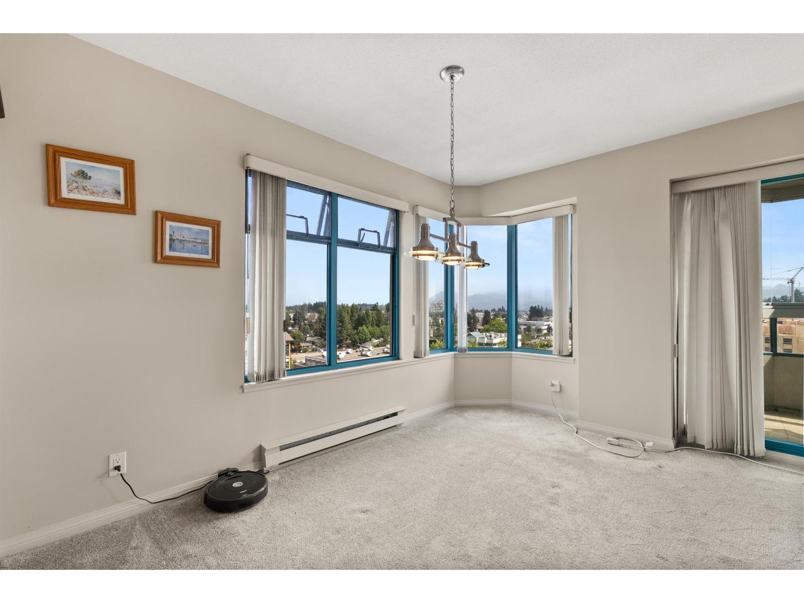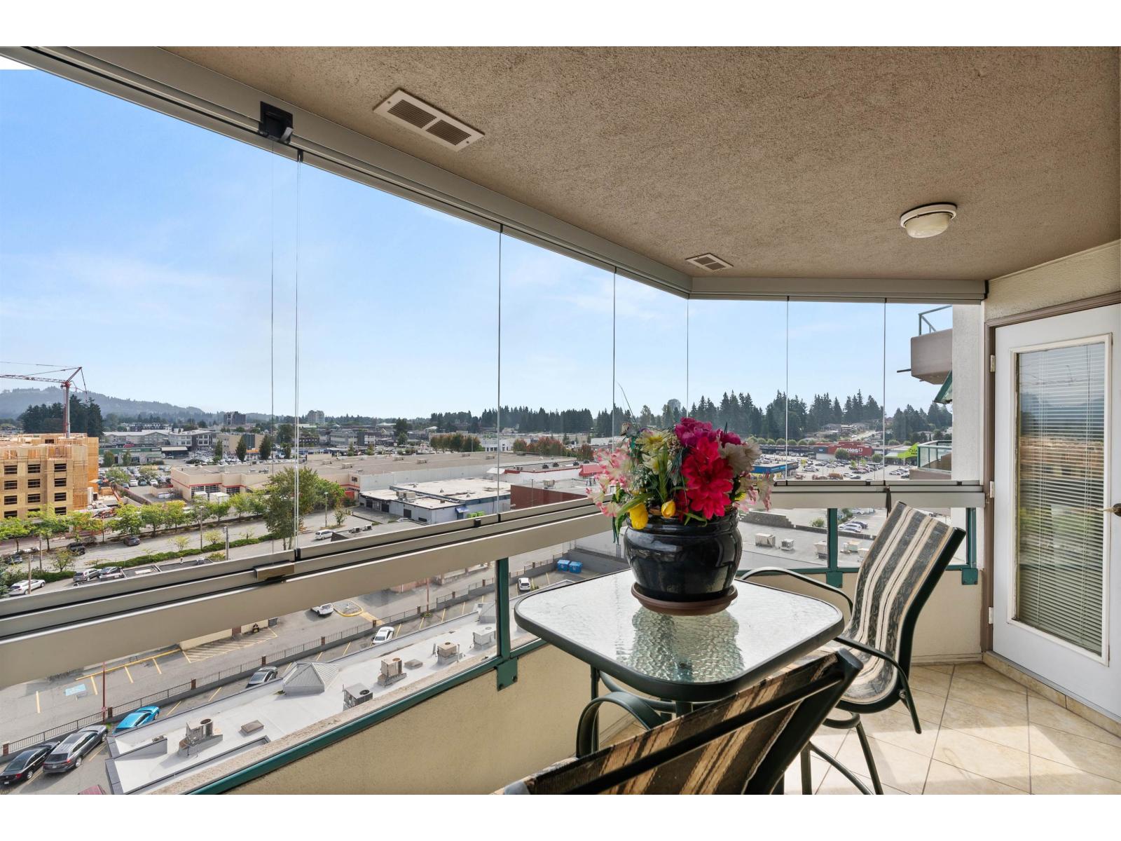 Welcome to Trethewey Tower on Simon, where uninhibited views of Mt. Baker and the North Shore Mountains set the stage. This Northeast corner unit offers two spacious bedrooms, two full bathrooms, and a fully enclosed solarium sundeck, Perfect for use all year round. Some updates are already in place-bring your ideas to make it your own! Enjoy resort-style amenities including an indoor pool, hot tub, sauna, tanning deck, fully equipped gym, craft and games rooms, library, lounge, workshop with tools, bike room, plus a storage locker. One covered parking space included. With more parking rentals potentially available. Quick possession available. The complex allows one cat, but no dogs are allowed. New built-in microwave. (id:64528)