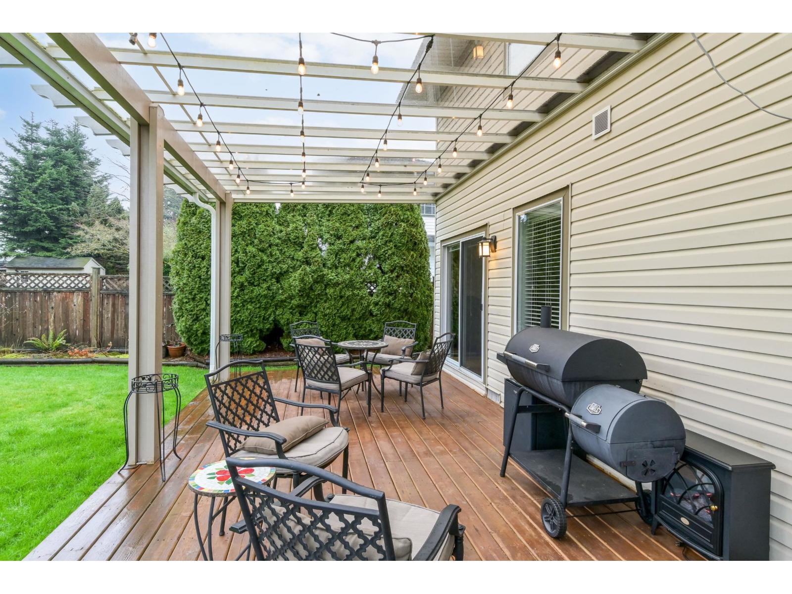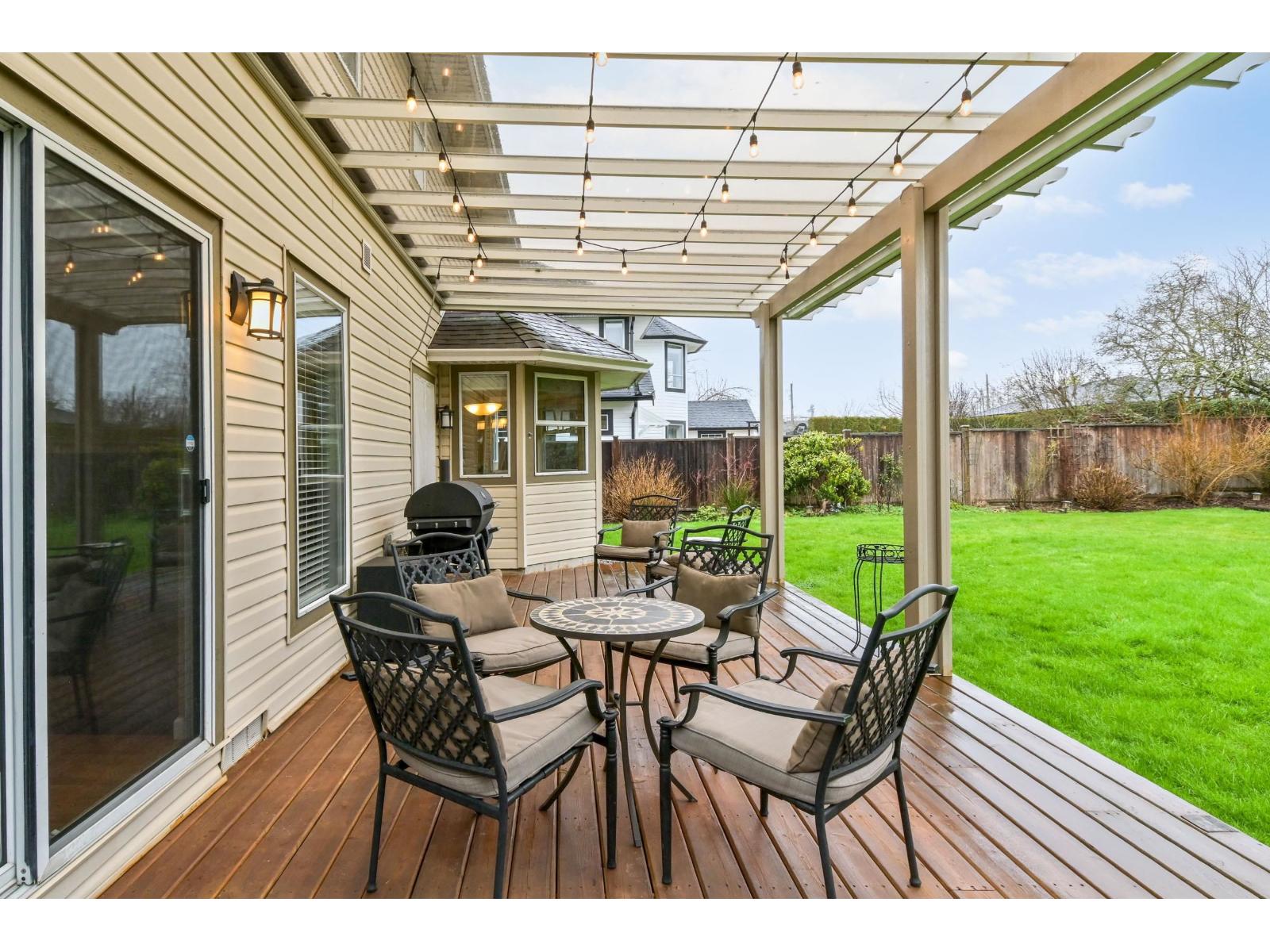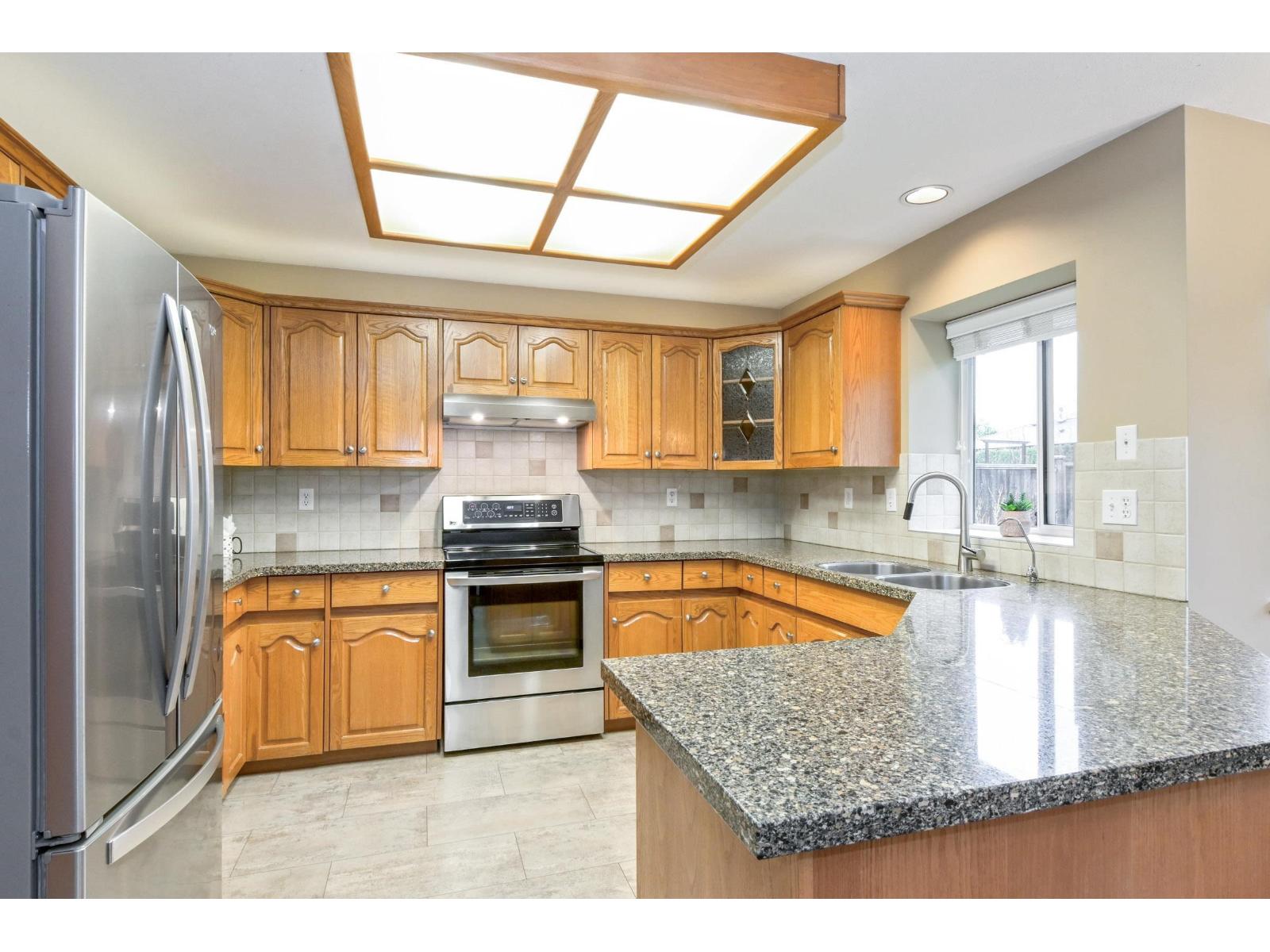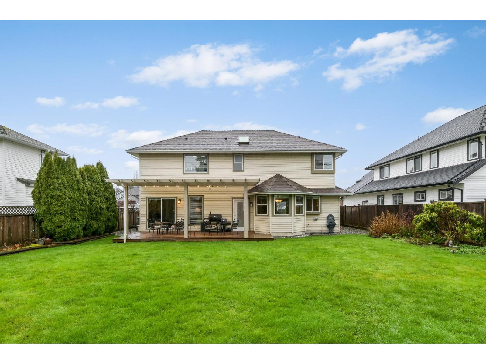 Immaculate custom built 2 storey, 4 bedroom and den home on a rectangular flat lot in Murrayville. Impressive entrance with circular staircase. Large windows and skylights make this home bright and light. Oak kitchen with quartz countertops, and stainless steel appliances opening onto a beautiful private landscaped lot. 1 bedroom is on the main - no stairs. 3 bedrooms up and primary bedroom has w/i closet and luxurious ensuite. Very quiet and safe neighbourhood. Hospital, schools, parks and rec centers nearby. (id:64528)