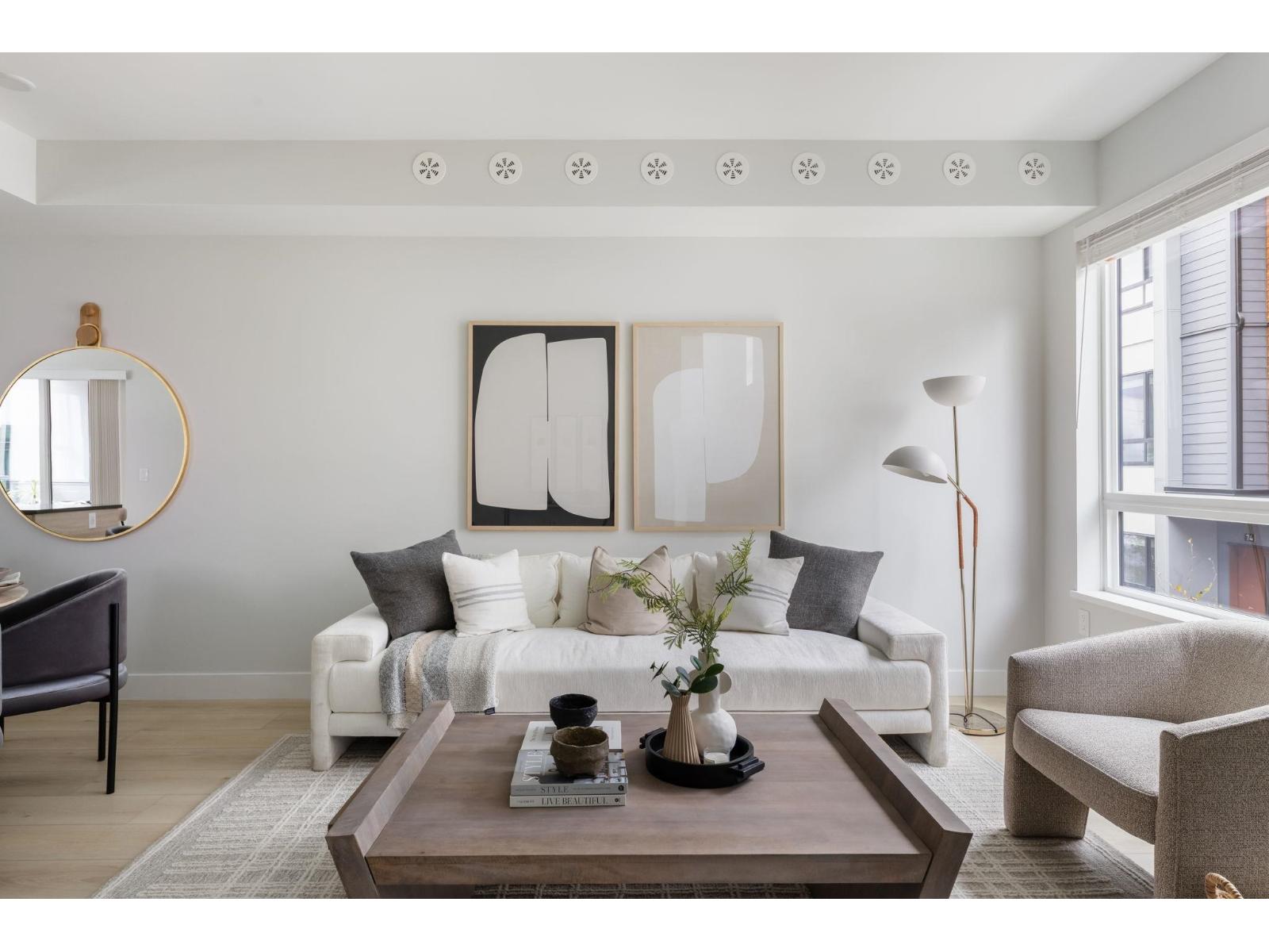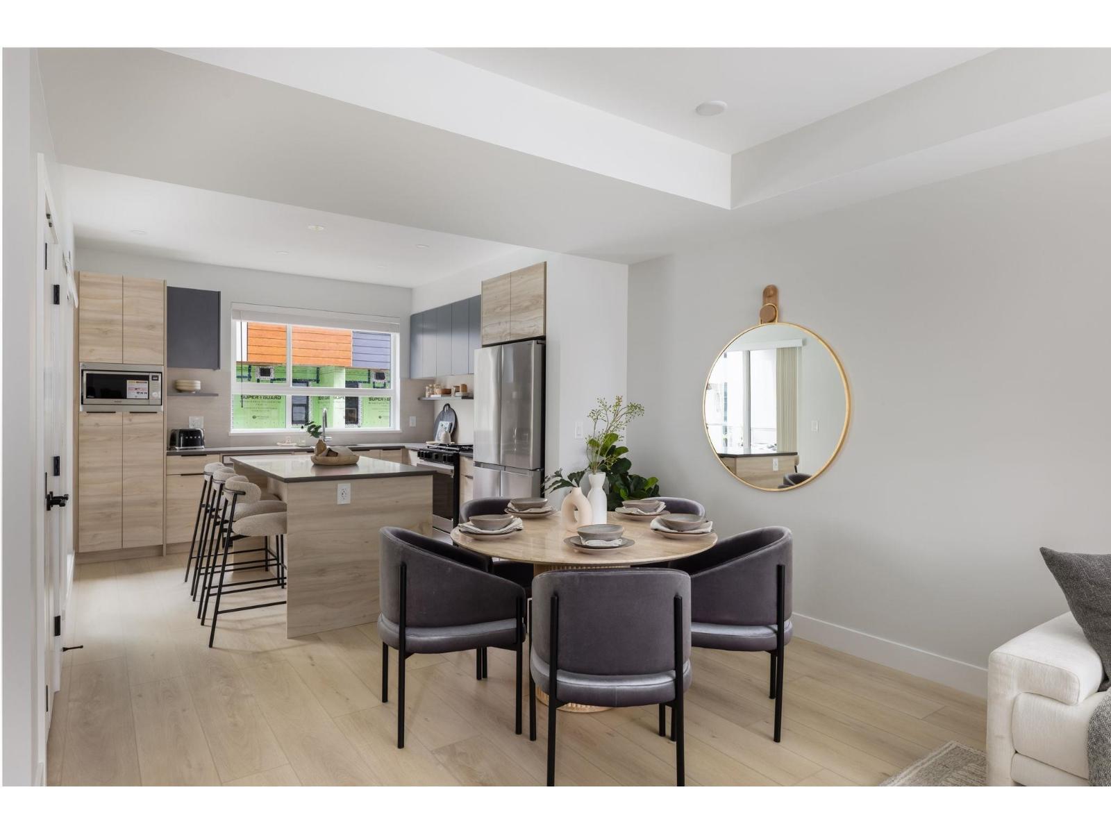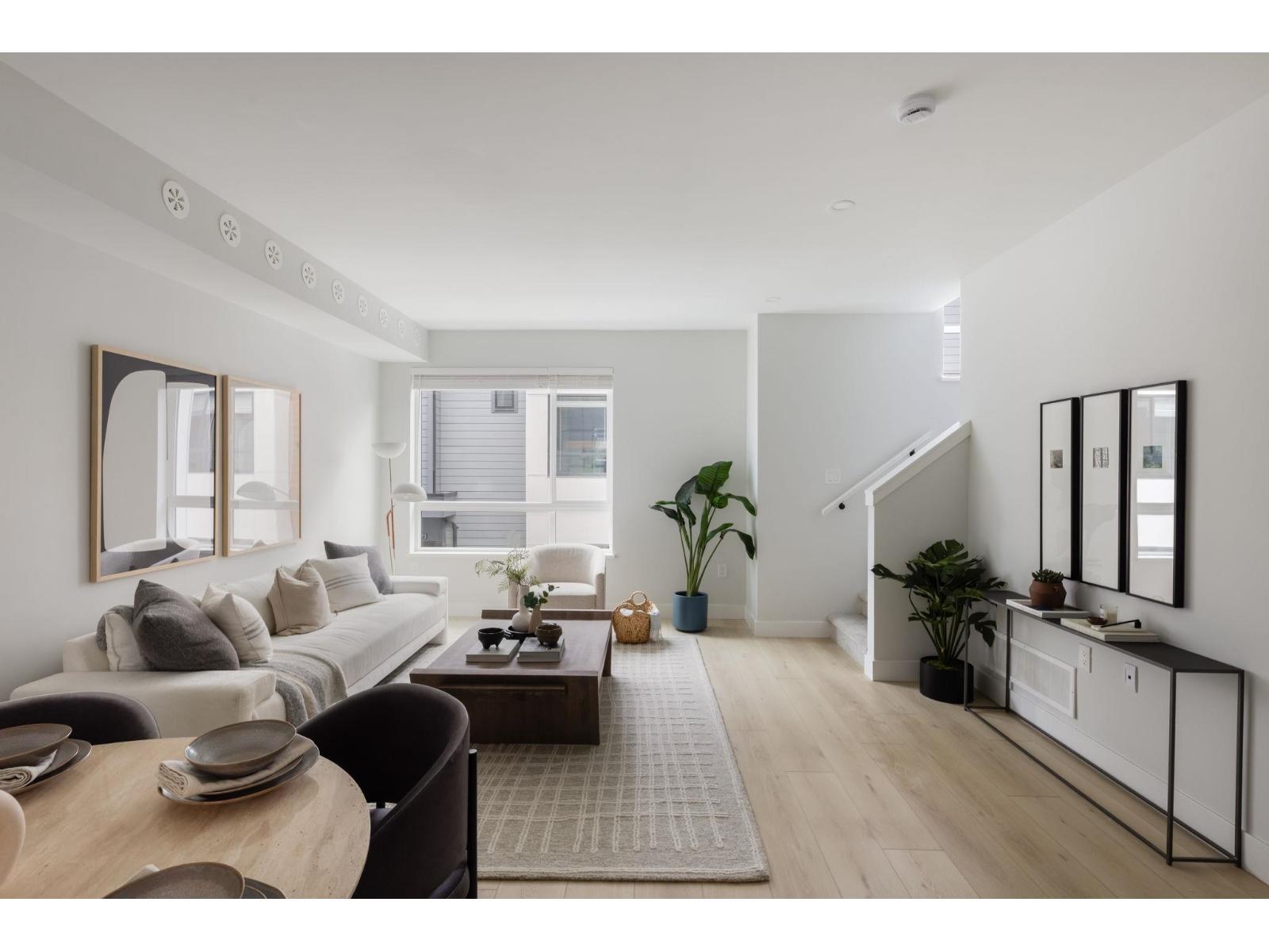 Welcome to Highstreet Village. this stunning 1,429 sq.ft townhome offers 3 bedrooms + flex space in a vibrant 12-acre community. Featuring 9' ceilings, durable vinyl plank flooring, and sleek roller shades, this home is designed for comfort and style. The modern kitchen boasts quartz countertops, two-tone cabinetry, and premium stainless steel appliances. A spacious primary suite includes a walk-in closet and spa-like ensuite with a frameless glass shower. Enjoy a private patio, attached garage, and top-tier amenities like a gym, rooftop terrace, and play area. Steps from Highstreet Shopping Centre, Hwy 1 and Abbotsford Airport. Presentation Centre Open Sat/Sun 12-5 PM (id:64528)