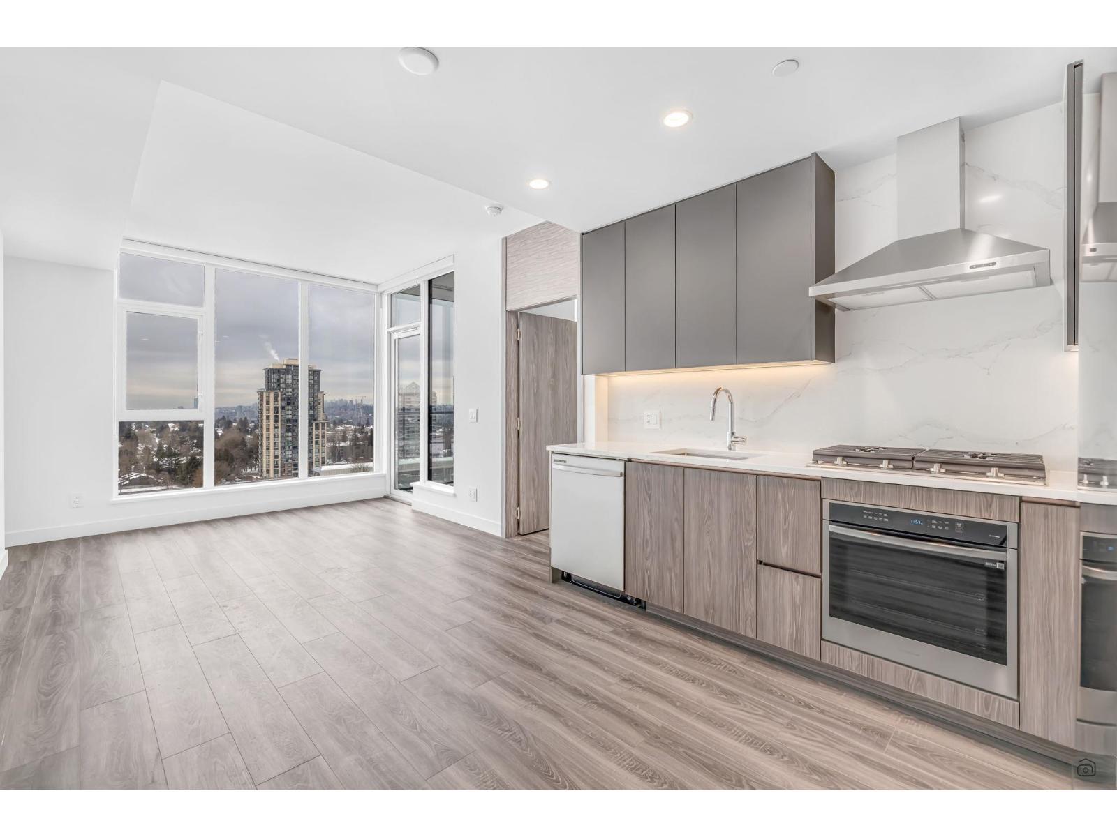 Welcome to The Grand on King George. This beautiful 2-bedroom, open-concept home offers a bright and spacious living area with a terrace showcasing stunning mountain, city, and valley views. Located just a 4-minute walk to Gateway SkyTrain Station, it provides easy access to downtown Vancouver and across Metro Vancouver. Residents enjoy over 23,000 sq. ft. of indoor and outdoor amenities, including a modern fitness center, social lounges, and landscaped outdoor spaces. The unit features air conditioning, a gas cooktop, and full-size stainless steel Samsung appliances. With 24-hour concierge service, The Grand offers comfortable and stylish living in Surrey. Don't miss this great opportunity. (id:64528)