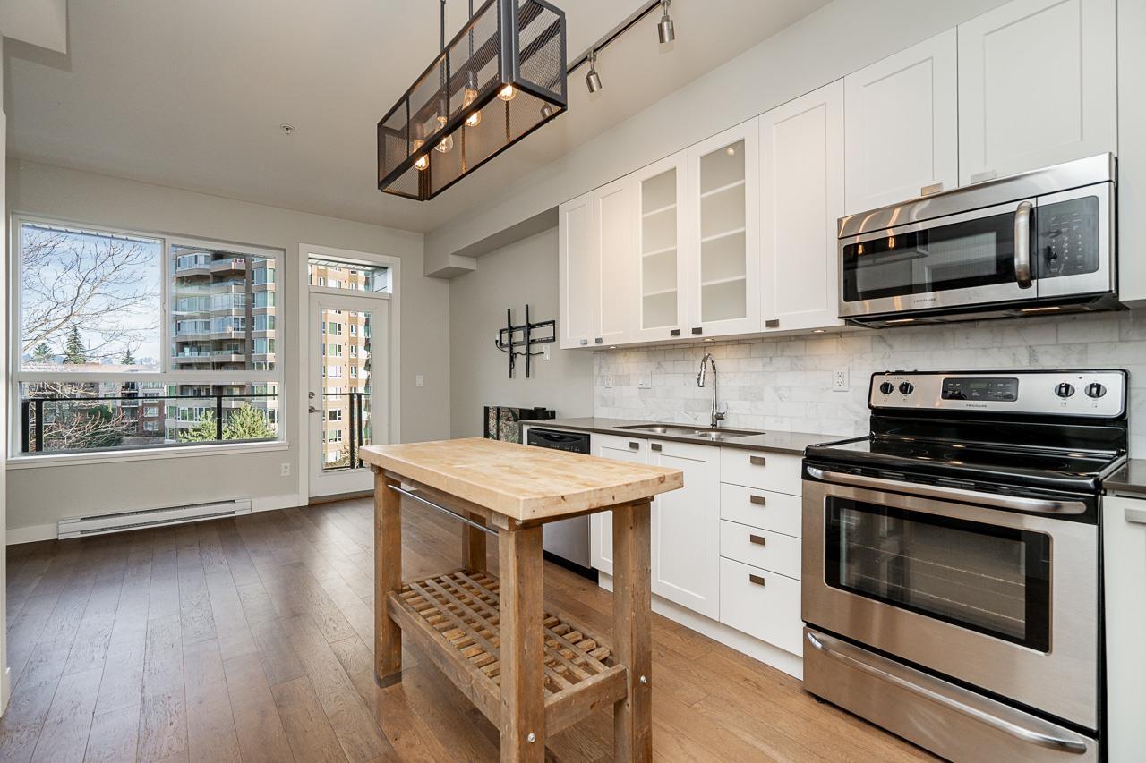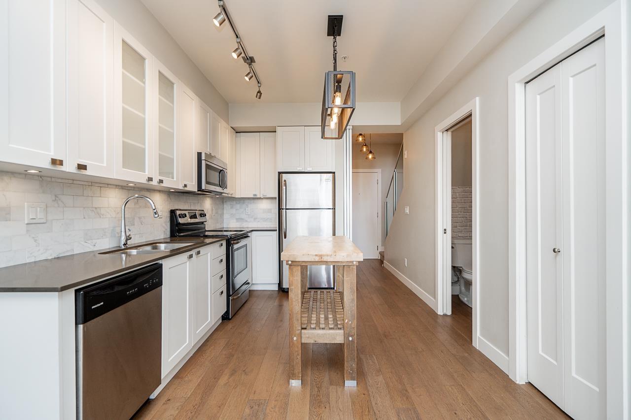 EVERYDAY CONVENIENCE AT YOUR FINGER TIPS! This stunning 2-storey, 1 Bedroom and Den Penthouse style condo, is centrally located, in a PET FRIENDLY building with easy access to all amenities. The main floor offers an open kitchen and living area leading out to a private patio, and a Den for a work-from-home office space. The upper level features a private bedroom, full bathroom, and a large roof top patio, and stunning views of the mountains. Stepping outside you will enjoy Abbotsford favourite's, After Thoughts, Sushi Nara, and Trading Post Brewing. Includes 1 Parking, 1 Storage Locker, and 2 Pets allowed. Welcome to Hudson's Loft! This one is not to be missed! Book your private showing today! (id:64528)