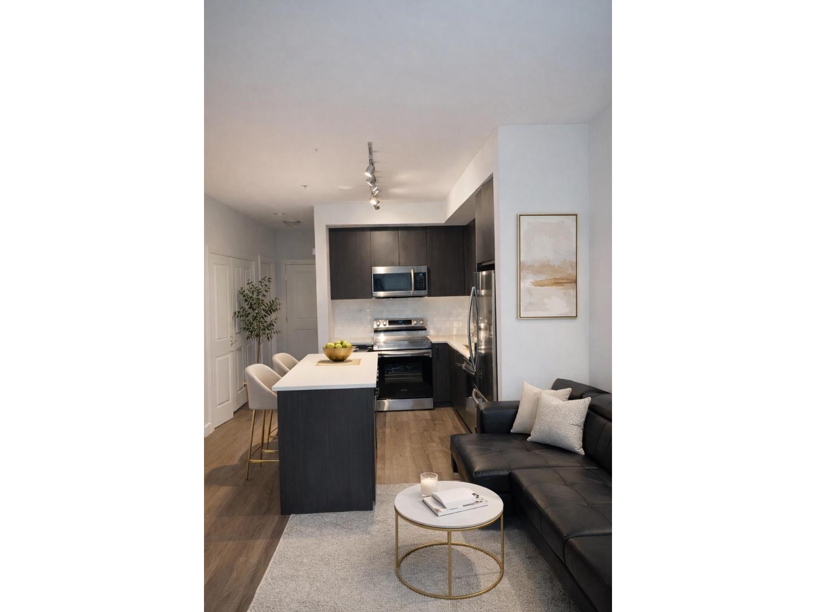 Located in the vibrant Bear Creek neighbourhood, Kings Landing II by Dawson + Sawyer presents this 1 Bed + Den home with a smart layout, open-concept kitchen with stainless steel appliances, spacious bedroom with walk-through closet and full bath, plus a versatile den that can fit a double bed or be used as a home office or guests. Enjoy in-suite laundry, 1 parking stall, and resort-style amenities including gym, lounge, study room, bike storage, social kitchen, and kids' play area. Transit at your doorstep and close to parks, shopping, Central City Mall, and SkyTrain. Open house on Saturday, Feb 21 at 2pm to 4pm. (id:64528)