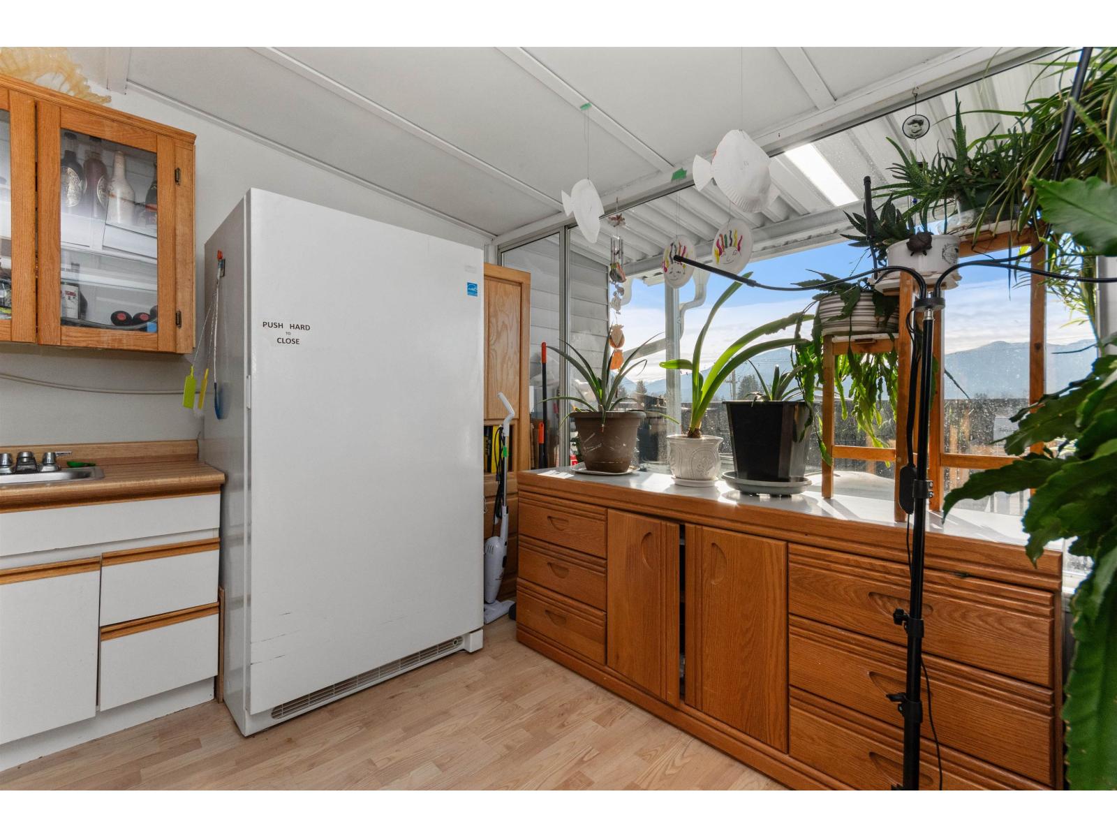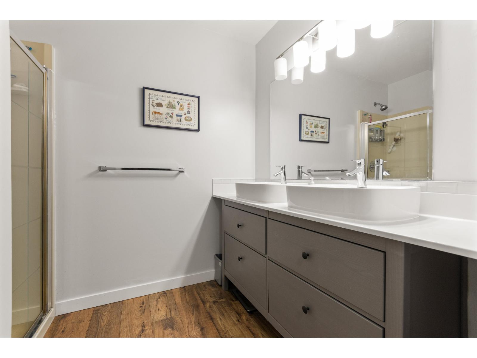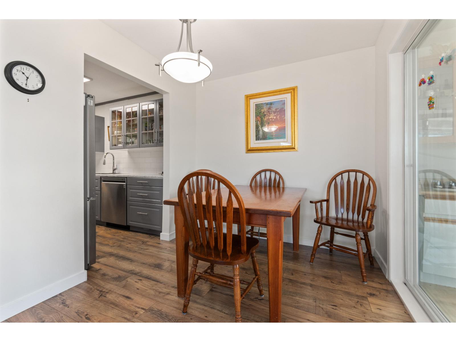 Welcome to 'HAZELDENE", a small 21 unit, well run strata. Spacious & BRIGHT 1240 sq ft., 2 bed/2 full bath TOP FLOOR CORNER unit. Lots of outdoor living space w/MOUNTAIN views from MASSIVE north & south facing covered BALCONIES. Living rm features cozy, updated gas fireplace, corner windows. Dining rm w/walkout to covered SOLARIUM w/wet bar. Huge PRIMARY boasts walk-in closet & 4pc ensuite w/dual sinks, sep shower. 2nd bdrm is also a generous size. Lots of updates incl. paint, kitchen w/newer SS appliances, carpet. Heat pump (AC/heat), hot water tank & gas FP 2022; waterproof wide-plank laminate 2025. Lots of storage. 1 covered parking, extra pkg subj to avail. All AGES & RENTALS welcome. NO PETS. Great location close to DISTRICT 1881. Perfect for 1st-time buyers, downsizers. (id:64528)