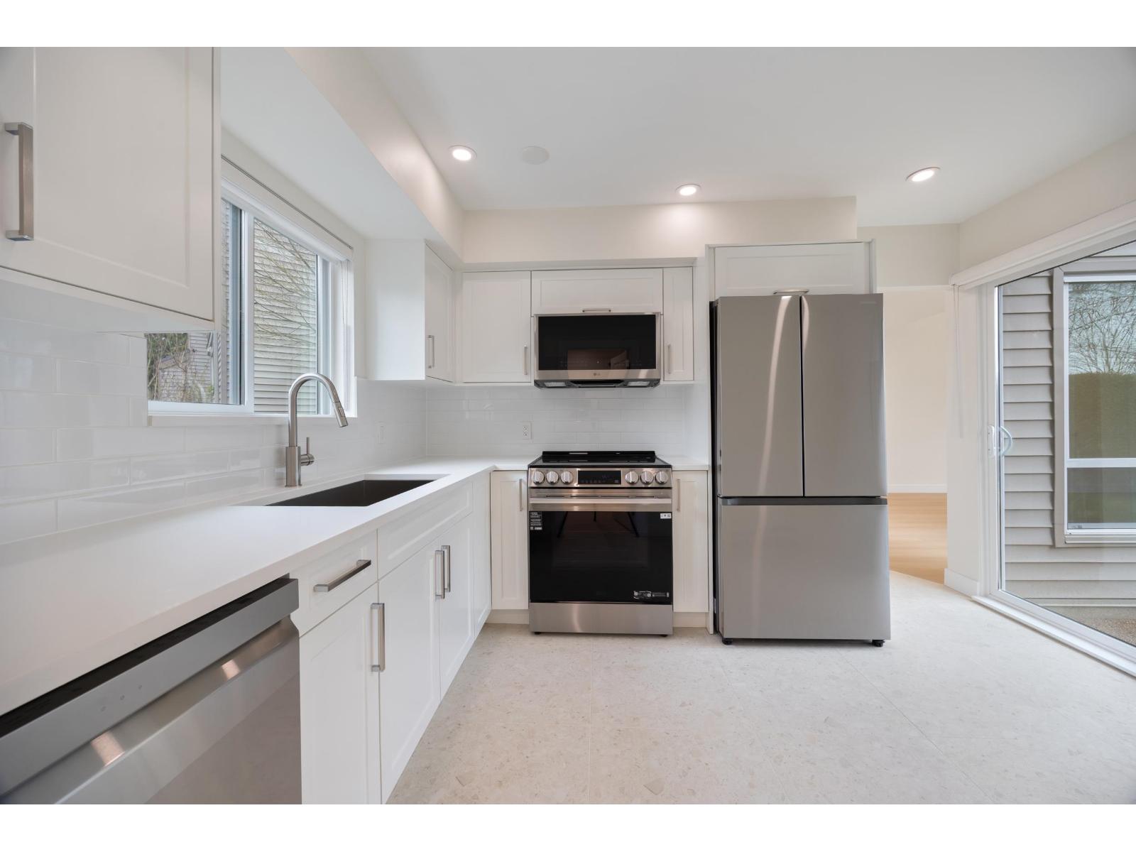 Welcome to Greenside Estates. This beautifully updated two level home offers 1,084 sq ft of white, modern living & clean and timeless design. Completely renovated, features fresh paint, new lighting, laminate flooring and tile, plus fully updated kitchen/bathroom. Enjoy new stainless steel appliances with extended warranty, a massive laundry room with new washer and dryer, updated doors, roller blinds, and custom closet organizers. Strata updated windows add peace of mind, while the large private outdoor patio off the living room is perfect for relaxing or entertaining. Ideal for first time buyers, located near Willoughby Shopping Centre, transit, and the future SkyTrain. School catchment: Latimer Road Elem. and Clayton Heights Sec. *Note: Video contains virtual staging. Open House: Sunday, February 22, 3-5pm. (id:64528)