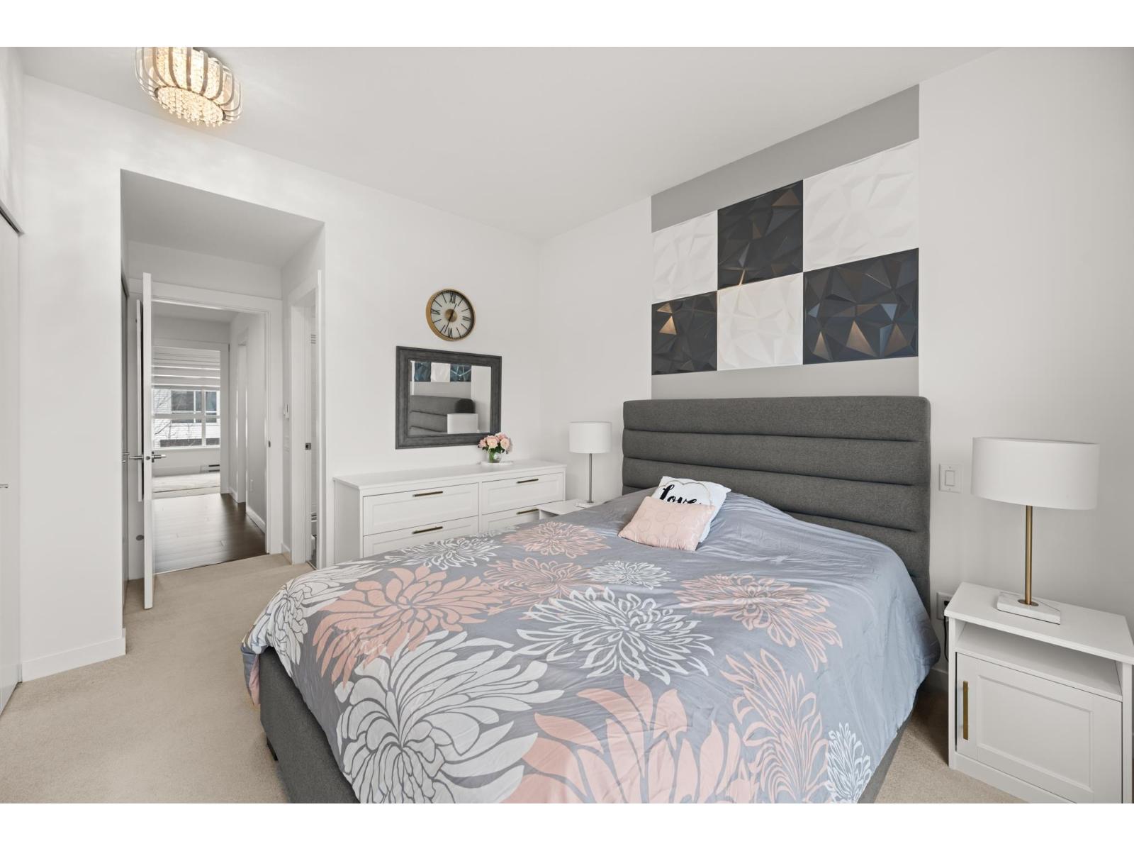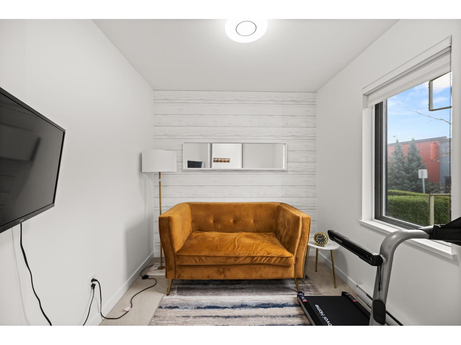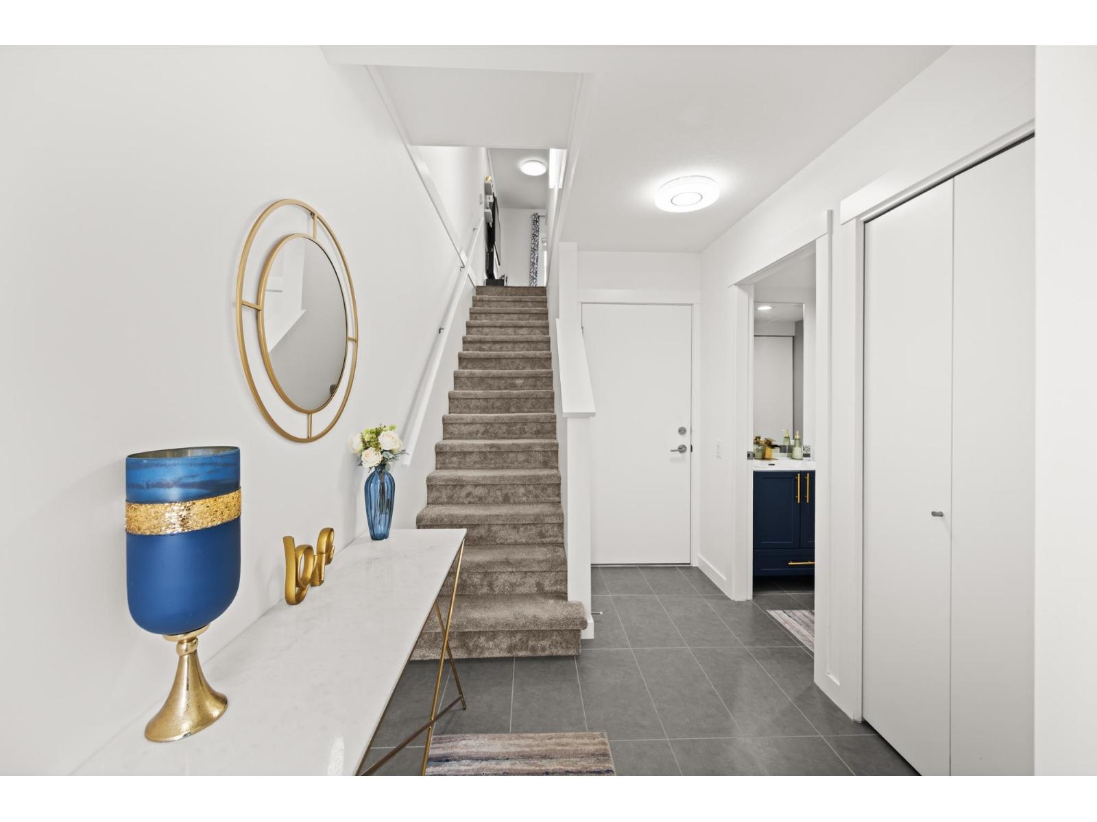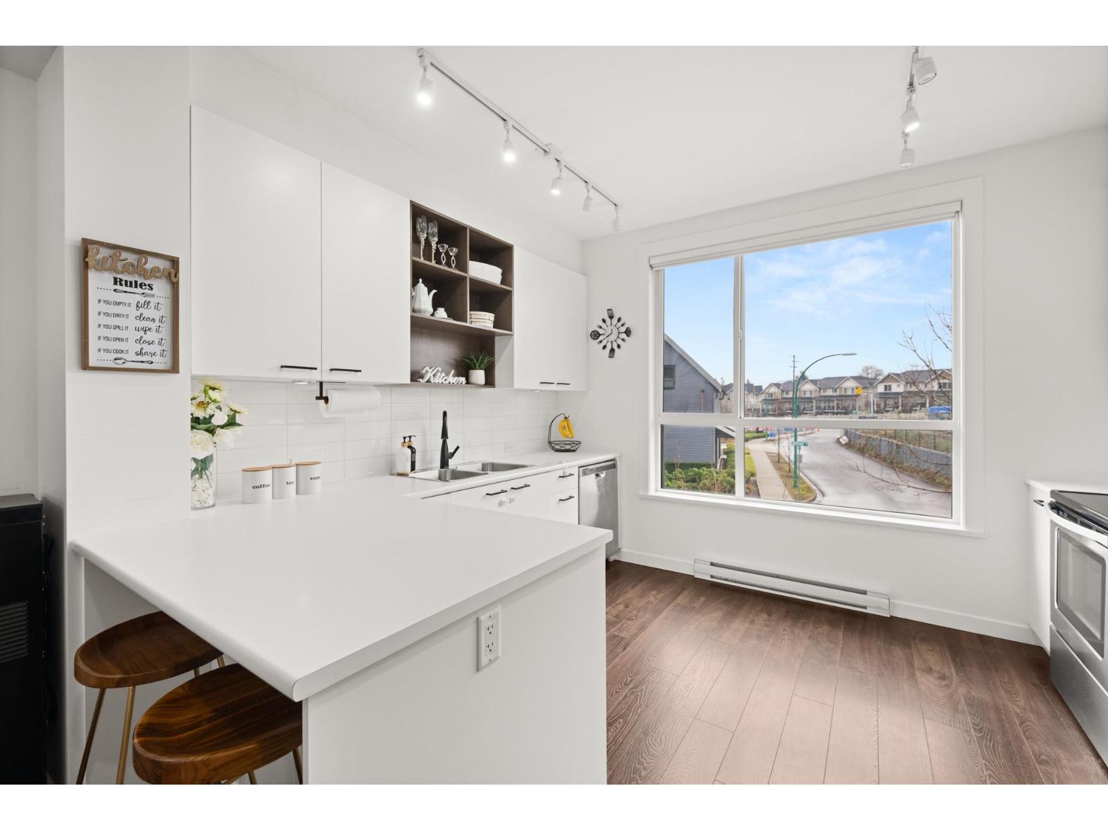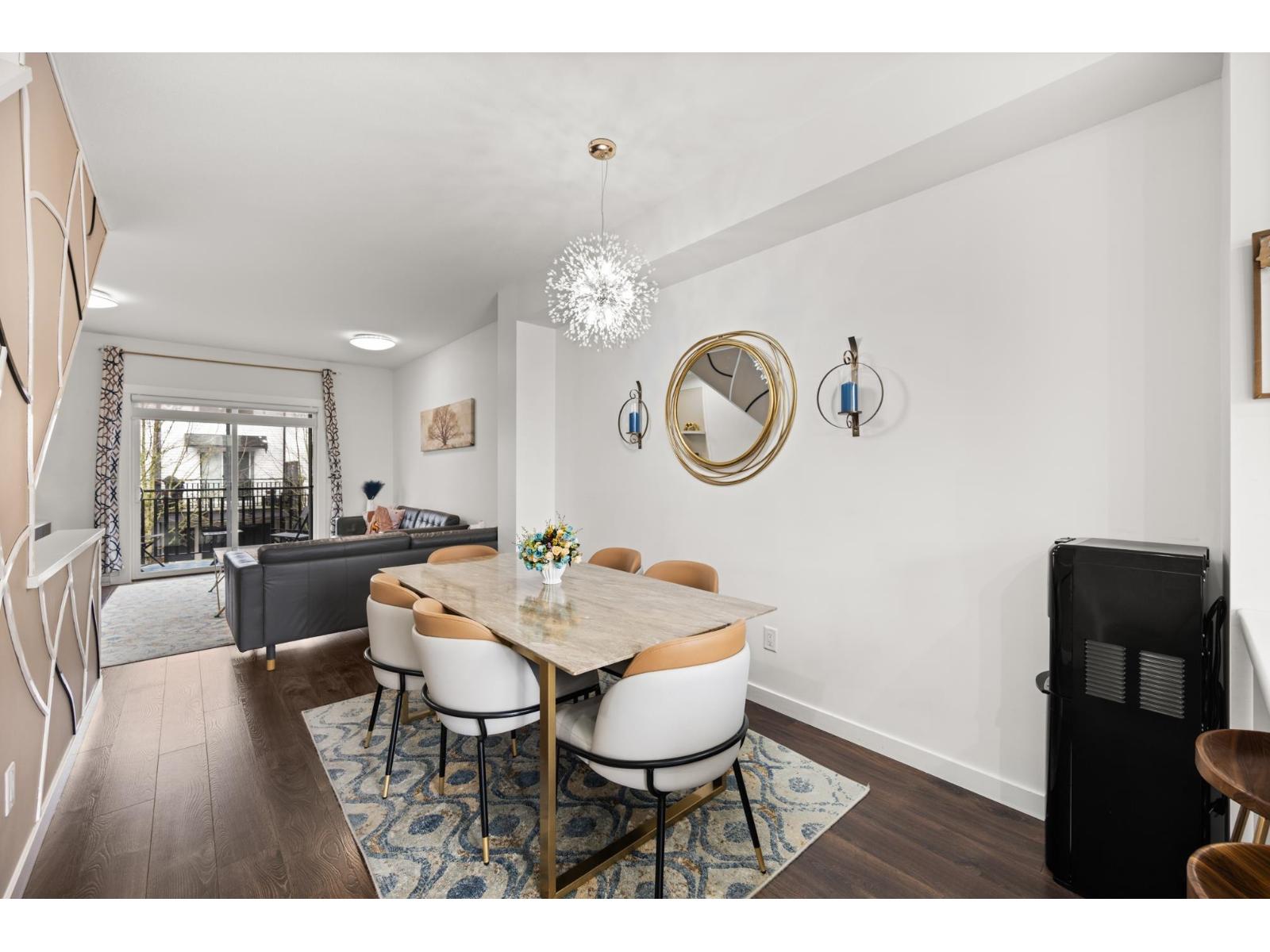 Welcome to this beautifully cared-for, southwest-facing Mosaic home, offering modern design & elegant finishes throughout. This 2-bedroom plus den layout is thoughtfully designed w/open-concept main-floor living, a convenient powder room on the entry level next to den (home office), and two spacious bedrooms with full baths upstairs. Enjoy sunset views from the gourmet kitchen w/ breakfast bar, ample counter space, & room to entertain. Earth-toned wide-plank laminate flooring enhances the bright living area while the stunning open-riser floating staircase makes a statement. Oversized windows flood the home with natural light. Ideally located steps from Clayton Market Retail Village, major amenities, restaurants, Willowbrook Mall, and transit. Parking for 2, garage & driveway. (id:64528)