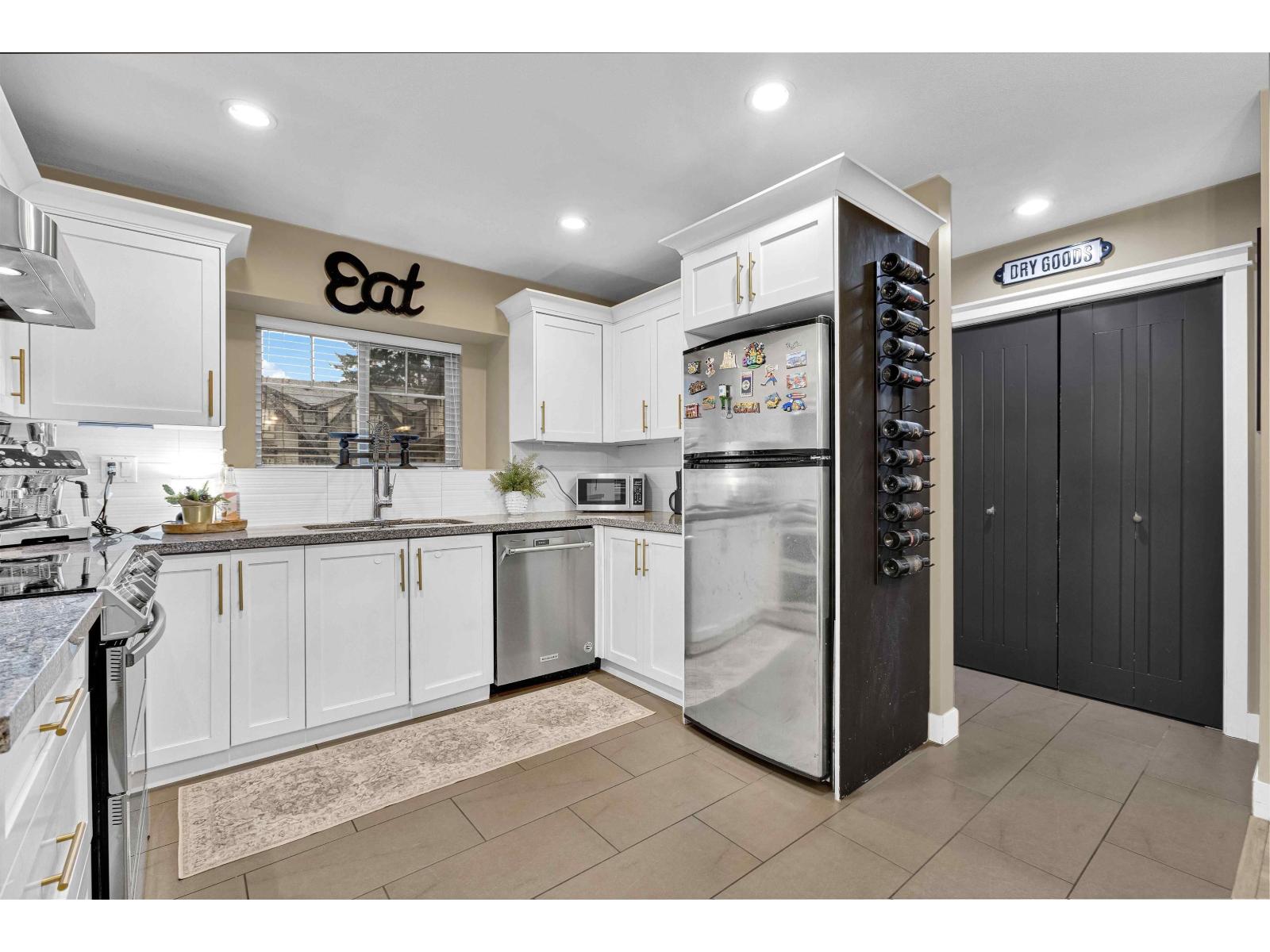 Renovated CORNER UNIT in a PRIME NEWTON location at Crafton Hill. This MOVE-IN READY home shows like a SHOW HOME with NEW FLOORING, MODERN APPLIANCES and a RENOVATED KITCHEN featuring QUARTZ COUNTERTOPS and BONUS PANTRY. The main floor offers a convenient POWDER ROOM and bright living space. Upstairs features a SPACIOUS PRIMARY BEDROOM w/ 4 pce ENSUITE & ample closet space, plus 2 additional generous bedrooms and a full bathroom-ideal for families or guests. Enjoy a sunny SOUTH-FACING YARD & PATIO perfect for entertaining. GREAT LOCATION: Transit at your doorstep & close to KPU, Princess Margaret Sec, WE Kinvig Elem, Unwin Park, Newton Athletic Park, Fruiticana, Shopping & More! A standout home offering SPACE, STYLE and VALUE. QUICK POSSESSION! (id:64528)