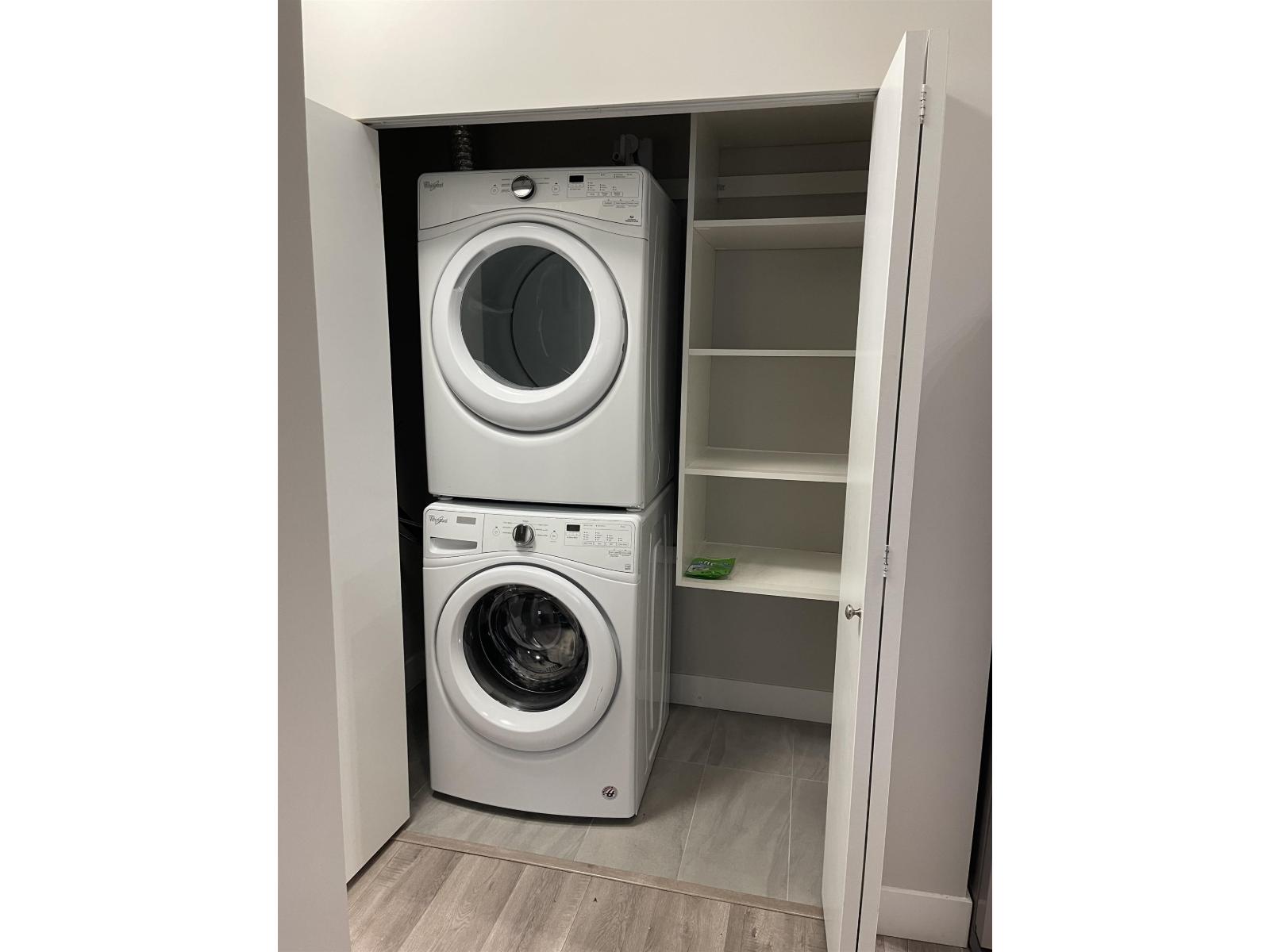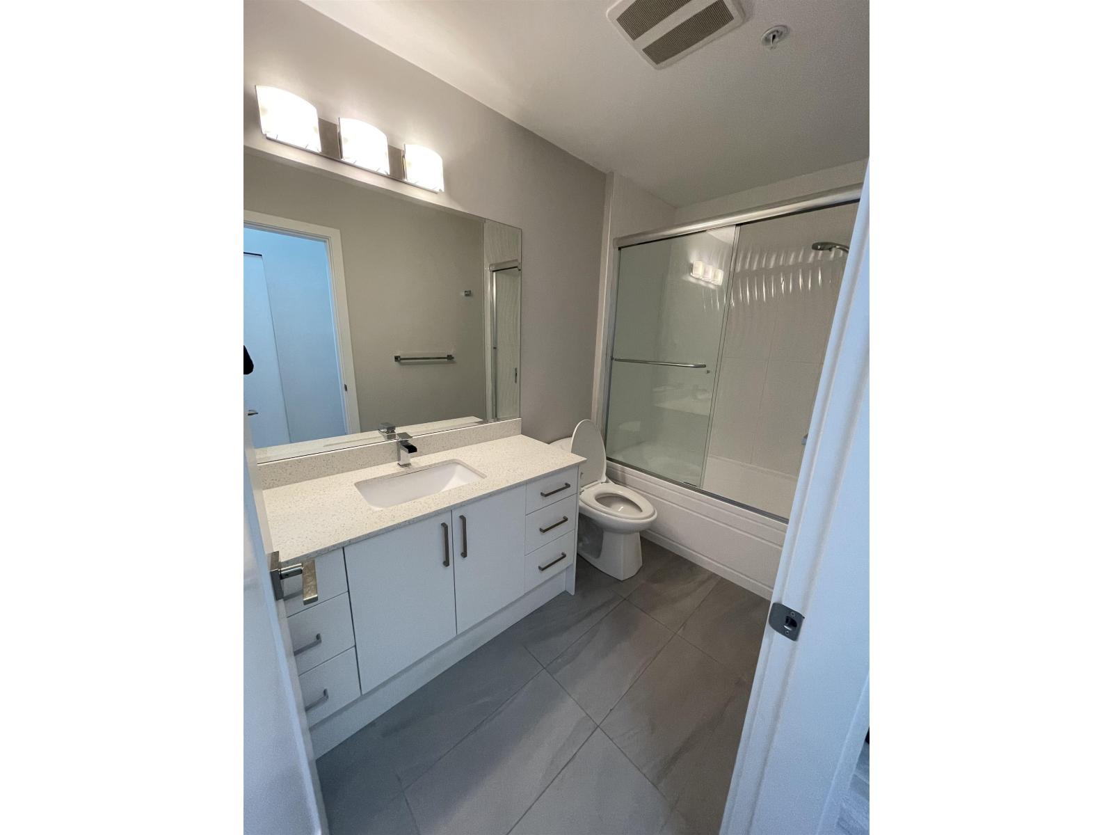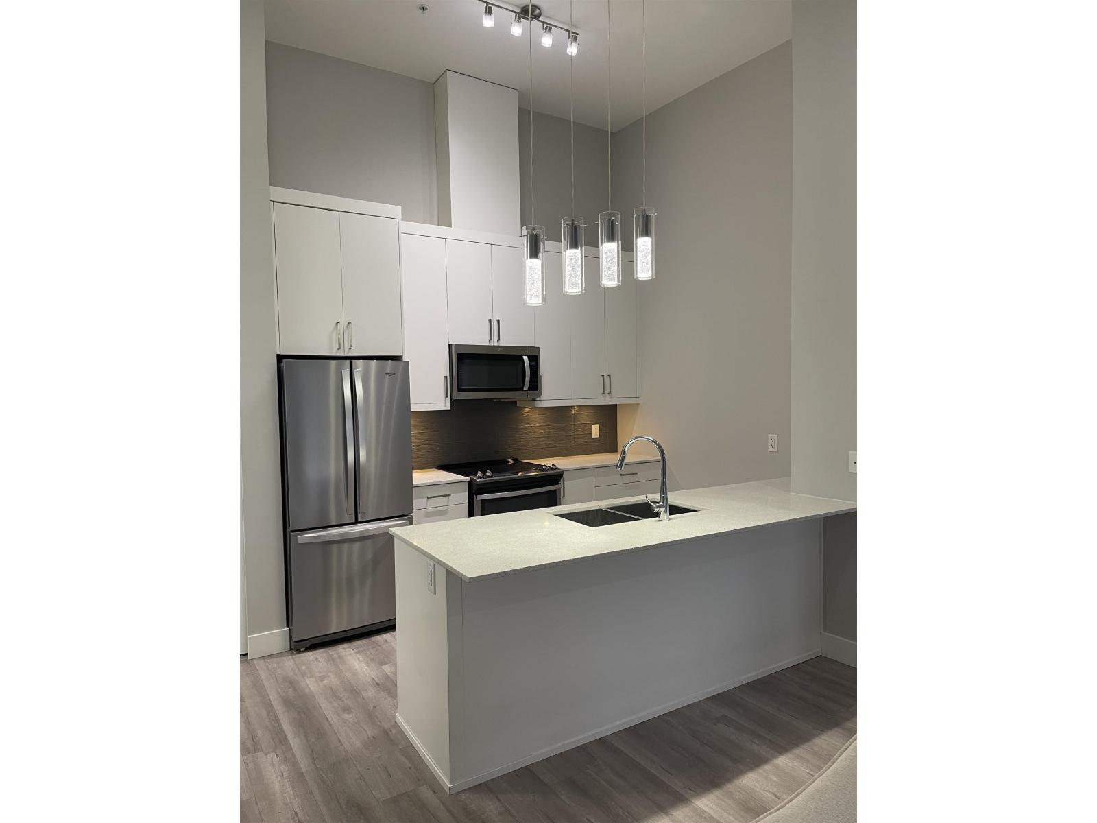 Welcome to THE MUSE! This bright upper-floor, north-west facing 2-bedroomt 2-bath home offers a spacious open-concept layout, 9-foot ceilings, and expansive windows that fill the space with natural light. The modem kitchen features quartz countertops, Whirlpool stainless steel appliances, glass backsplash, and soft-close flat-slab cabinetry. Interior highlights include laminate flooring, modern lighting, and shaker-style doors. Enjoy two balconies with city views. This well-maintained concrete building offers a fitness centre, social lounge, and rooftop patio, all in a central Scott Road location steps to shopping, transit, parks, and SkyTrain access, Includes 1 parking and 1 storage. (id:64528)