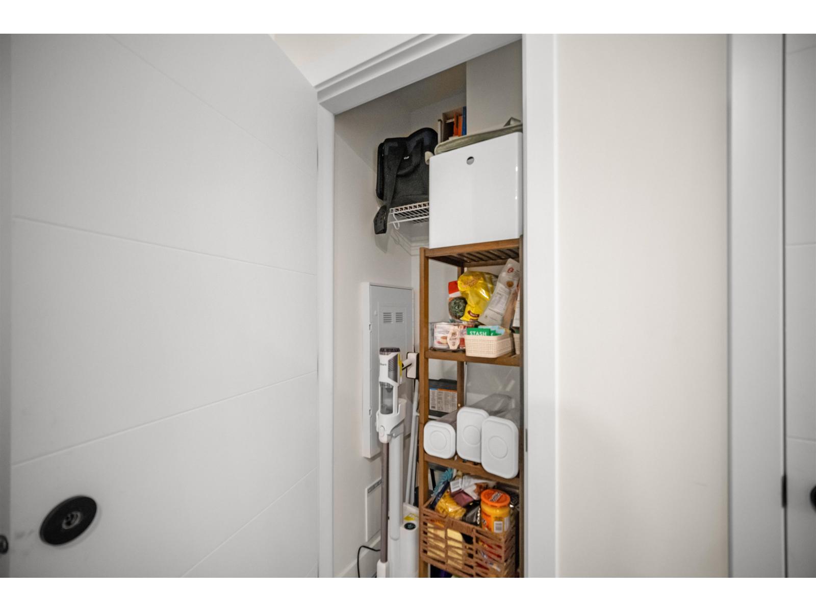 Welcome to this spacious and well-maintained 1 bedroom + den home at the Hendrix. This unit offers a functional open layout with plenty of natural light and has been exceptionally cared for. Thoughtful upgrades include a custom shower glass door and upgraded closet storage. Enjoy the convenience of a dedicated laundry room with built-in shelving and ample in-suite storage throughout. The large den is versatile and can easily be used as a nursery, home office, flex space, or second bedroom setup. Residents enjoy excellent amenities including a party room, lounge and dining area that extends to the outdoor courtyard, work station, BBQ area, children's play space, and a fully equipped gym. Includes 1 parking stall and 1 storage locker. OPEN HOUSE FEB 21 and FEB 22 2-4 both days (id:64528)