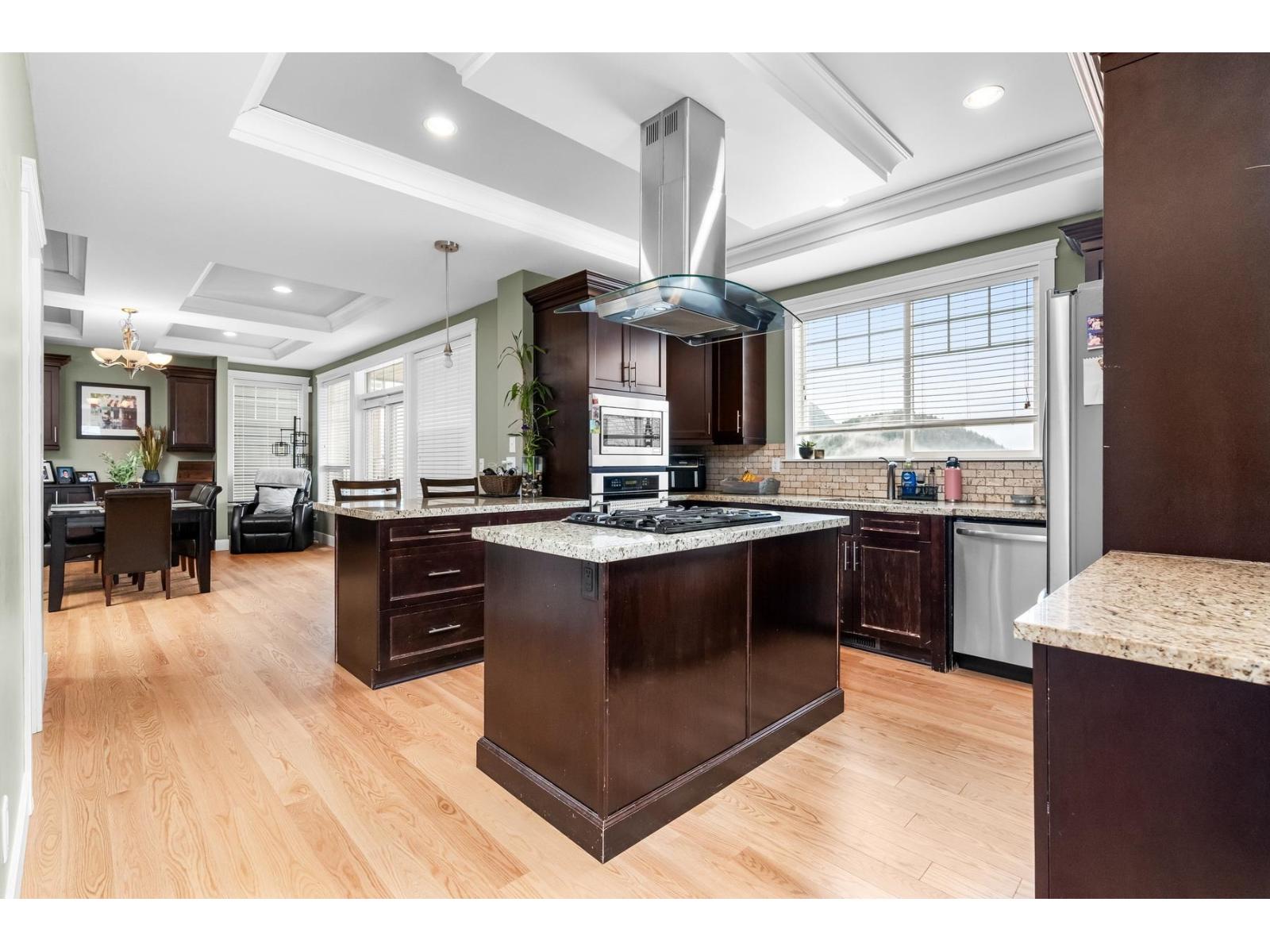 Welcome to this breathtaking property nestled in the desirable Promontory area of Chilliwack-Sardis. This corner-located home,positioned high above the Vedder River,offers stunning views stretching from Cultus Lake to the surrounding mountains and valley.The spacious living areas feature 20'vaulted ceilings flooded with natural light,a modern kitchen,and a large island perfect for entertaining.This home boasts three generously sized bedrooms,with the master suite conveniently located on the main levels.Additionally,a fully renovated 2-bedroom suite with a separate entrance at 1,248 SF provides an excellent mortgage helper.The property includes a double garage and extra parking in front for convenience.Recent upgrades include AC, new furnace, main-level flooring,Dryer/Washer. (id:64528)