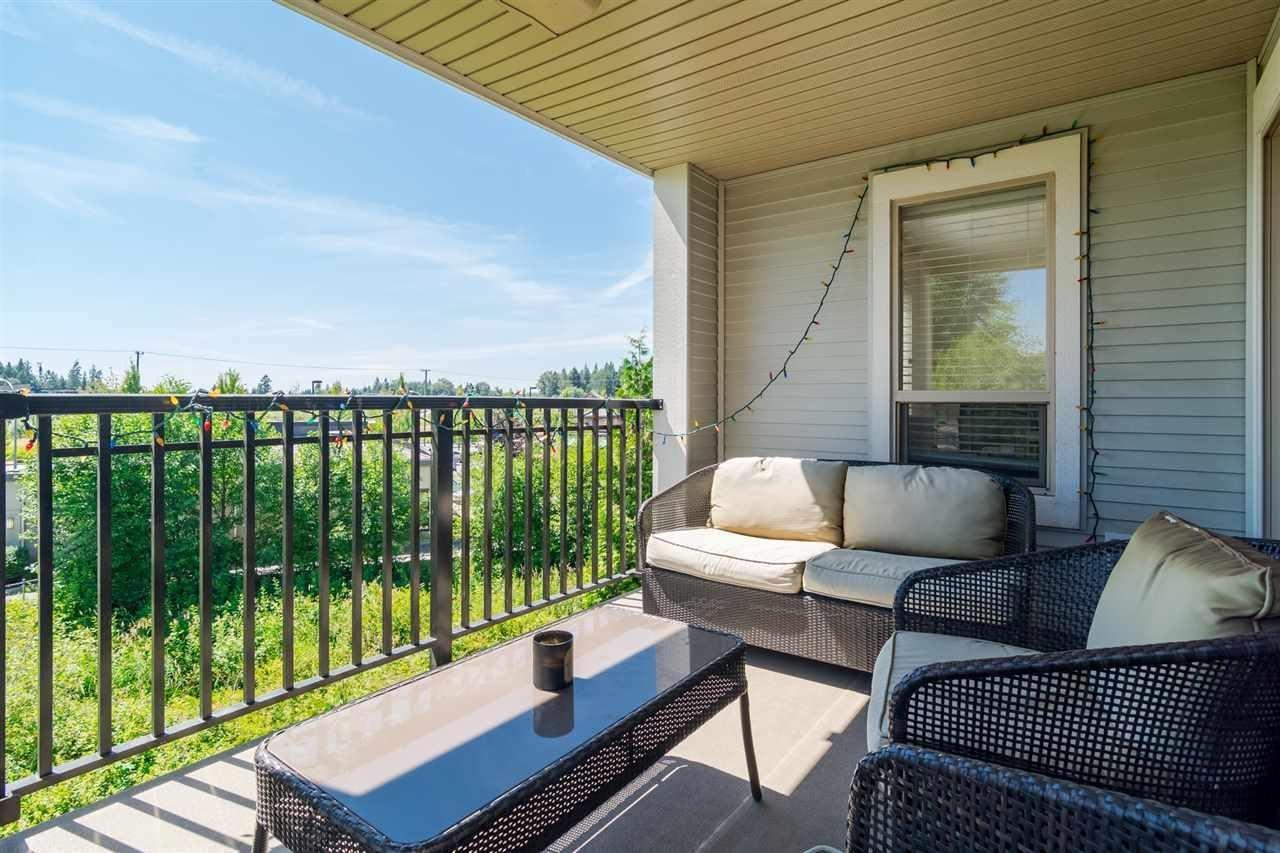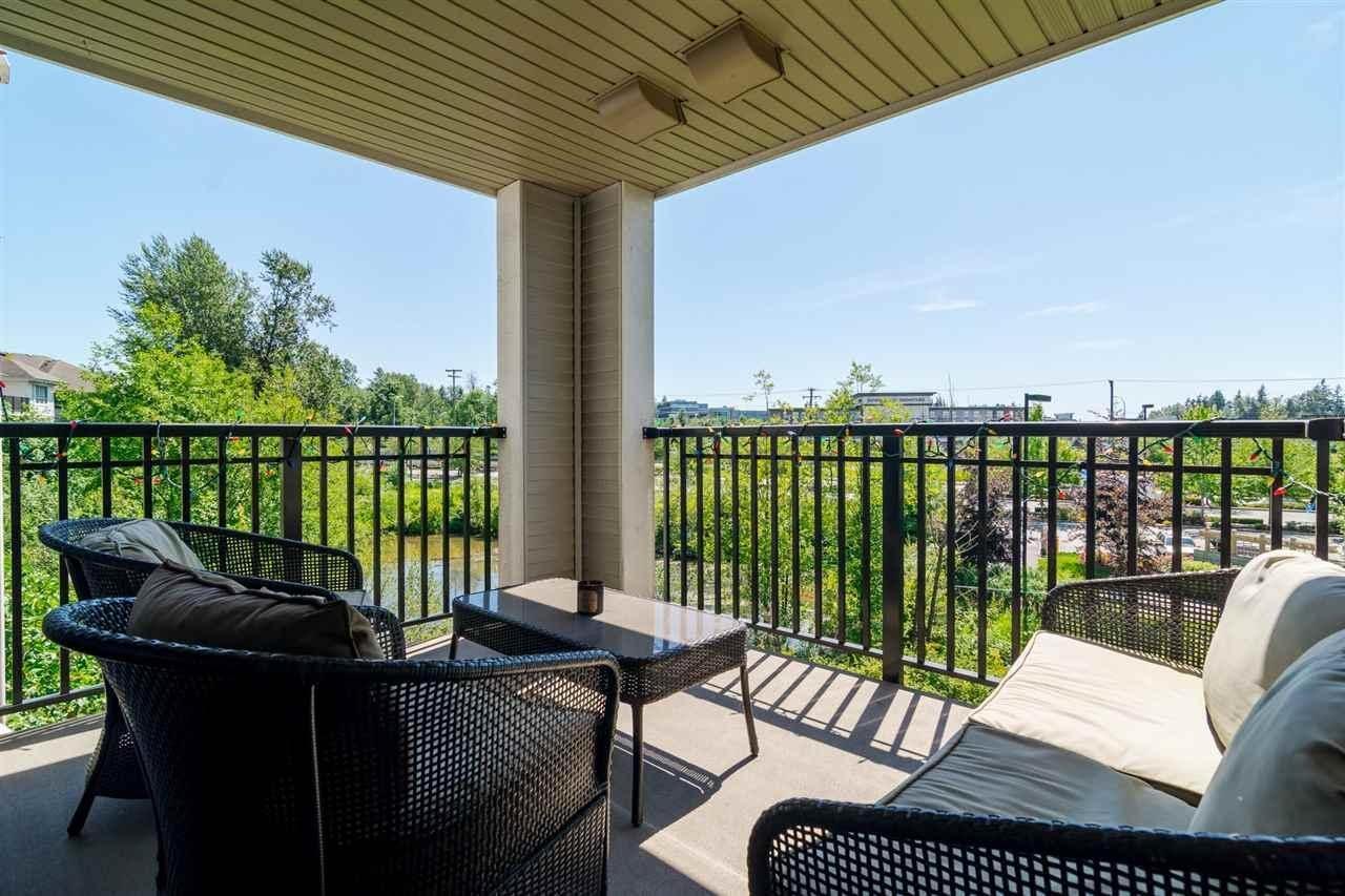 Bright and spacious CORNER UNIT in The Grove! Enjoy greenbelt, pond and cityscape views with no direct sightlines into neighbouring buildings. This 832 sqft condo offers 2 beds/ 2baths and an amazing open layout with bedrooms on opposite sides, plus a 103 sqft South/West facing deck to soak in the sunshine. Well maintained with granite kitchen counters, S/S appliances and plenty of natural light throughout. Includes a storage locker and 2 Side by Side underground parking stalls close to the entry. Walk to transit, shopping, parks, schools and quick access to Hwy 1. Exceptional value! (id:64528)