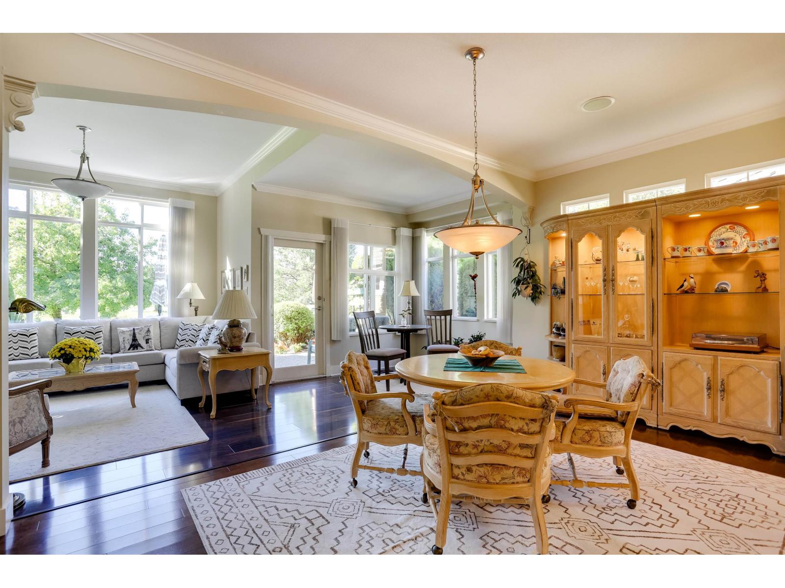 STUNNING VIEWS of the golf course overlooking the 18th green at Hazelmere! This beautiful Duplex Style Rancher Townhome features a double garage, a fully finished basement and THE BEST LOCATION within the gated and prestigious Hazelmere Village! The floor plan features the Primary Bedroom, Second Bedroom and a Den on the main floor. It also features vaulted ceilings and lots of natural light. Walk out onto the spacious South-Facing patio, overlooking a pond and the 18th green, where you can watch golfers finish their rounds while sipping your beverage of choice. The basement has been meticulously updated, featuring a huge rec room with a custom hand painted mural, an ornate wine room, and even a custom dance studio! You don't want to miss out on this rare opportunity! (id:64528)
