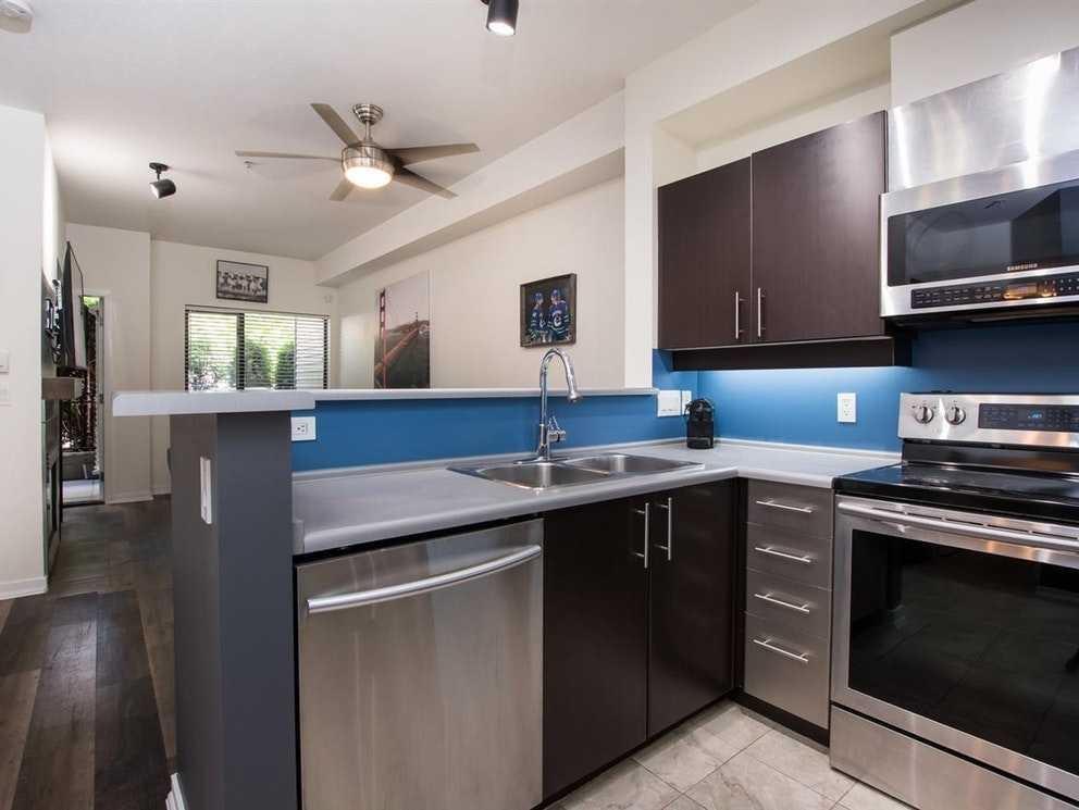 Fully Furnished 1 Bedroom Condo in Central Surrey - Move-In Ready Step into comfort and convenience with this beautifully furnished 1 bedroom condo located in the heart of Surrey. Thoughtfully designed and ready for immediate enjoyment, this home is ideal for professionals, students, or anyone seeking a stylish, low-maintenance living space. - Spacious Layout: Bright and comfortable one-bedroom floor plan with a private patio - Fully Furnished: Move in with ease. The unit comes fully furnished, offering a seamless transition into your new home. - Cozy Fireplace: Enjoy a warm and inviting living area featuring a charming fireplace for added comfort. - Fully Equipped Kitchen: Modern kitchen with all the essentials for cooking and entertaining. (id:64528)