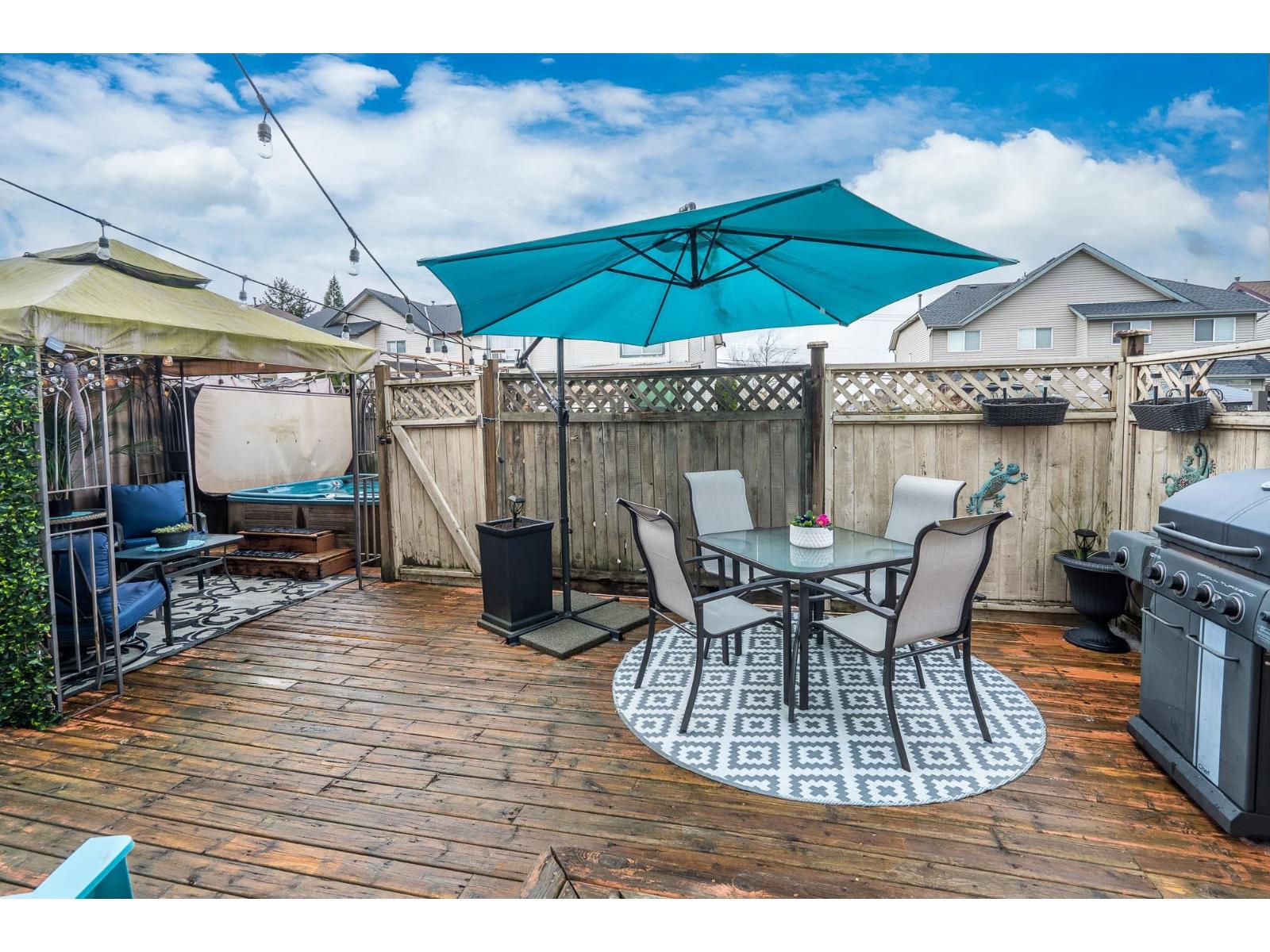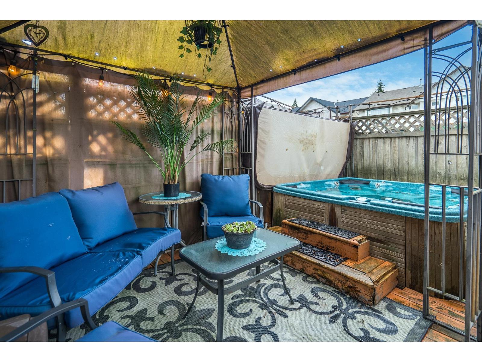 Beautifully updated home with wide plank vinyl flooring, custom millwork, wainscotting, baseboards, and trim. The open-concept main floor features a custom fireplace with designer surround and a bright white kitchen with island, mosaic tile backsplash, and stainless steel appliances. PEX plumbing (no Poly B), a newer roof, A/C, new lighting, fresh paint, and smooth ceilings with pot lights. Enjoy a large back deck with a hot tub, new landscaping rocks, turf, and a charming front porch for great curb appeal. Located across from a community park, perfect for kids, a 9 min. walk to the future skytrain station, and a 5 min walk to Hillcrest Elementary school. Rear lane parking with room to build a garage. (id:64528)