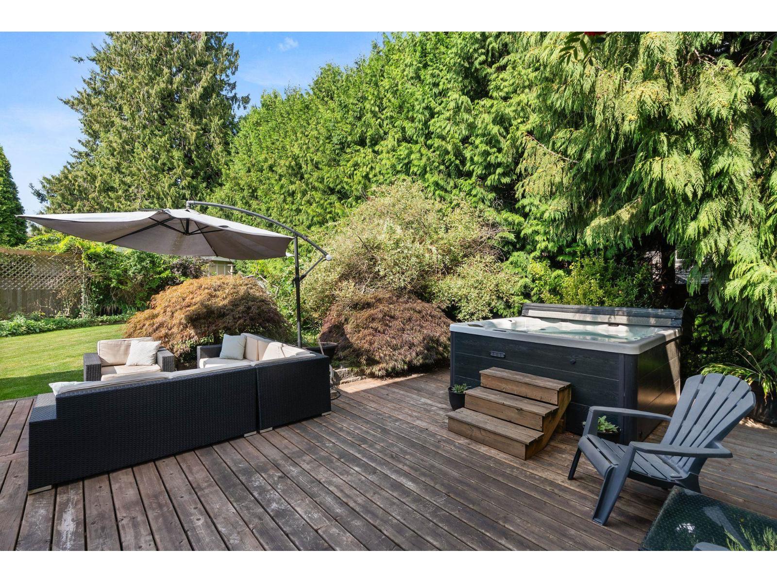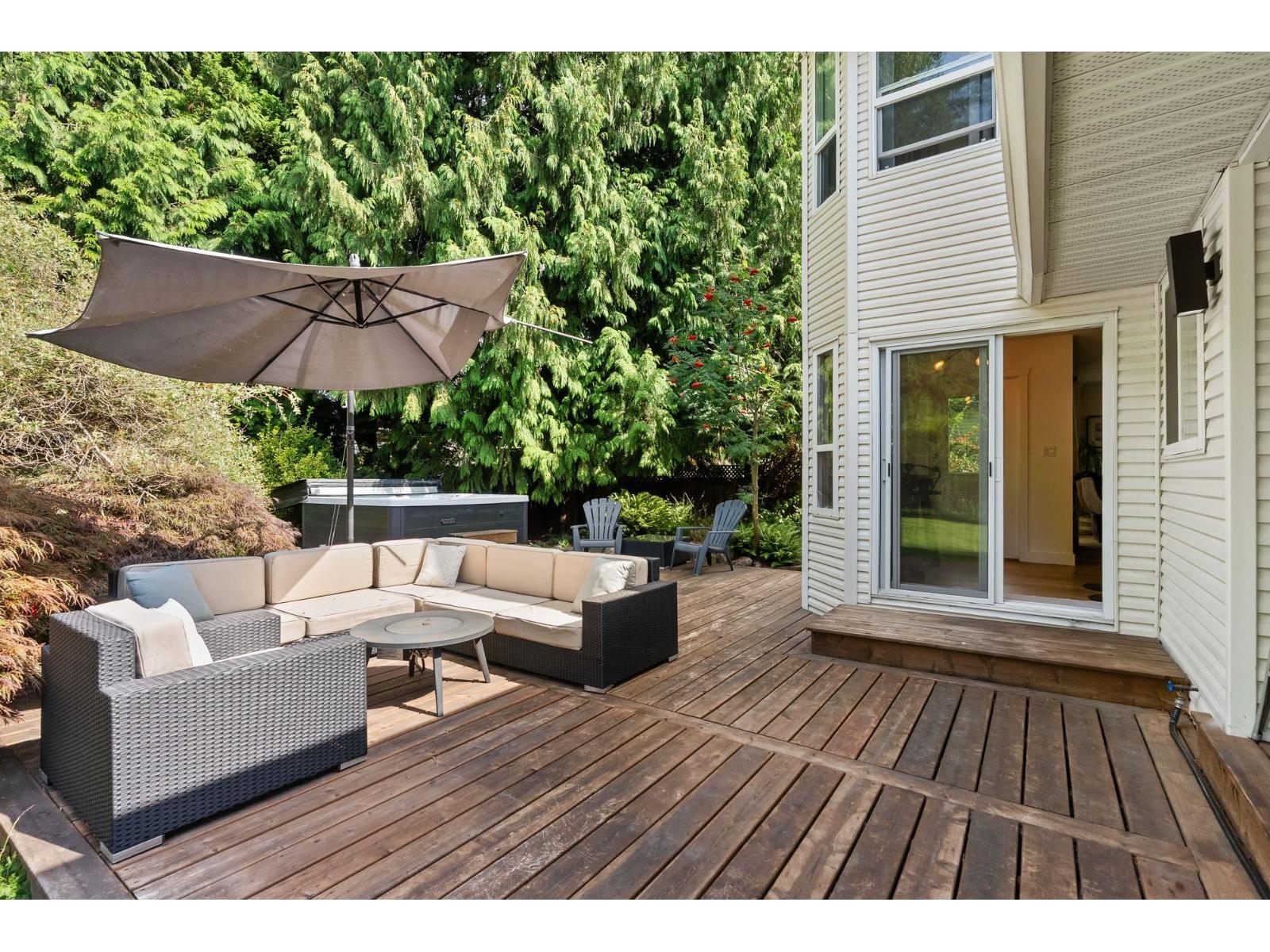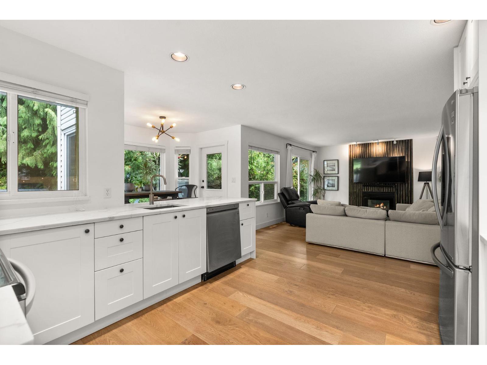 An impeccable, move-in-ready 5-bed, 3-bath GEM nestled on a secluded, sun-drenched lot that is almost 8,300 sf in a quiet cul-de-sac. Open-concept layout, elegant engineered hardwood flooring throughout, tons of oversized windows with a bedroom on the main floor, close to the powder room offering flexibility & versatility for any family's needs. The kitchen is sleek & modern with a sunny eating area that flows either way from one living area into the other. 2 gas fireplaces & 3 sliding glass doors that leads right out to your own private backyard oasis. An ideal setup for indoor-outdoor living. Sundeck, Hot Tub, mature landscaping, plenty of room to play. Upstairs is plush carpeting, the main bathroom, three bedrooms & the primary suite. OPEN HOUSE SAT & SUN FEB. 21st & 22nd 2pm-4pm. (id:64528)