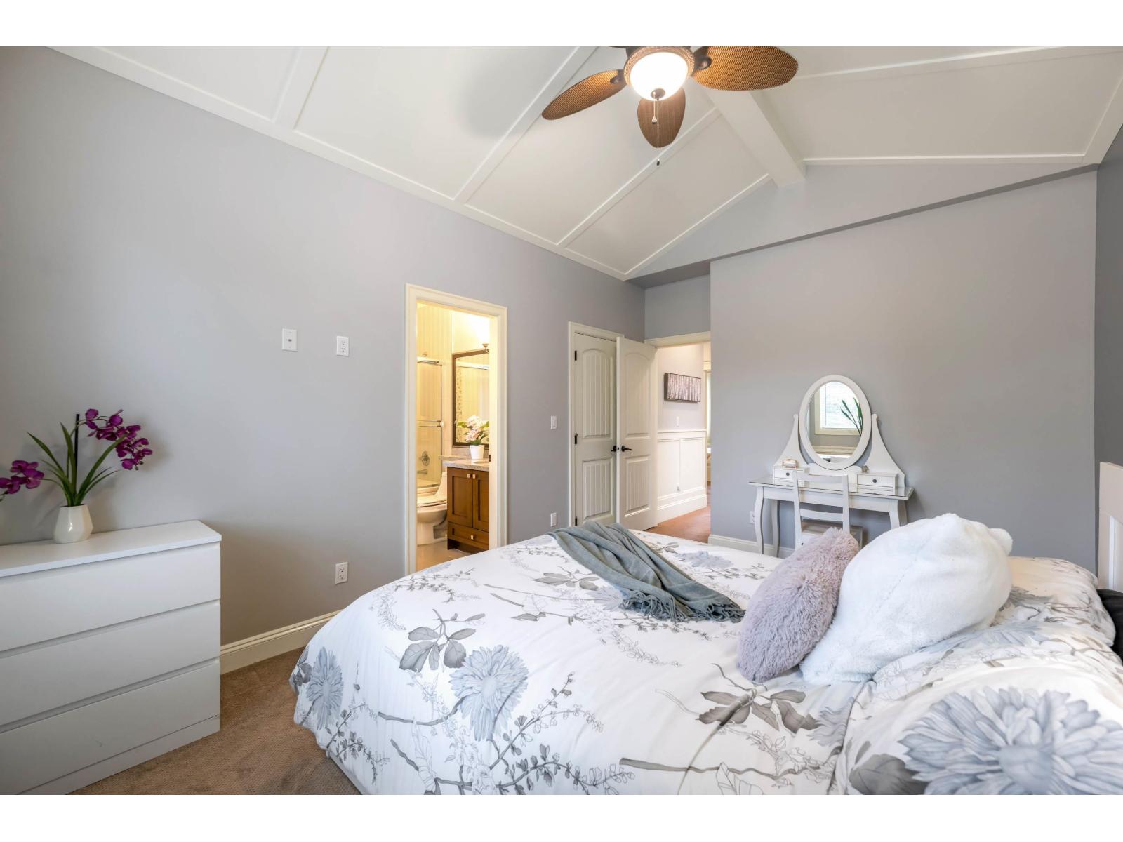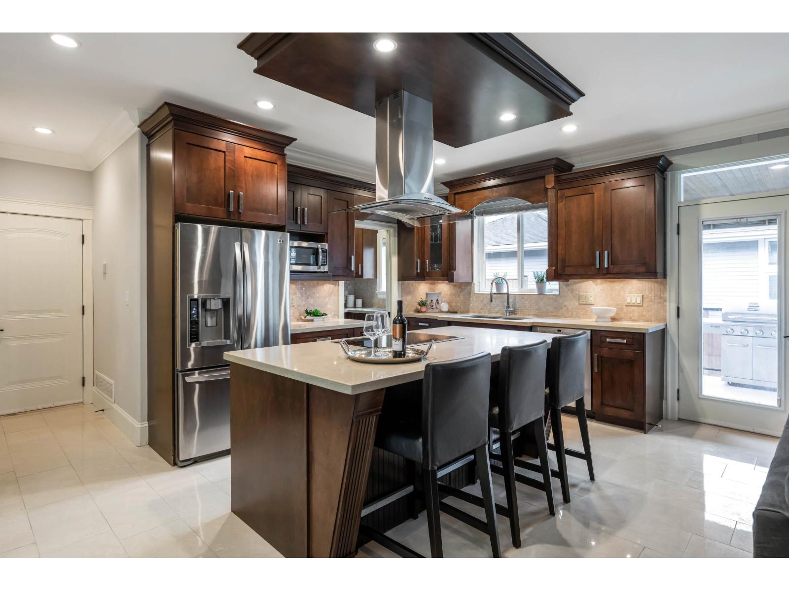 Beautiful, well-maintained 6 bedroom, 5 bathroom home in a private setting in a highly desirable area. Spacious open plan with 12' ceilings, hardwood floors, and a large gourmet kitchen plus spice kitchen, oversized island with cooktop, and quartz & granite counters. Main floor office can serve as a bedroom. Upstairs offers 4 bedrooms, each with its own ensuite, plus a convenient laundry room. Enjoy private sundecks and a large paved patio. Added value with a 1,600 sq ft unfinished basement and a 1-bedroom legal suite with separate entry. Close to transit, schools, shops, and library. (id:64528)