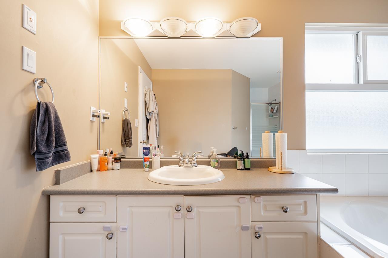 This spacious two-storey residence features unpstairs four large bedrooms and three full bathrooms on the upper level. The main floor includes an additional bedrooms with ensuite, providing flexibility for guests or in-laws. Interior highlights include a huge recreation room, separate living, dining, and family rooms, and a well-appointed kitchen with island. The property also offers a fully fenced backyard for privacy and outdoor enjoyment. Potential for a one-bedroom suite (buyer to verify with local regulations). Total 5 bedroom, four and half bathroom to accomodate large family. (id:64528)