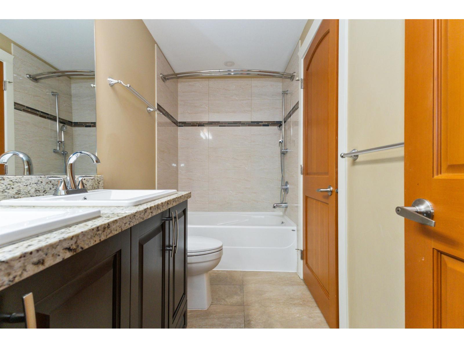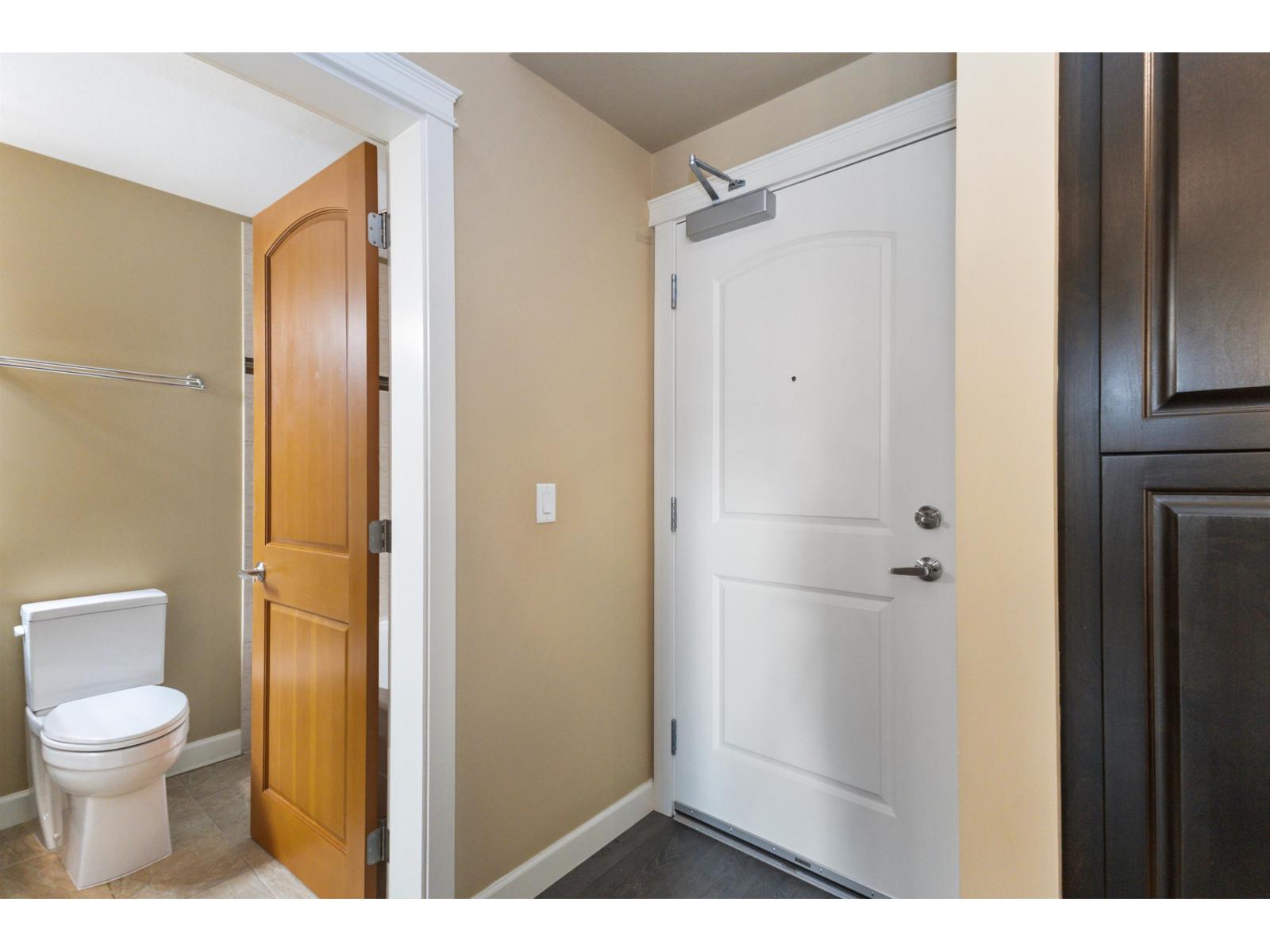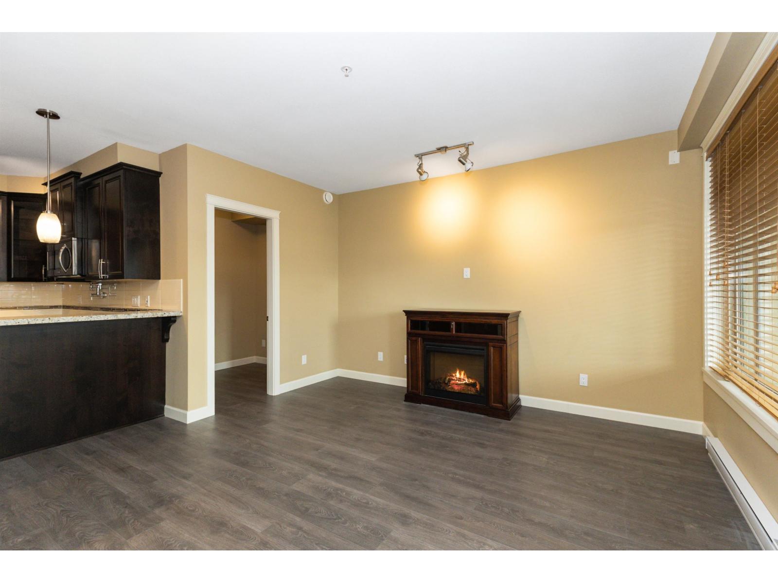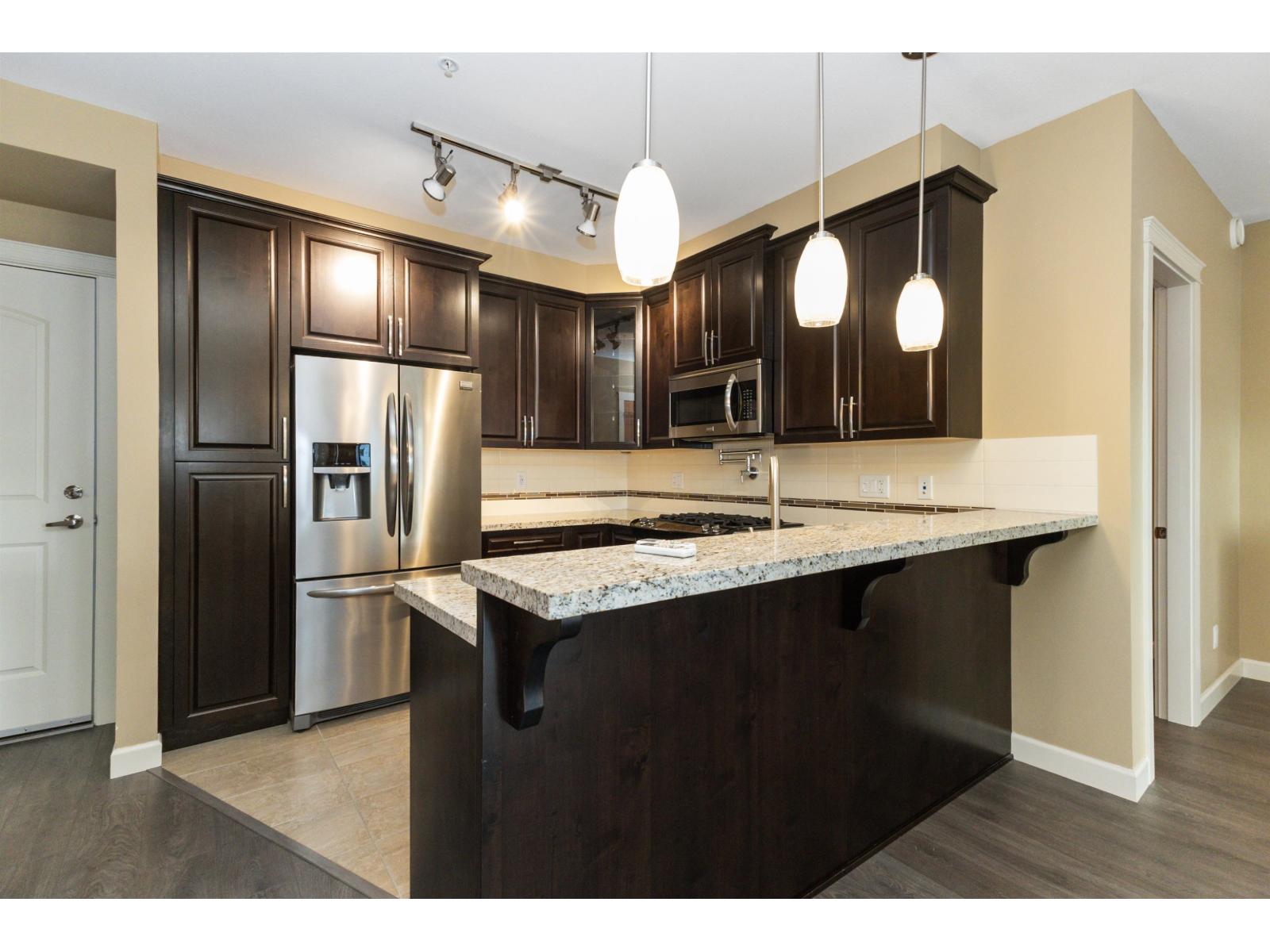 Highly sought after "La Galleria" condo in Abbotsford, immediate possession! Awesome location within walking distance to grocery store, shopping, restaurants, public library & more. 4th floor south facing, 1 bed & den, stainless steel appliances, granite countertops, REAL wood paneled cabinetry, central A/C, elec F/P. Also includes a large 219 sq ft retractable glass solarium with natural gas outlet for bbq; perfect for year round entertaining. 2 underground parking stalls, large storage locker, on site gym. 2 pets allowed 20" at shoulder. Don't miss out! (id:64528)