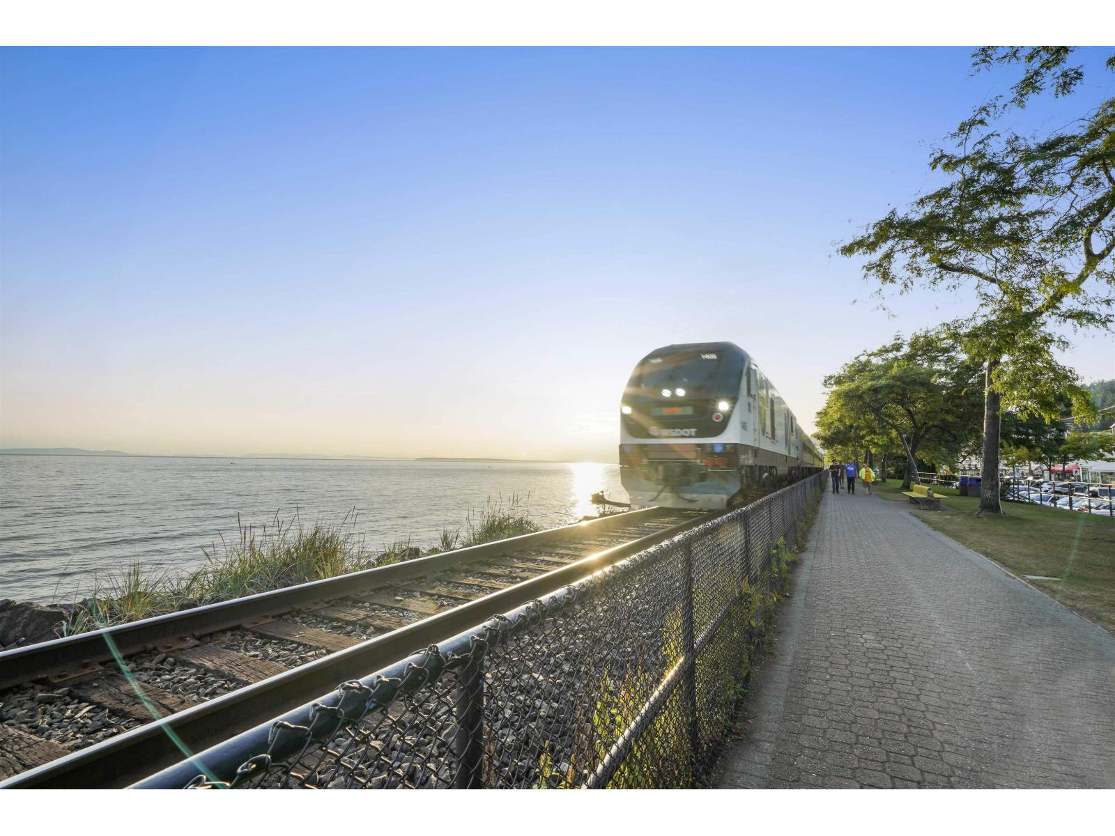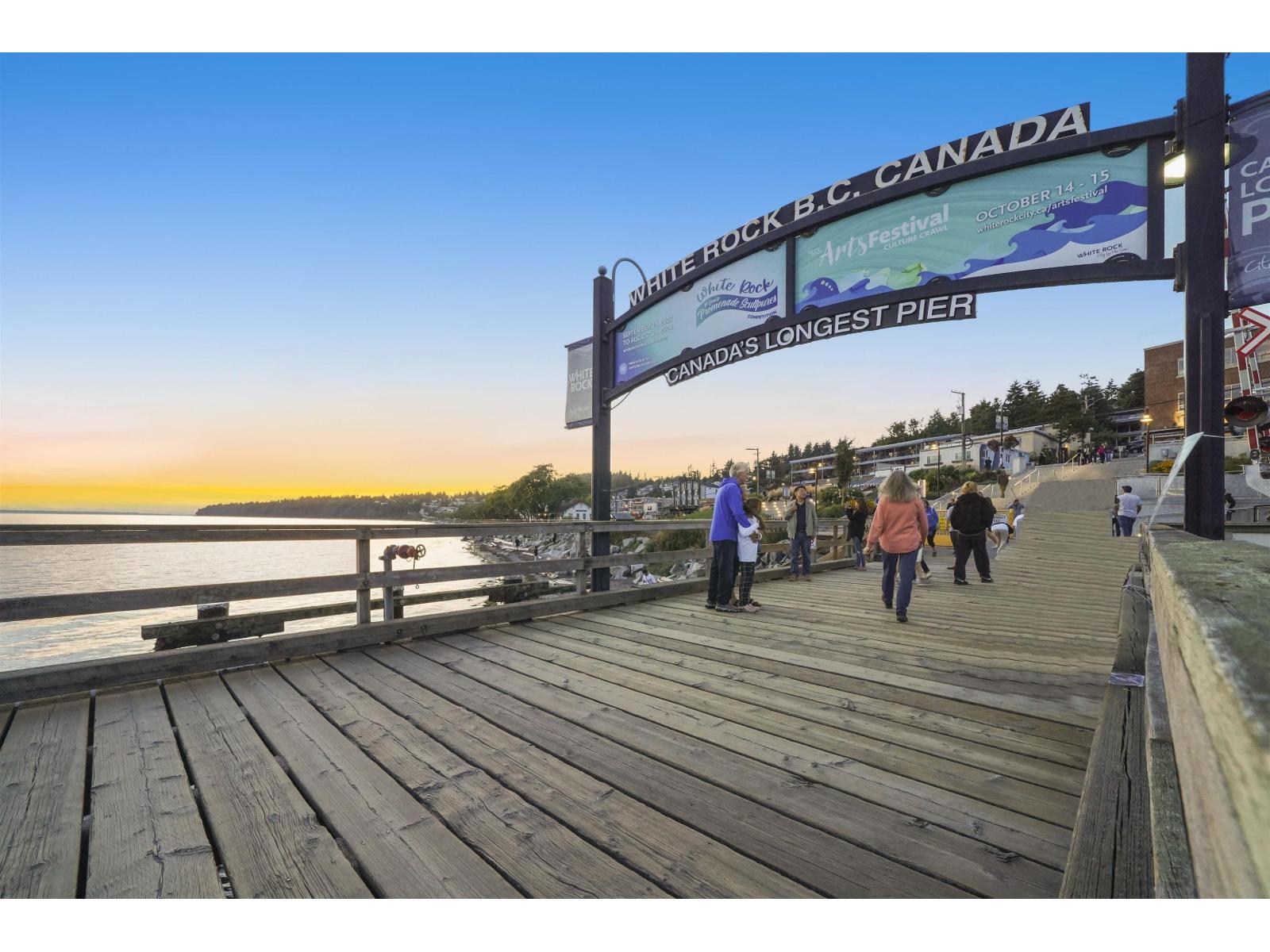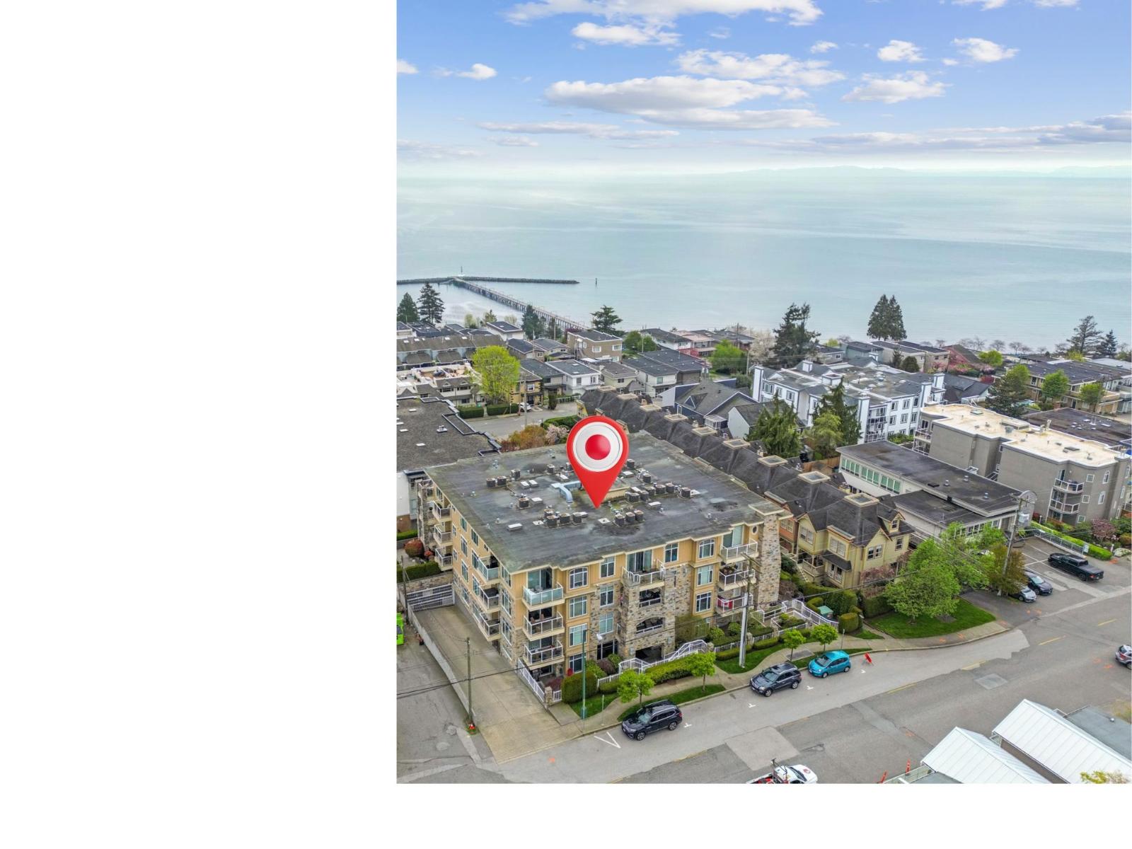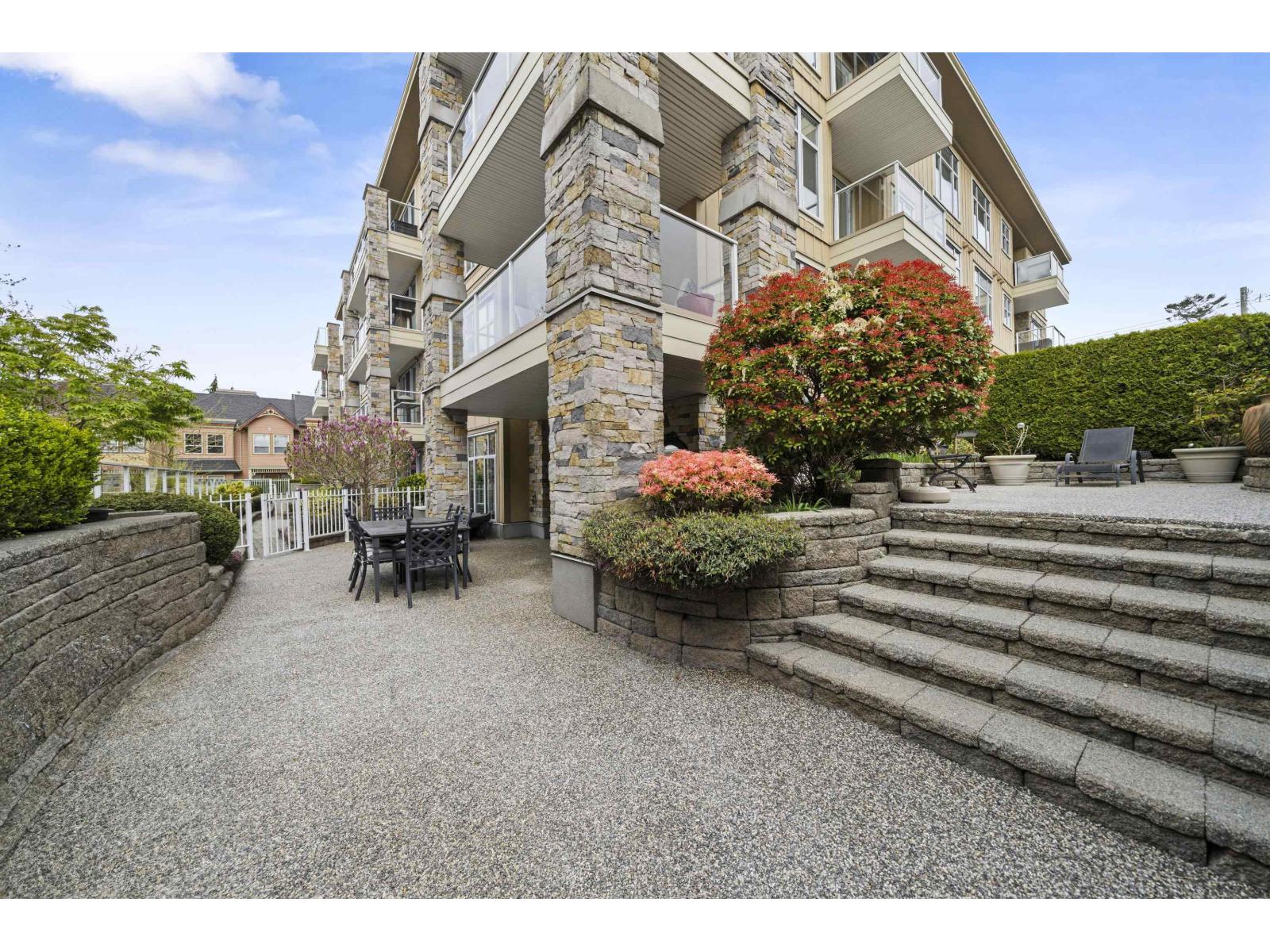 Truly rare find near Five Corners! This RARE ground-level home at Waterford offers a MASSIVE two-level wraparound patio - a beautifully landscaped, private hedged oasis perfect for entertaining or soaking up the sun. The ONLY unit of its kind! Freshly upgraded with new flooring, this 2 bed, 2 bath home features A/C, a luxury kitchen with granite counters and stainless steel appliances, and a spacious primary bedroom with custom walk-in closet and spa-inspired ensuite. Meticulously maintained 4-storey concrete building with secure underground parking. Steps to the beach, restaurants, and White Rock Elementary School. (id:64528)