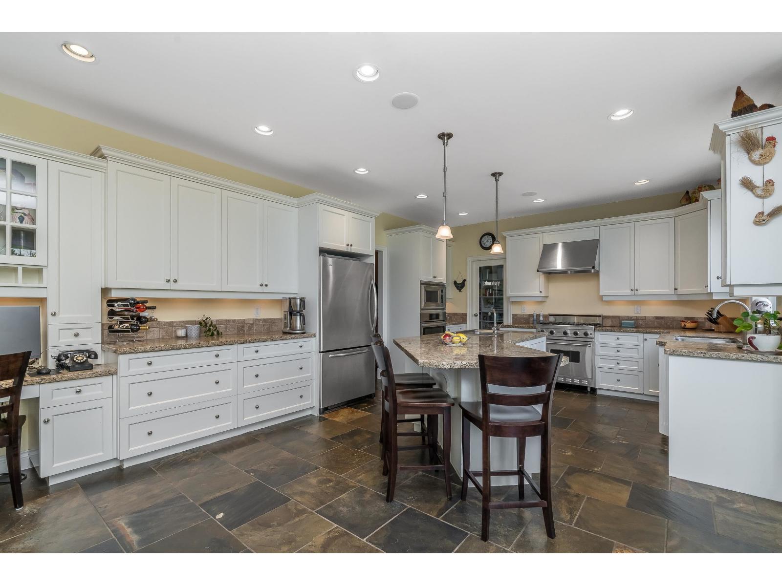 The family compound you've been searching for! Quiet Campbell Valley acreage with a custom built home. Over 4,500 sqft of living space plus 2,500 sqft unfinished walk-out basement offers room for everyone. Potential for separate legal suite above the garage, with private entrance. Designed for entertaining with high ceilings, wood & slate floors, open-concept kitchen featuring granite counters, island, & built-in appliances leading to spacious patio overlooking private, rolling land. Primary bedroom on main with luxurious ensuite, plus second bedroom & media rm. Upstairs offers 3 more bedrooms, games rm with wet bar, bath & separate entrance. Incredible 3185 sqft. detached shop/ entertainment space, in floor hot water heat with wet bar & bathroom. One of Langley's most desirable locations. (id:64528)