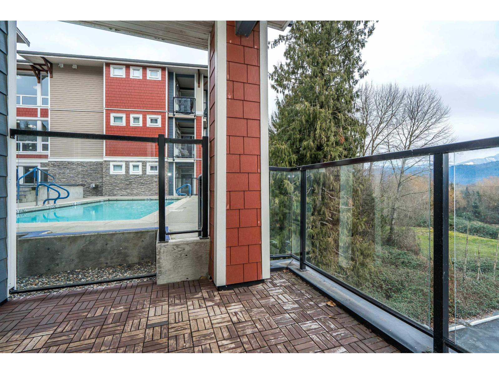 Incredible 2 bdrm 2 bthrm END corner unit overlooking the pool/hot tub/amenities with Mt Baker views! 1061sf home - extremely well kept and clean. Bedrooms on either side, both with ensuites. Electric fp, laminate flooring, neutral colors, large bright windows. 9' ceilings, s/s appliances (new fridge and induction stove), granite countertops, large bi desk/countertop. Lots of storage! California closet organizers, both bdrms w/bi air conditioning units, covered deck. Primary bedroom window w/privacy screen. Great amenities (pool, hot water tank, rec area, top notch exercise area! Secured 2 parking spots, 1 storage locker. Easy access to highway 1. Shopping and TONS of nature trails. Vacant for quick possession. (id:64528)