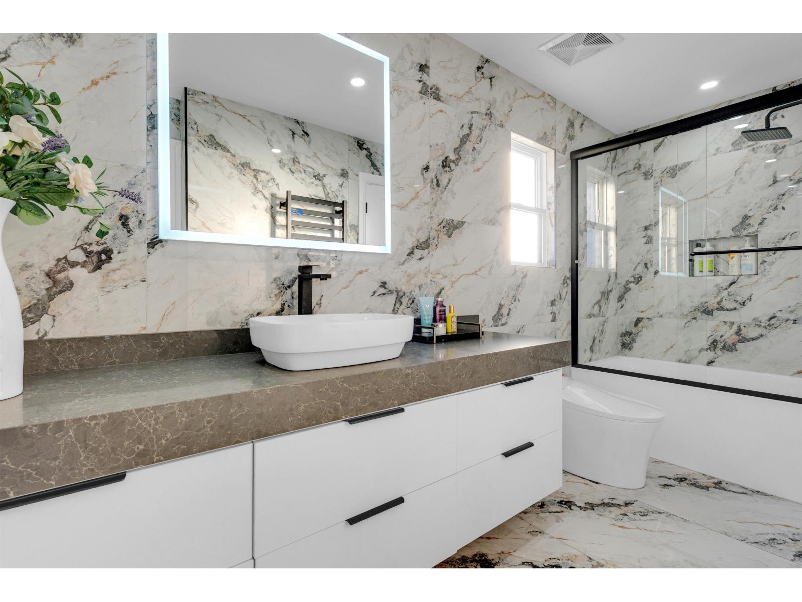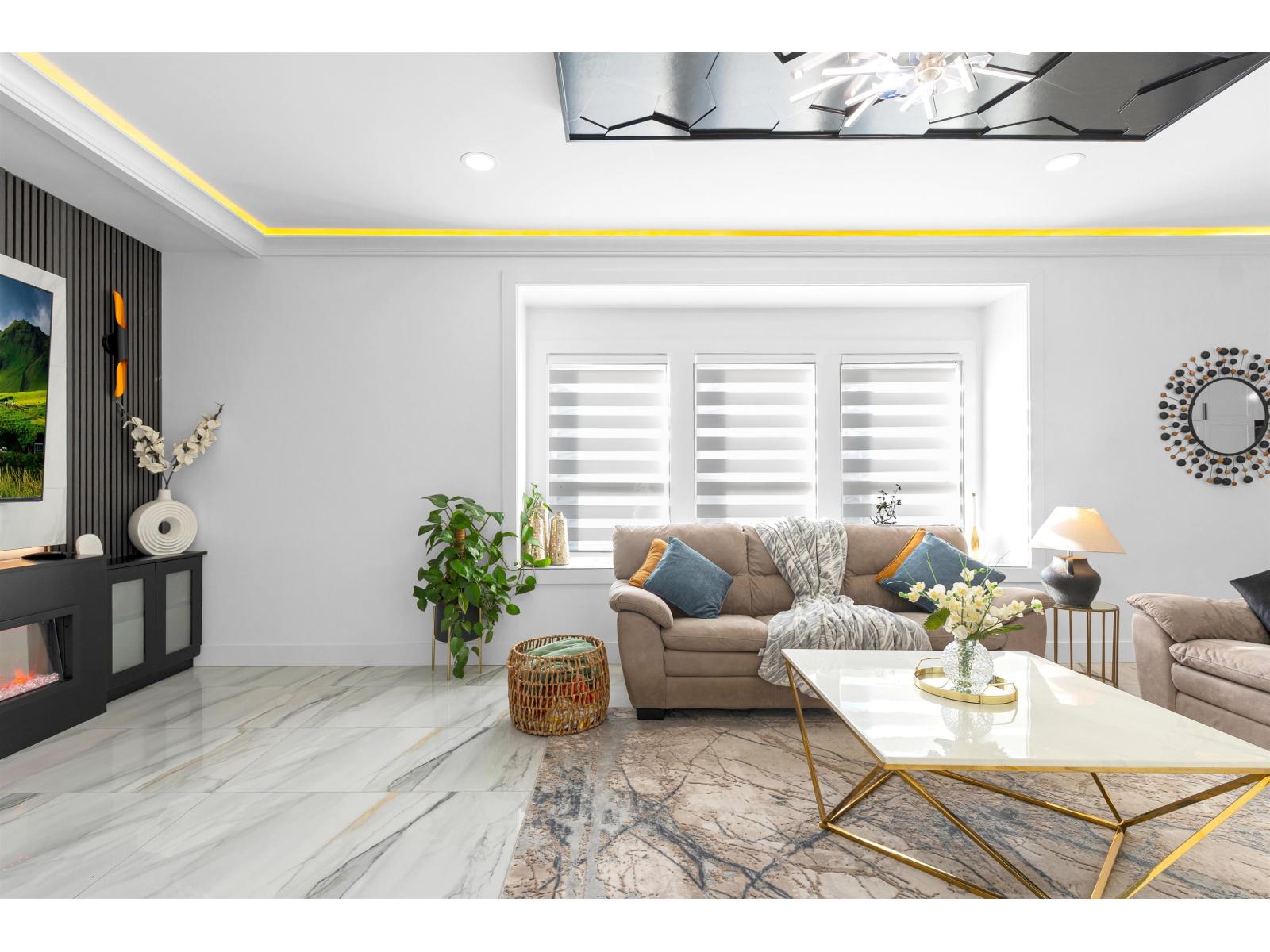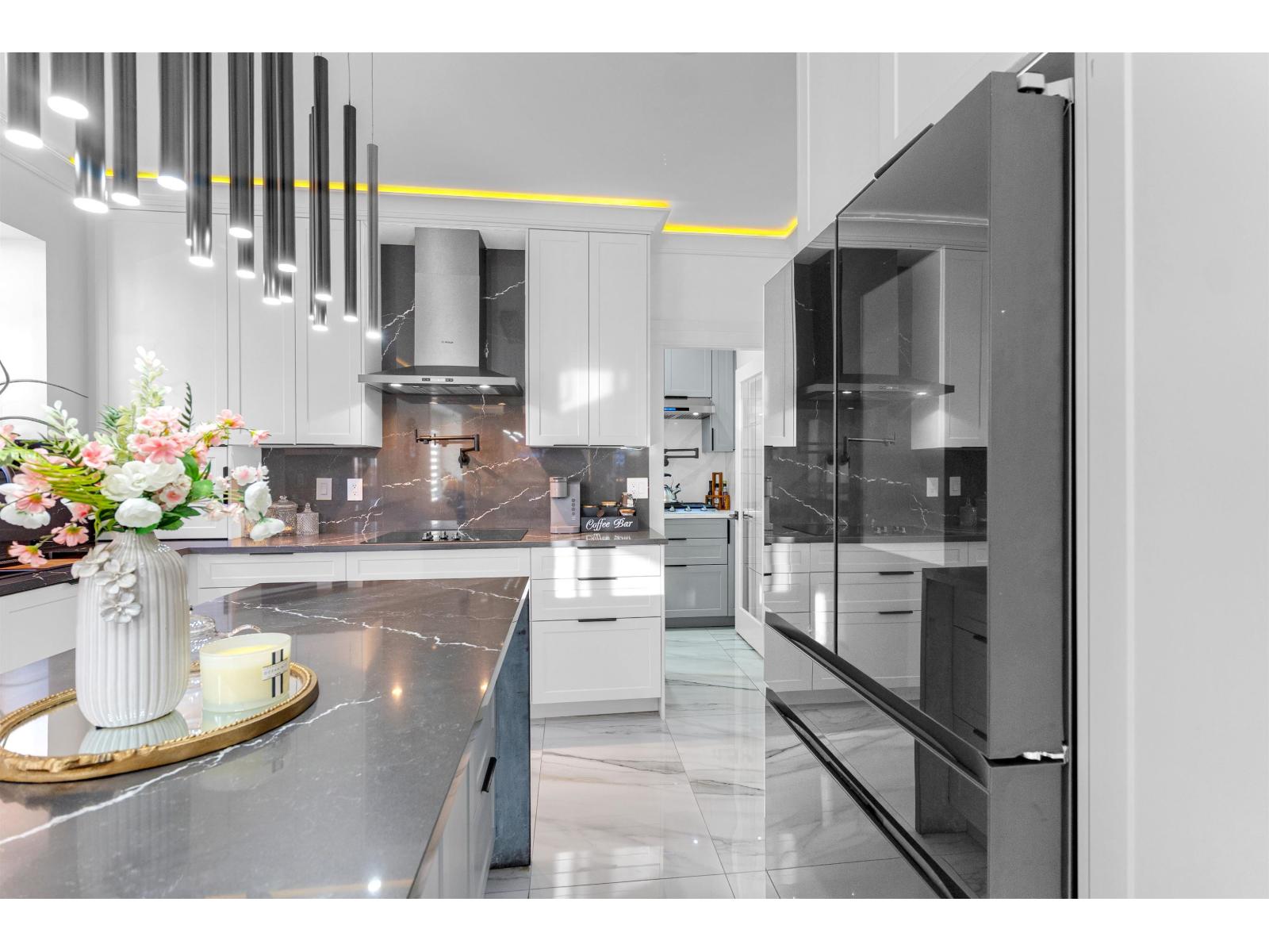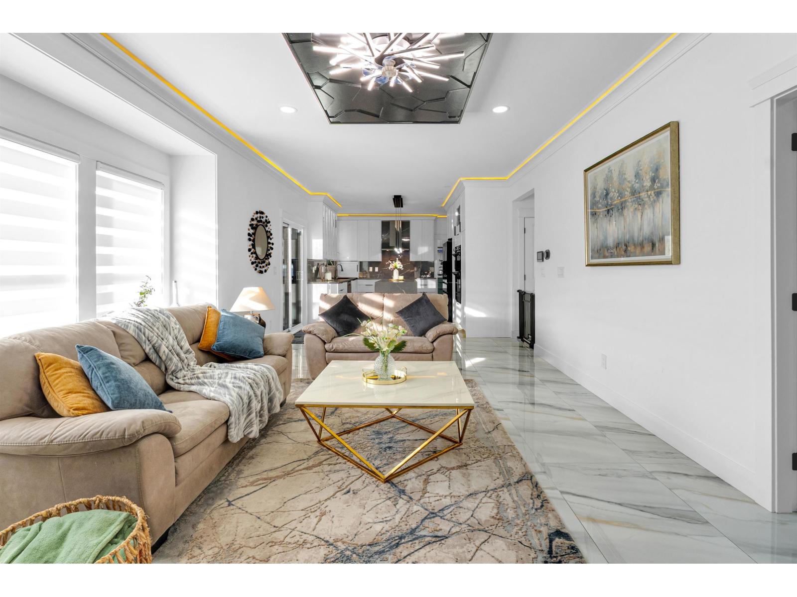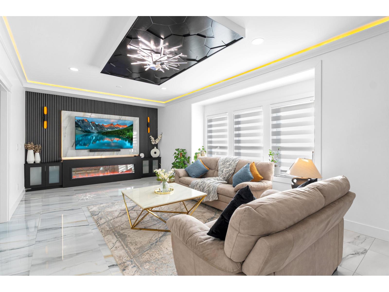 FULLY RENOVATED IN FLEETWOOD! This 9 bed 6 bath home offers luxury living with no expense spared! Featuring a designer main kitchen with spice kitchen, separate living and family rooms, and a main-floor bedroom plus den. Upstairs offers 4 spacious bedrooms, including a luxurious primary. The lower level includes two suites (2+2), ideal for extended family or rental income. Upgrades include new lighting, flooring, paint, feature walls, fireplaces, custom ceiling drops, A/C, new appliances, garage doors, landscaping, and security cameras. A true entertainer's dream, the home features a covered deck with a custom outdoor bar, creating the perfect setting for hosting/relaxing. Close to parks, schools, shopping, golf, and transit, with easy access to future SkyTrain. Open House 2-4PM Sun Feb 22 (id:64528)