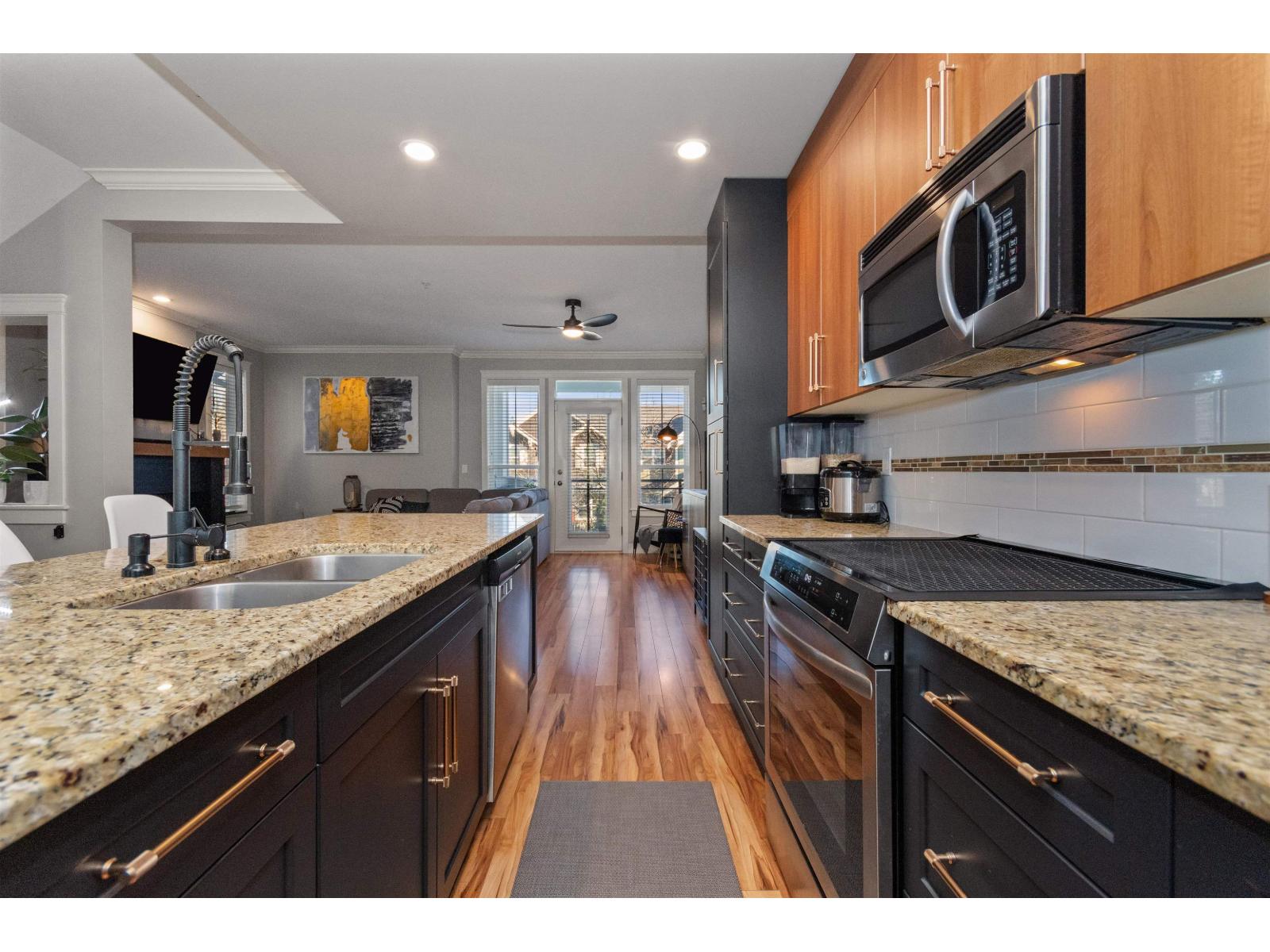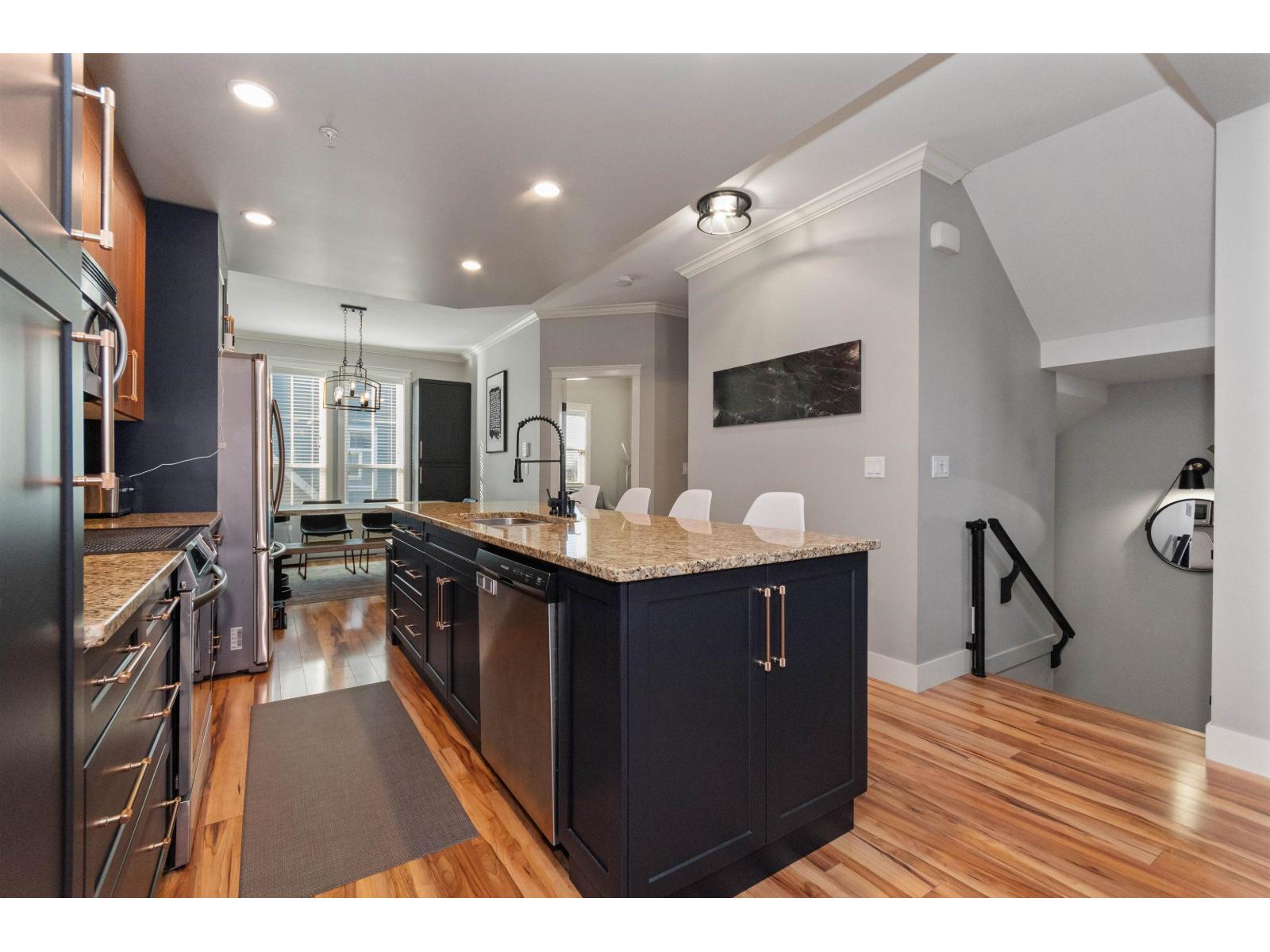 Nicomen Place in the heart of Garrison Crossing! This extensively updated 4 bdrm + den, 4 bath END UNIT offers over 2,000 sqft of bright, functional living space with THREE parking. Updates include a brand new kitchen, fresh paint throughout, & newer SS appliances. The open concept main floor features a spacious living room with gas F/P, covered balcony, a modern kitchen with large granite island & ample cabinetry, plus a dining area, den, & powder room. Upstairs boasts a vaulted ceiling master bdrm with walk-in closet & ensuite with dual vanity, two addtl bdrms, full bath, & laundry. The lower level includes a bright rec room/bdrm with full bath & separate entrance. Steps to Save-On-Foods, Cheam Leisure Centre, Vedder River Rotary Trail, UFV, & all amenities "- minutes from Cultus Lake. (id:64528)