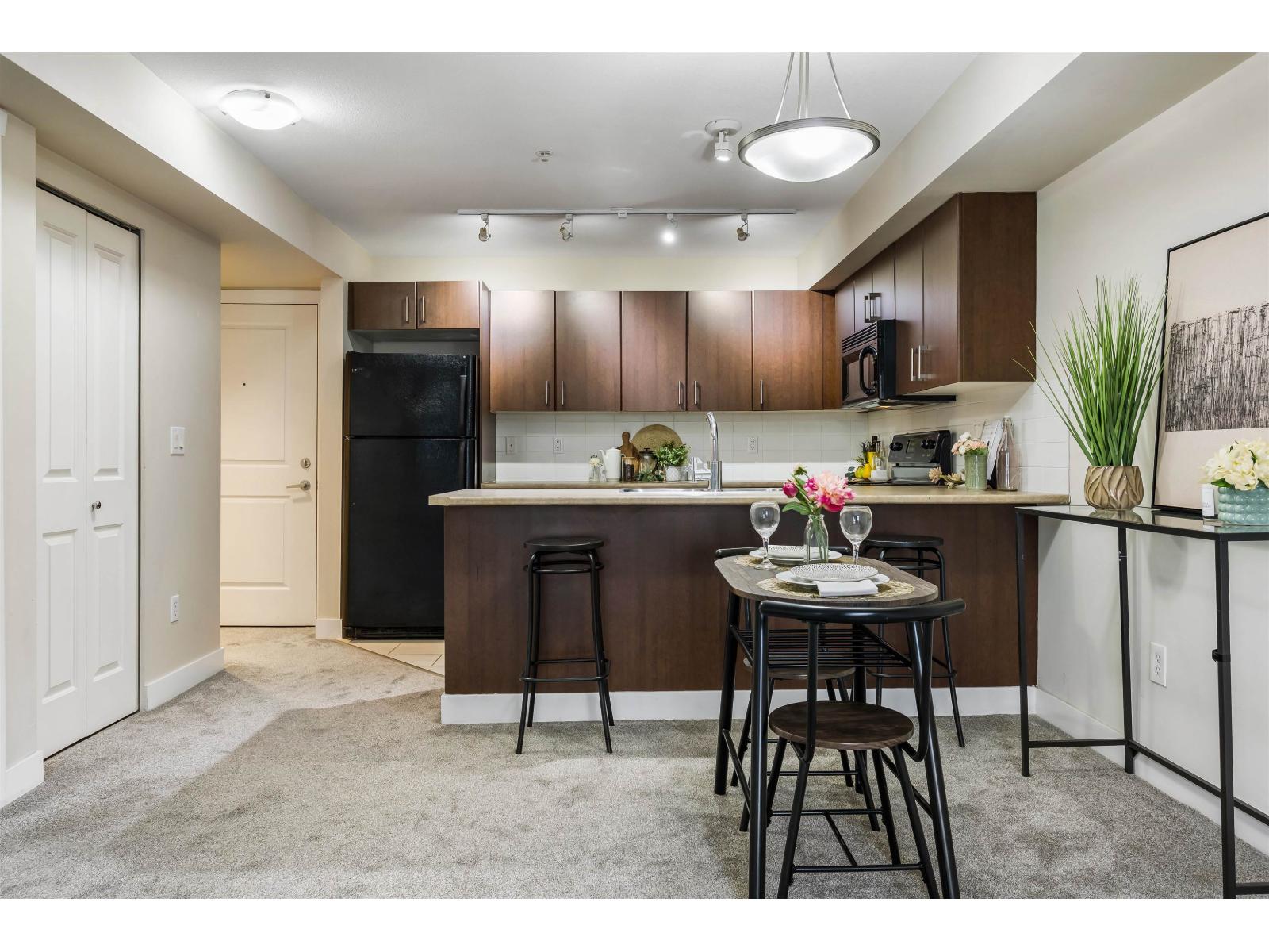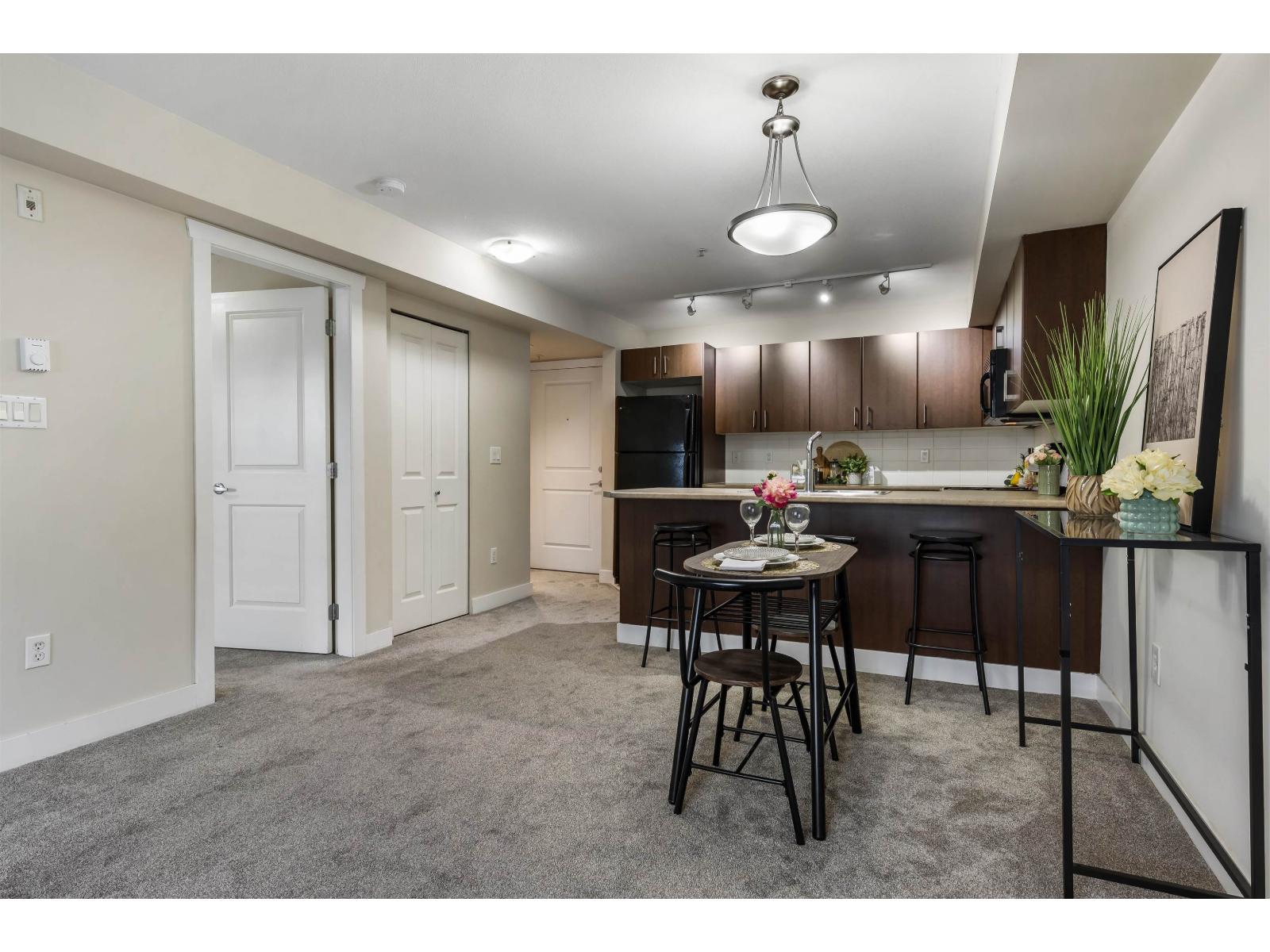 Welcome home to Chilliwack's most accessible corridor where this BRIGHT, TURN-KEY condo offers both PEACE & ACCESSIBILITY! Steps from bussing, HWY 1 & the newest job opportunities (Molson, Berryhill Foods, Five Corners Meats Co. & upcoming Red Bull facility) and a mere 10 minutes walk to BOTH North & South Downtown centres, this GEM is perfect for FIRST TIME BUYERS, COMMUTERS & frugal Buyers alike. Complete with updated paint, cozy newer carpet, XL private COVERED PATIO for extra outdoor space & IN-SUITE laundry, this unit is move in ready. Amenities include secure underground parking, storage locker, ON-SITE CARETAKER, evening SECURITY, gym & amenities room w/full kitchen. Only ONE SHARED WALL for ideal PRIVACY! Priced to MOVE & Quick Possession possible! View the VIRTUAL TOUR link above! (id:64528)