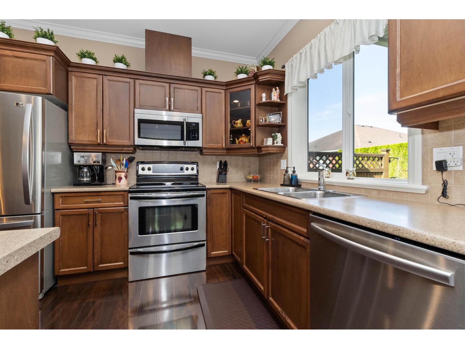 This home truly sparkles in and out and is meticulously maintained. 1563 ft 3bedrooms 2 bathroom rancher in very desirable Clover Creek. Open concept design large kitchen with two tiered Island. Updated high end flooring, paint, crown moldings, pantry with pullouts, new dishwasher and more. Large private side yard with Southern exposure perfect for a vegetable or flower garden. 20X9'4 concrete covered patio complete with hot tub and gorgeous mountain views. 19'8x 19'7 garage. Pet friendly and close to all amenities. Video tour on realtor.ca (id:64528)