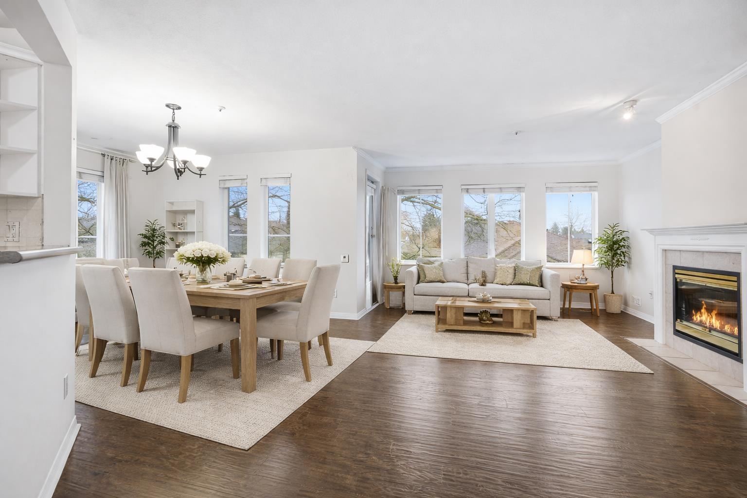 Corner unit condo for sale in West Newton, Surrey - 2 bed, 2 bath, 1,476 sq ft at Strawberry Hill Estates. This east-facing unit offers radiant in-floor heating, an open living and dining layout, and two private decks ideal for entertaining. The primary bedroom includes a walk-through closet and full ensuite with deck access. Additional features include in-suite laundry, 2 secure underground parking stalls, and a dedicated storage locker. Gas is included in the strata fees - a real value-add. The well-managed 104-unit building is run by First Service Residential. Located steps from Strawberry Hill Shopping Centre, restaurants, transit, parks, and schools in the heart of West Newton. Pets and rentals allowed with restrictions. A rare oversized corner unit combining space, comfort, and an unbeatable location. Buy this home and enjoy 1-Year Buyer Satisfaction Guarantee! (id:64528)