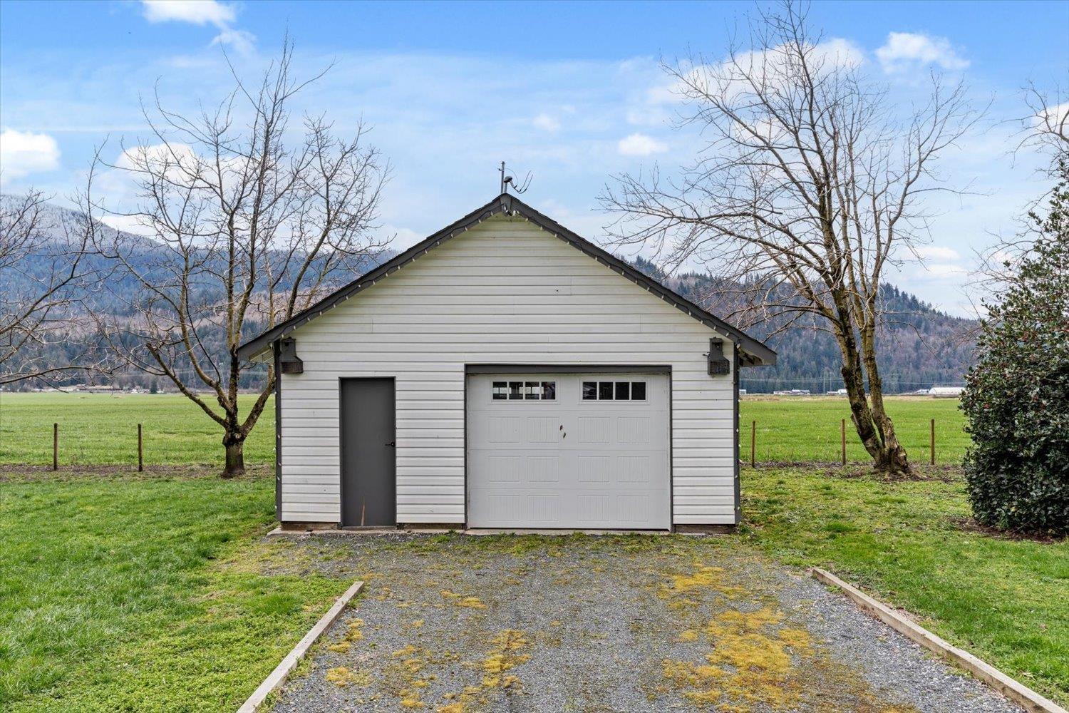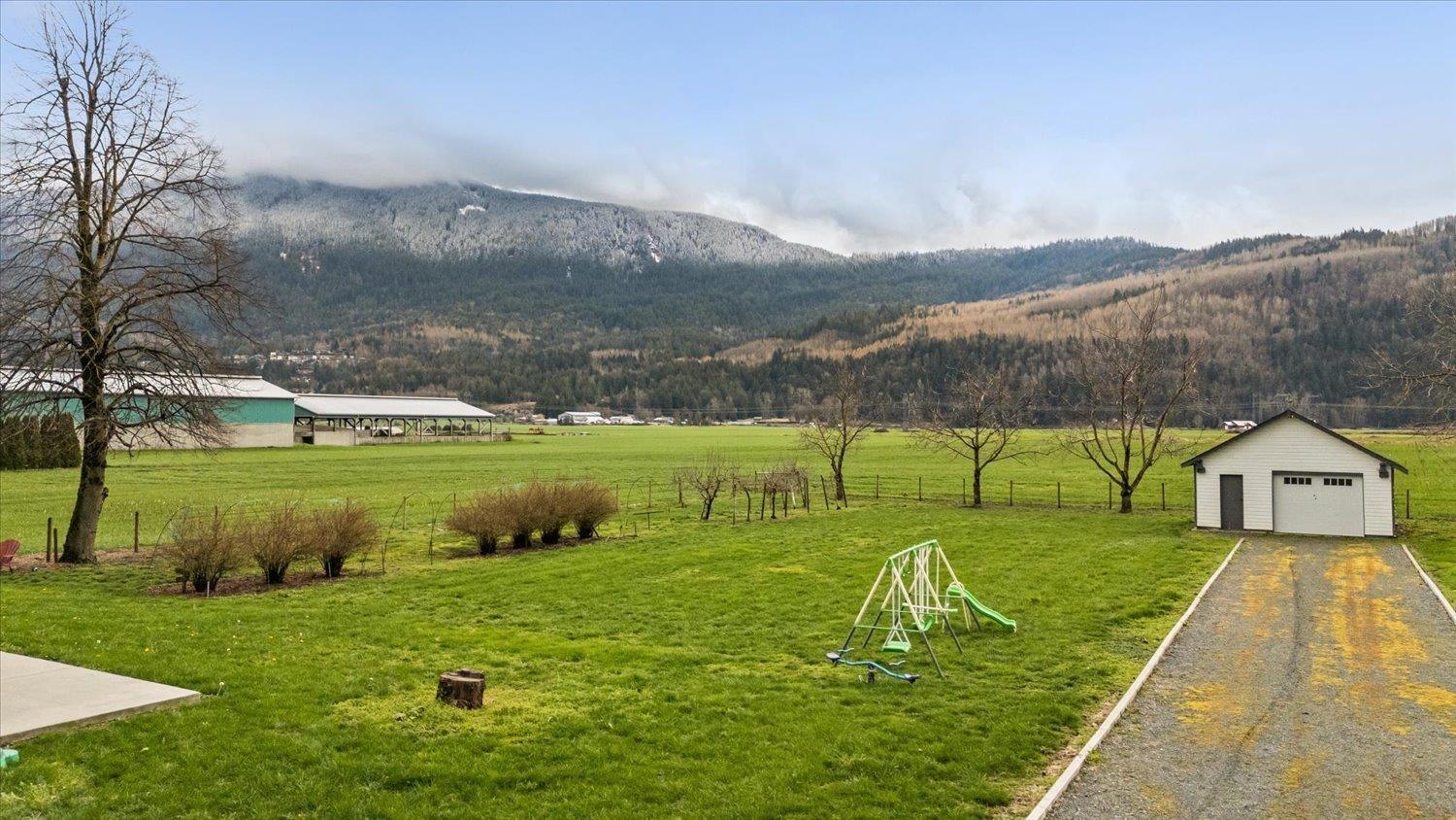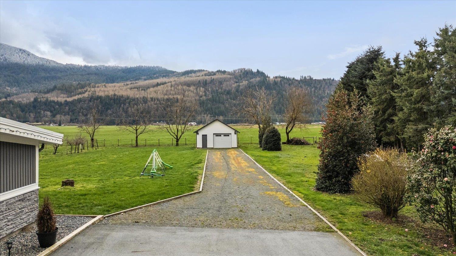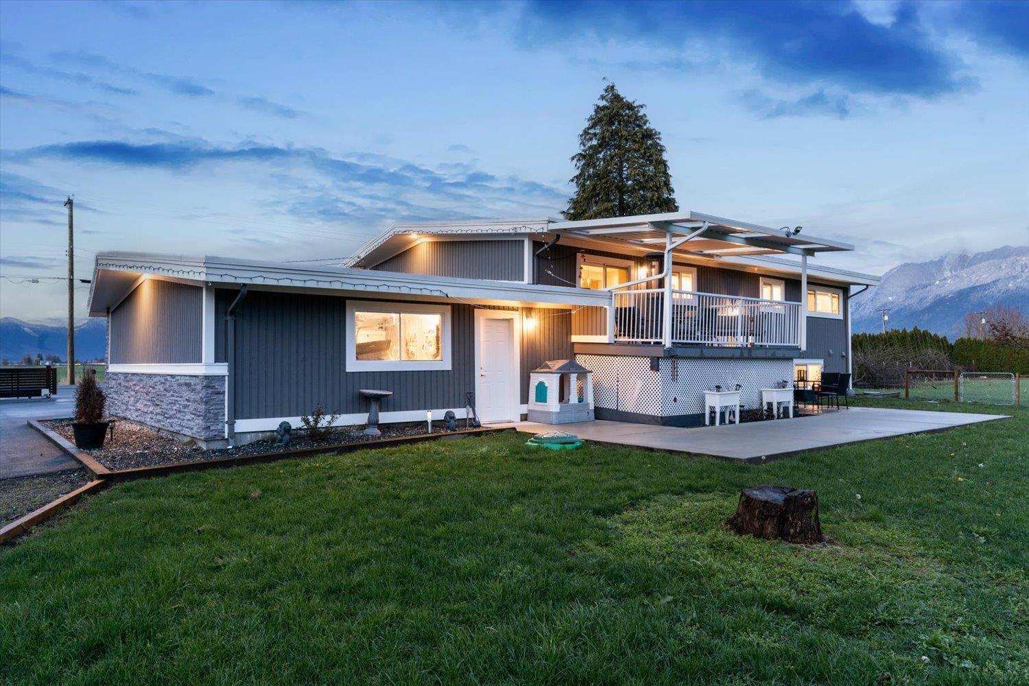 Rarely available! Beautiful 2 acres of flat agricultural land in East Chilliwack offering privacy, breathtaking mountain views, and peaceful green fields in every direction. This gated property features a thoroughly renovated 4 bedroom, 3 bathroom home filled with natural light and tasteful modern finishes. The bright, functional layout offers comfortable family living with space to entertain. Outside you'll find a 24' x 20' detached workshop, blueberry plants, apple trees, and plenty of room for gardens, animals, or your hobby farm dreams. Whether you're looking for space to breathe or a small farmstead in a stunning setting, this property offers a rare opportunity to enjoy country living just minutes from town. Acreages like this don't come along often! (id:64528)