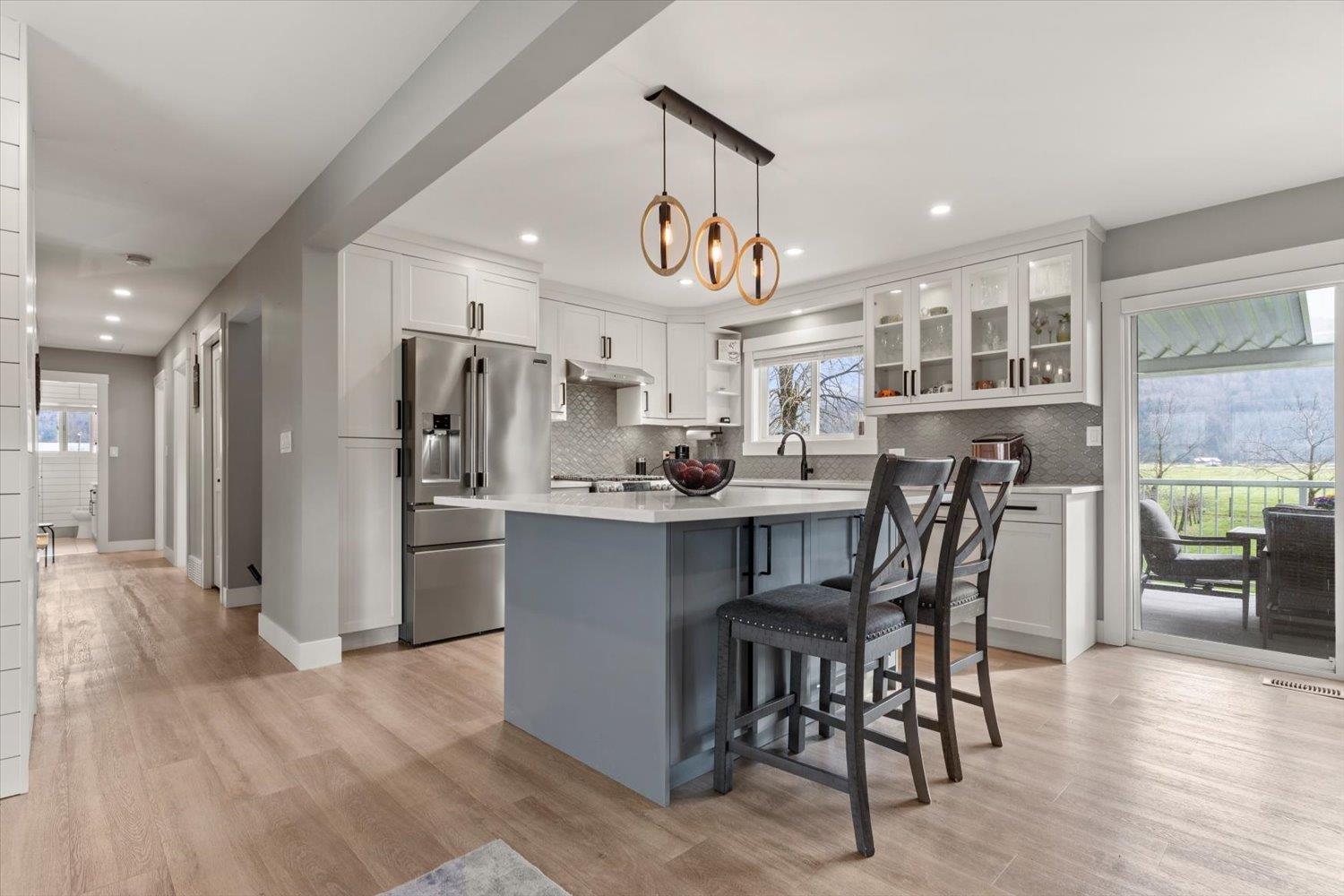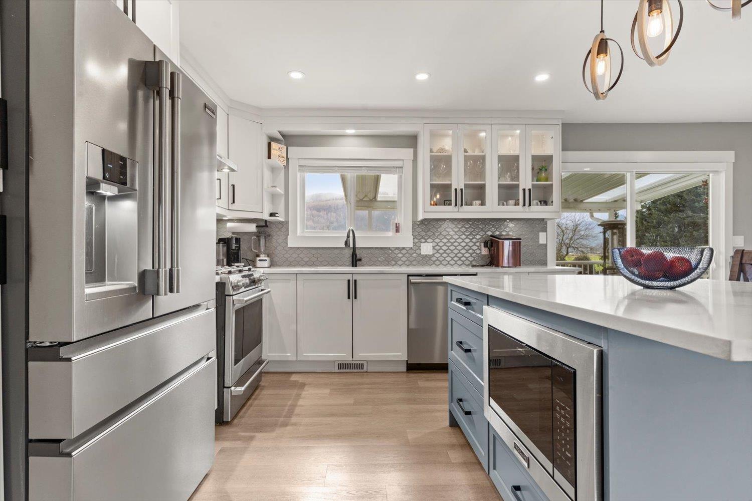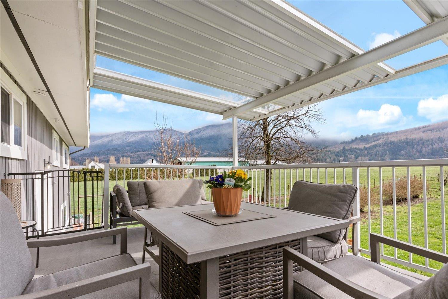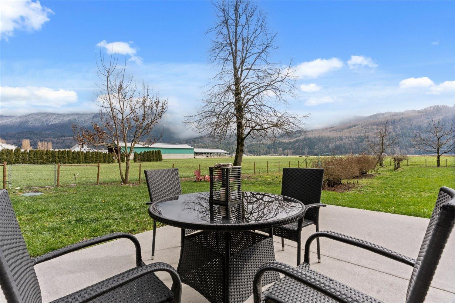 Rarely available! Beautiful 2 acres of flat agricultural land in East Chilliwack offering privacy, breathtaking mountain views, and peaceful green fields in every direction. This gated property features a thoroughly renovated 4 bedroom, 3 bathroom home filled with natural light and tasteful modern finishes. The bright, functional layout offers comfortable family living with space to entertain. Outside you'll find a 24' x 20' detached workshop, blueberry plants, apple trees, and plenty of room for gardens, animals, or your hobby farm dreams. Whether you're looking for space to breathe or a small farmstead in a stunning setting, this property offers a rare opportunity to enjoy country living just minutes from town. Acreages like this don't come along often! (id:64528)