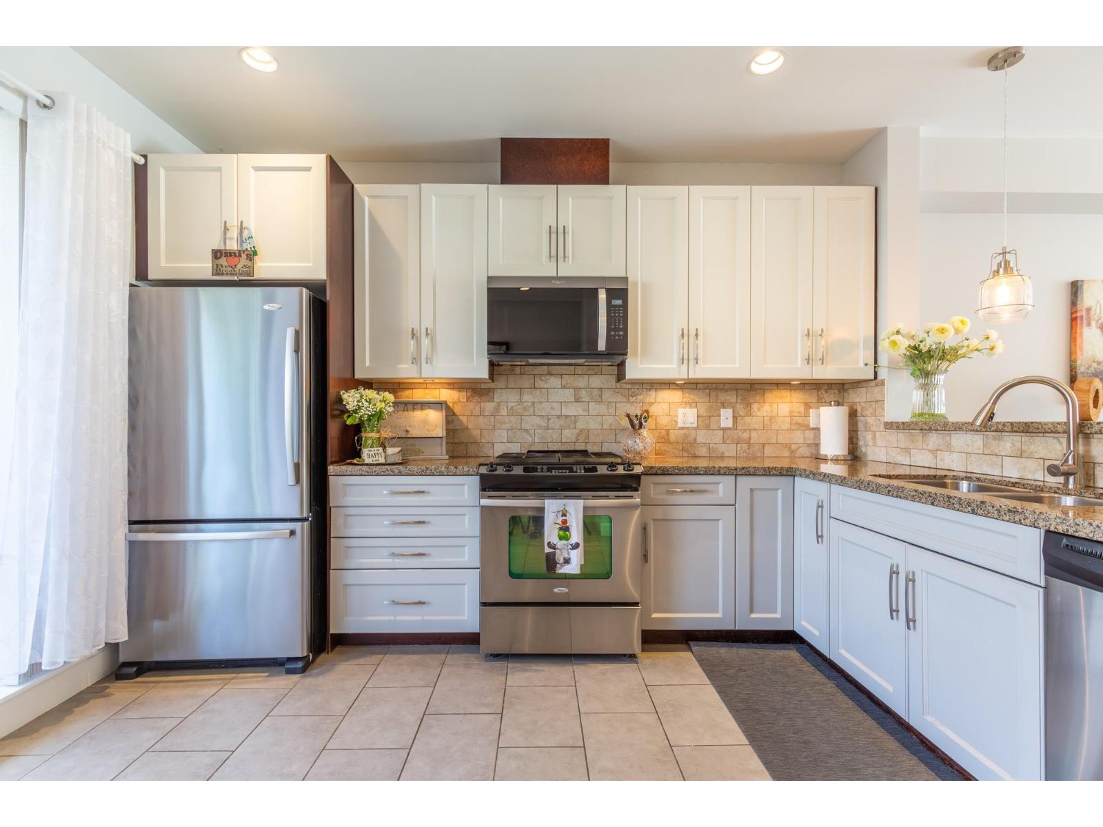 Welcome to The Enclave, ideally located in South Surrey's highly desirable Grandview/Morgan Heights community. Just steps to Morgan Crossing, Grandview Corners, popular dining spots, cafés, transit, and quick access to Hwy 99-plus only minutes to White Rock Beach. This bright and beautifully maintained 2-bed, 2-bath townhome showcases an updated kitchen with white shaker cabinetry, granite countertops, stainless steel appliances, a gas range, and a stylish tile backsplash. The open-concept living and dining area features rich hardwood floors, oversized windows, and an eye-catching stone fireplace. Enjoy outdoor living on your covered private deck overlooking a fully fenced, turf-landscaped backyard, gated, low maintenance, and ideal for year-round use! (id:64528)