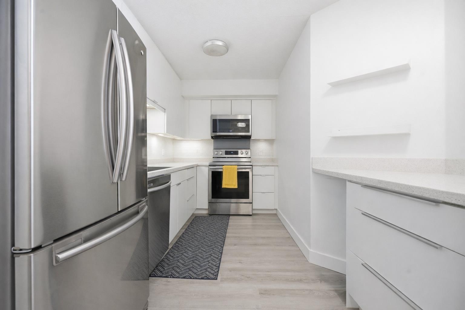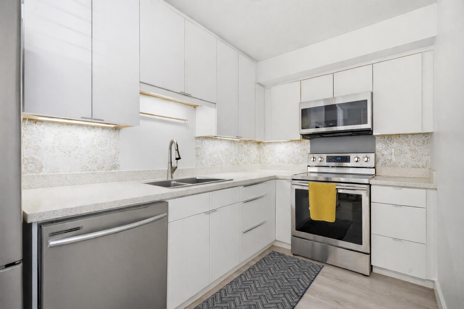BRIGHT FRESHLY PAINTED ground-level 2-bed, 2-bath 2 Parking home with over 900 sq. ft. of functional living space. Features an updated kitchen with quartz counters, soft-close cabinets, and stainless-steel appliances, wide-plank vinyl flooring, carpet in the primary bedroom, modern lighting, and ENERGY EFFICIENT baseboard heaters. Bedrooms are on opposite sides for privacy, and the spacious primary fits a king bed. 2 FULL BATHROOMS. Quiet side of the building with convenient PATIO ACCESS-park and bring groceries straight in, plenty of SUNLIGHT. Move-in ready and perfectly located within the complex. (id:64528)