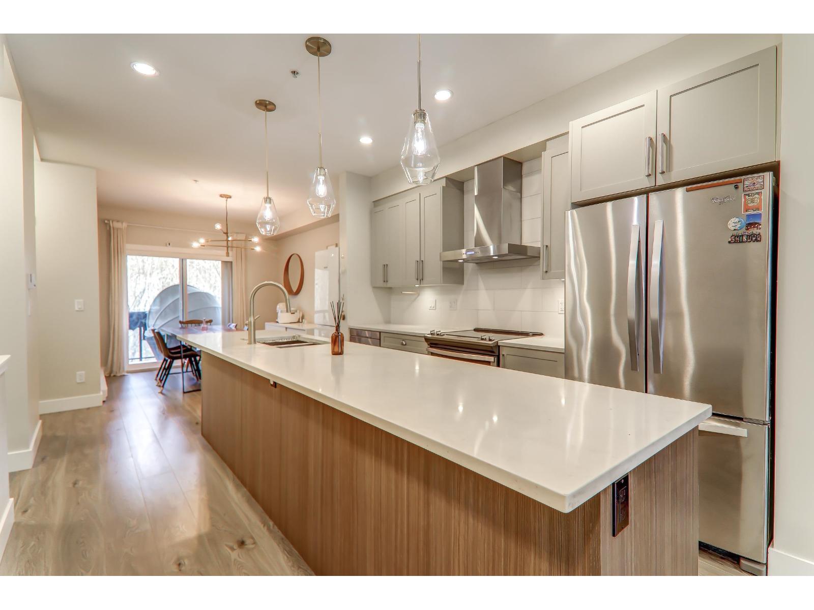Welcome to the award-winning Gabriola Park in Willoughby Heights! This well-maintained 3 bed, 2.5 bath home features an open-concept layout with quartz countertops and stainless steel appliances. Enjoy a south-facing, fenced backyard with a private patio facing a tranquil greenbelt, perfect for relaxing or entertaining. Upstairs offers a spacious primary bedroom with a walk-in closet and ensuite, with 2 substantial bedrooms. Tandem garage includes an EV charger. Family and pet friendly strata centrally located near parks, highway, recreation, schools and shopping (Willoughby Elementary, RE Mountain Secondary (IB Program), Langley Events Centre, Yorkson Village, Willowbrook Mall & H-Mart). Close proximity to future 200ST Corridor with Skytrain/Rapid Transit. Move-in ready and a must-see! (id:64528)