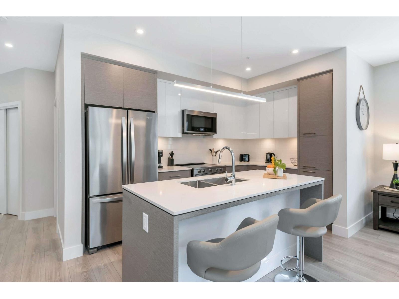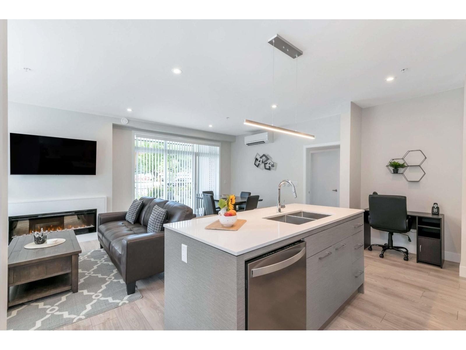 GARRISON CENTRAL 2.....This almost new SE corner unit is in move in ready condition. The open concept living gives you the feeling of being in a large home with massive windows all around. Enjoy luxurious high end finishes and contemporary design that offer both style and comfort. The primary suite offer a walk in closet and a full spa like bathroom. Enjoy your morning coffee or evening cocktail on the large covered deck. Step right out into a vibrant neighborhood with local shop, dining, parks and lots more. 1075 sq ft of in door living plus 110 outdoor for a total of 1185 sq ft. 2 side by side secure parking and a storage looker. Pets welcome. Easy to view. Furniture could be negotiated as a turn key unit. (id:64528)