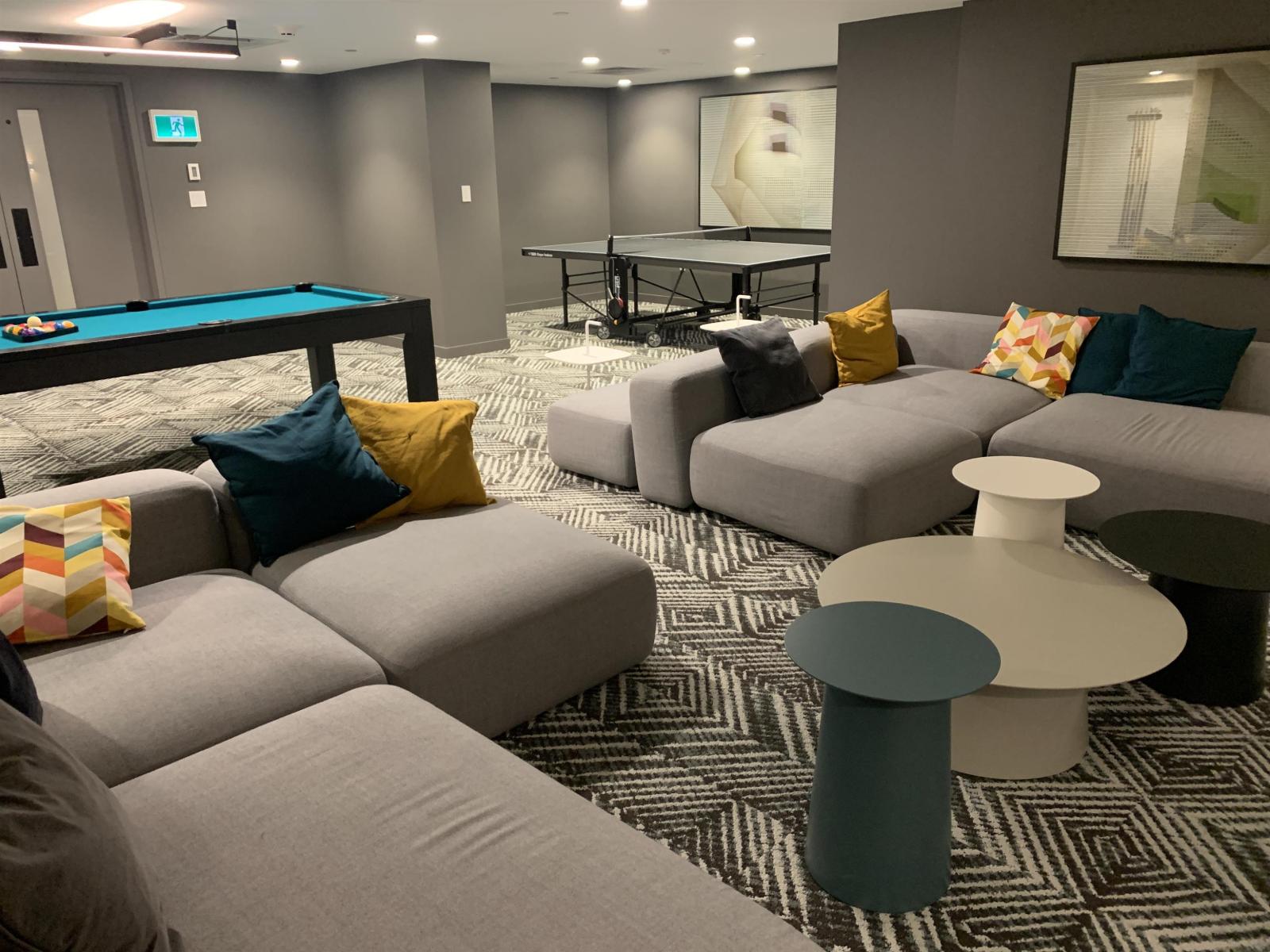 Welcome to "University District" by Bosa, located in the vibrant Surrey Central neighbourhood. This well-designed 1 Bedroom plus Large Den with closet, suitable as a second bedroom, combines comfort and functionality with laminate floors, granite countertops, A/C, and bright floor-to-ceiling windows. Added conveniences include in-suite laundry & one secured parking stall. Residents enjoy access to an impressive 25,000 square feet of resort-style amenities, including an outdoor swimming pool, fitness centre, sauna, clubhouse & business centre, media and games room, bike storage and even a car wash area, creating a well-rounded lifestyle within the building. Unbeatable Location - steps from the Skytrain station, SFU, KPU, Surrey City Hall, shopping, parks and recreation! (id:64528)